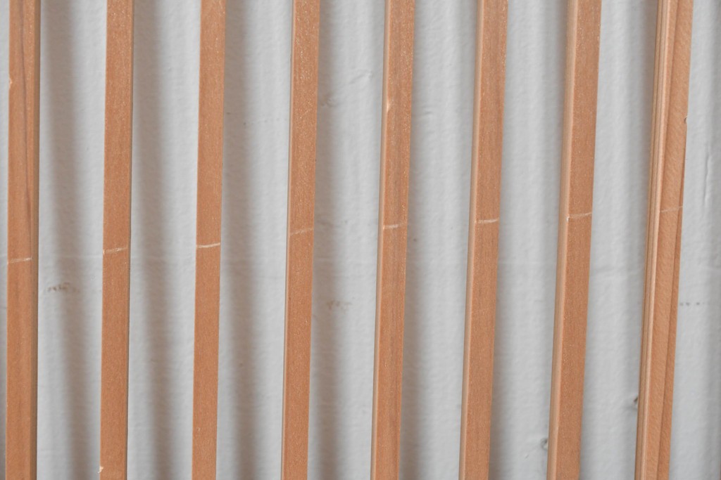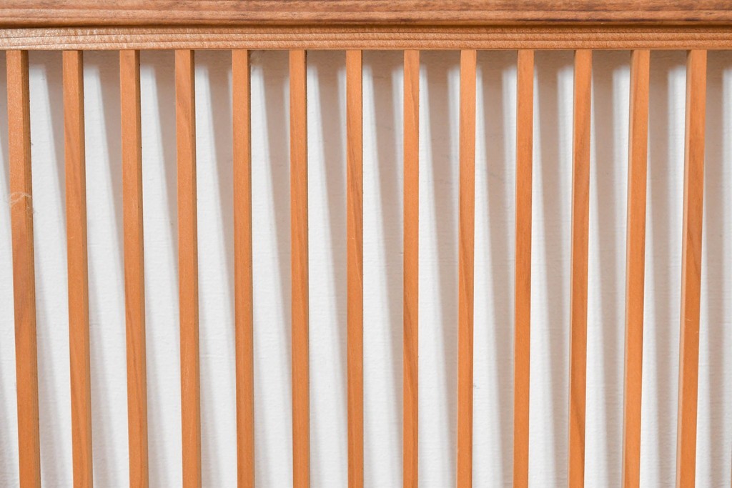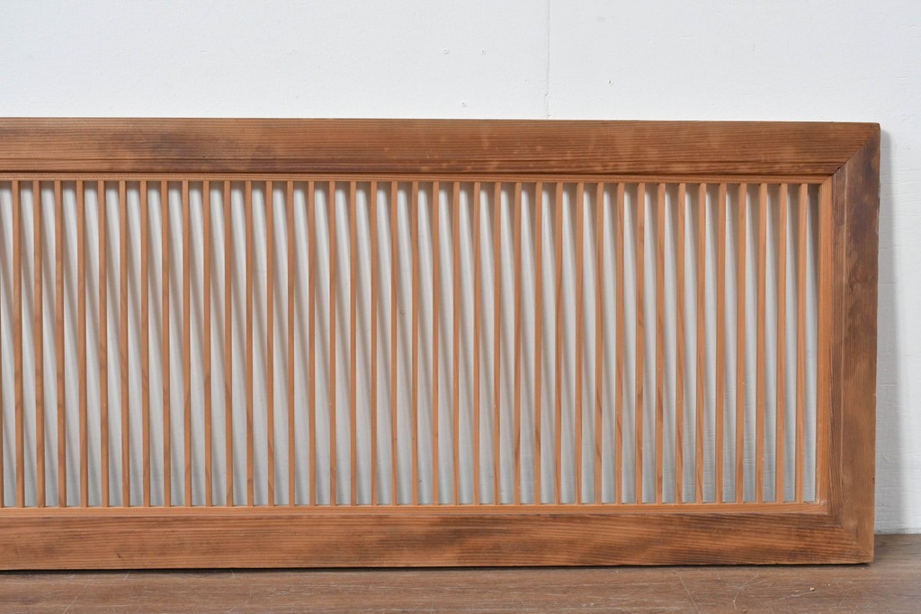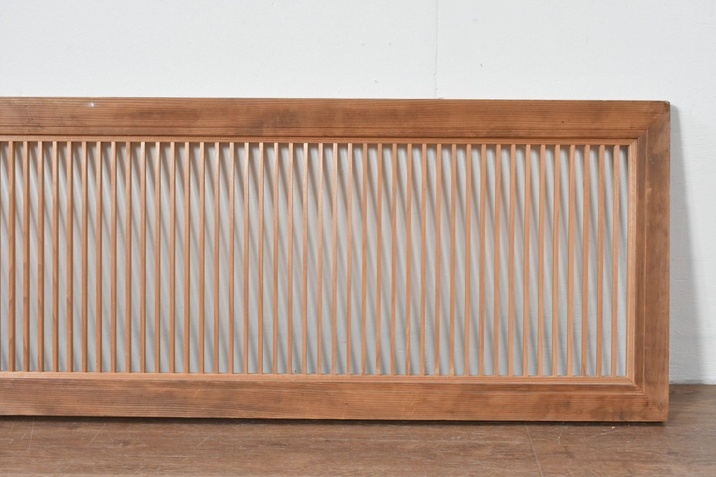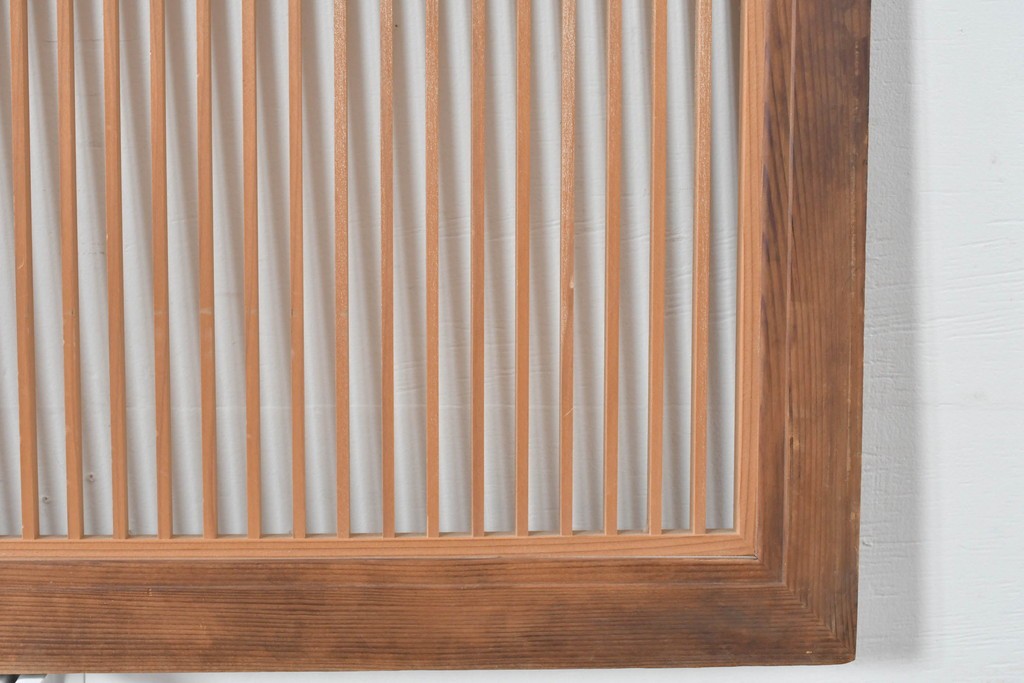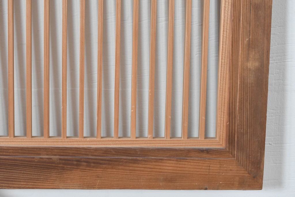 細い桟を等間隔に配した縦格子を横長の枠に収め、すっきりとした直線の美しさが際立つデザインです。