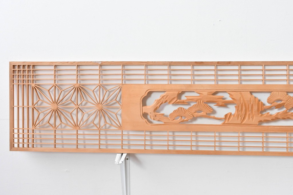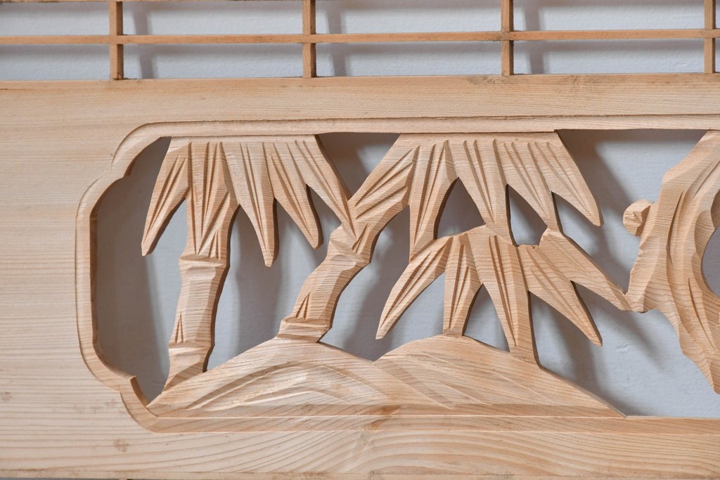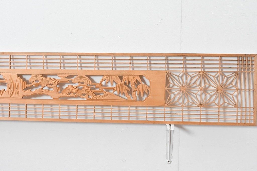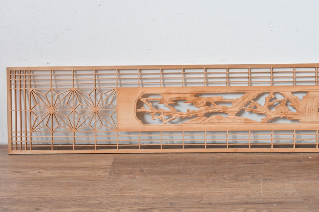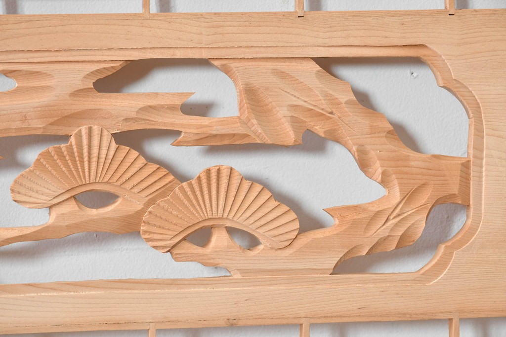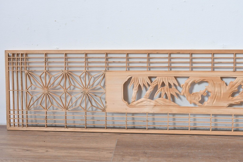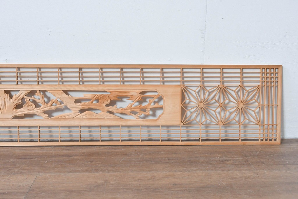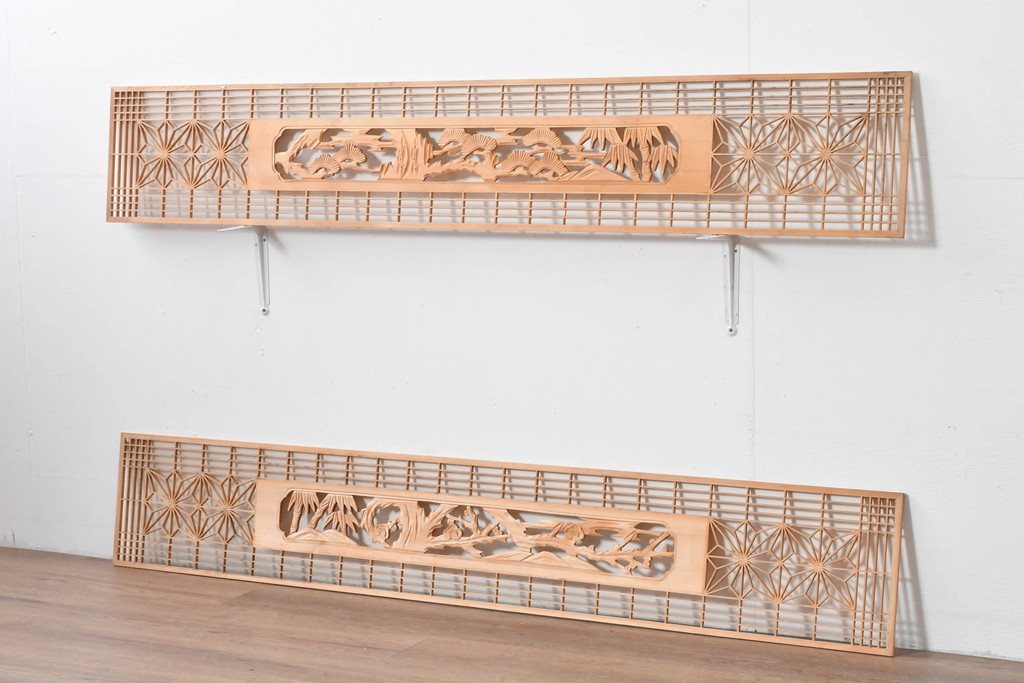 ラフジュ工房> ドア・建具> 組子建具 > ヴィンテージ建具 昭和後期 松竹梅図の彫刻意匠が映える組子細工の欄間2枚セット (R-085092)