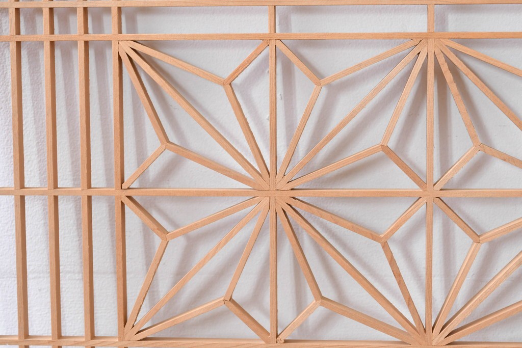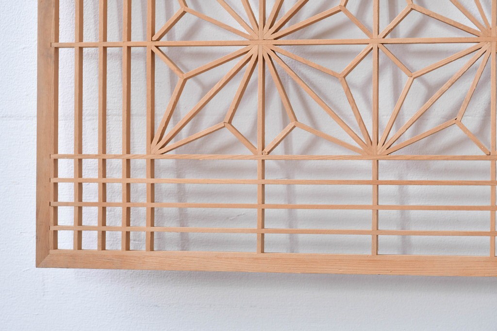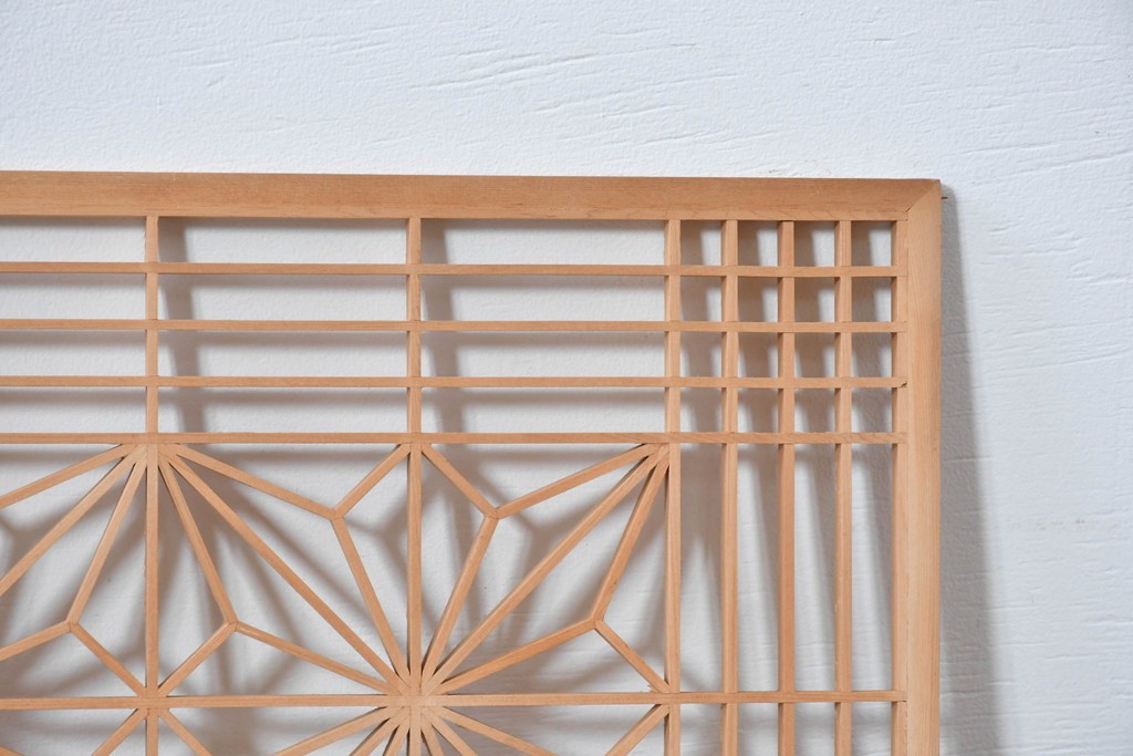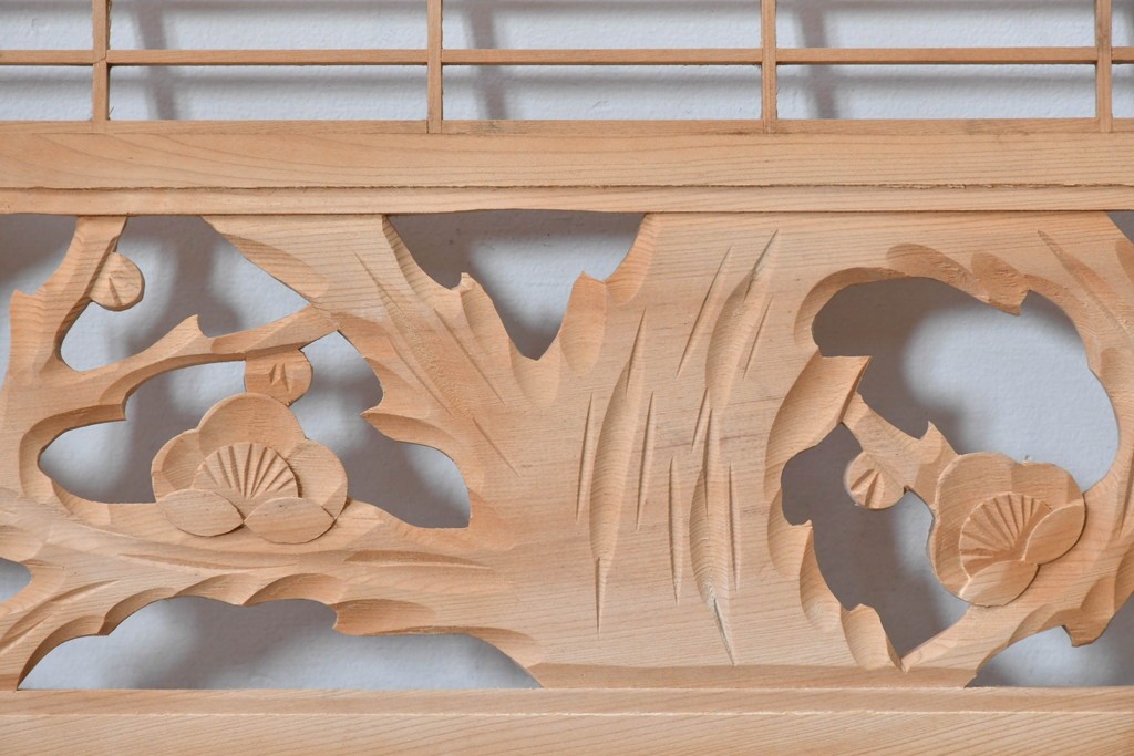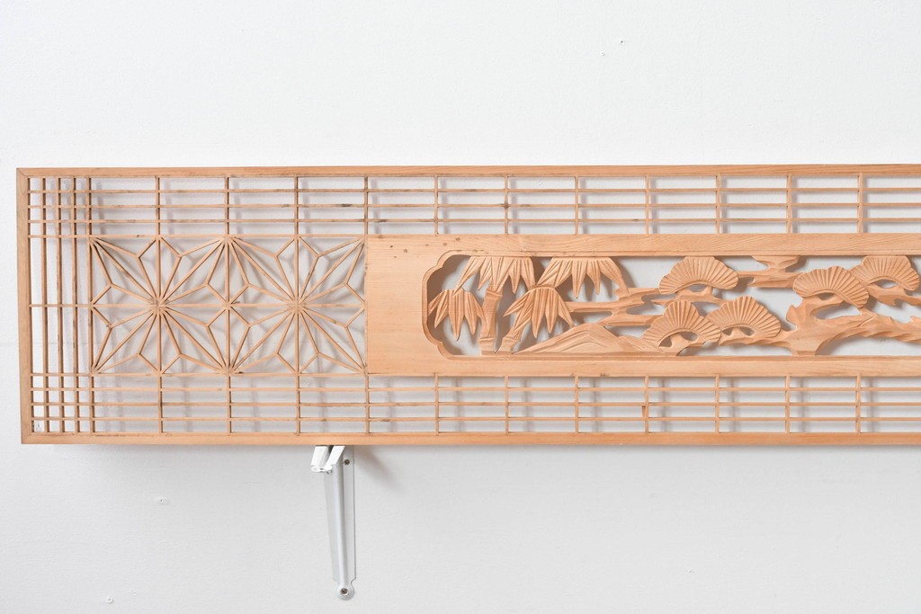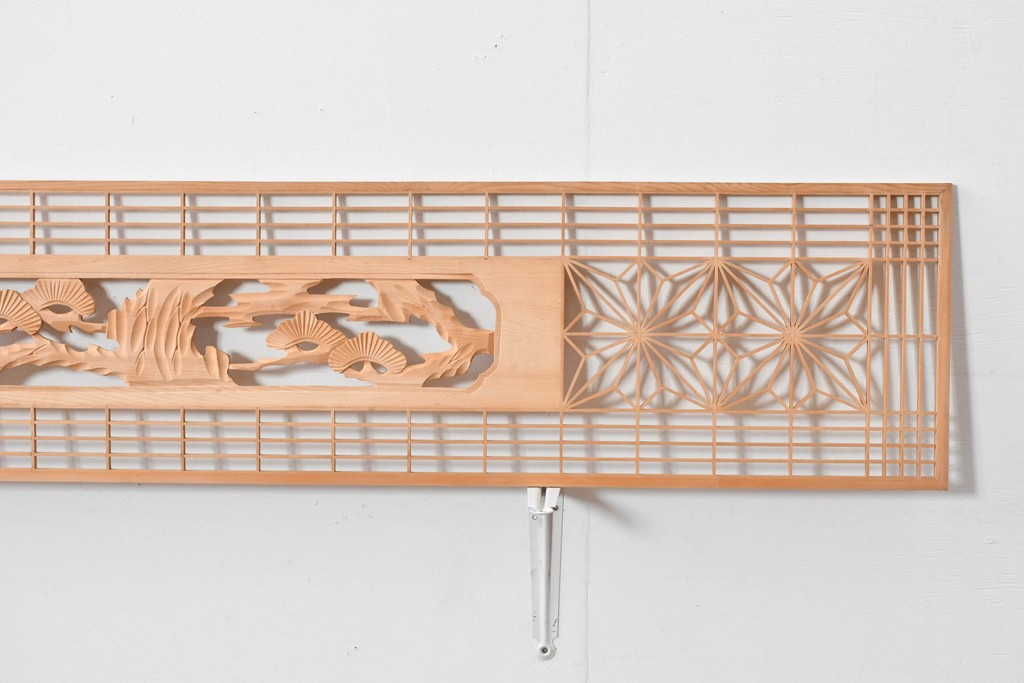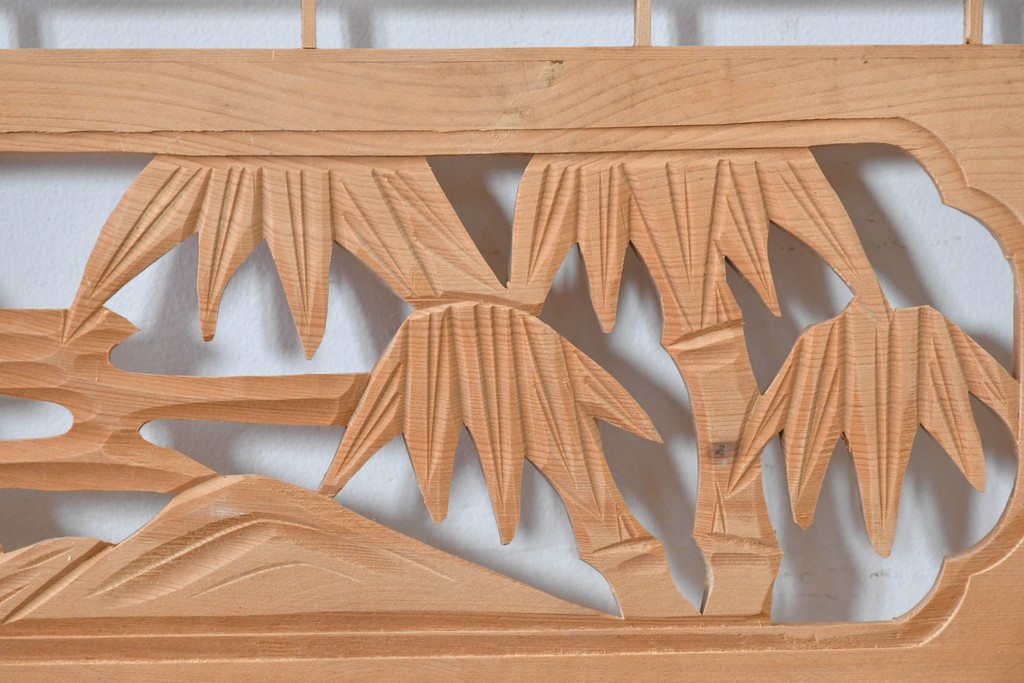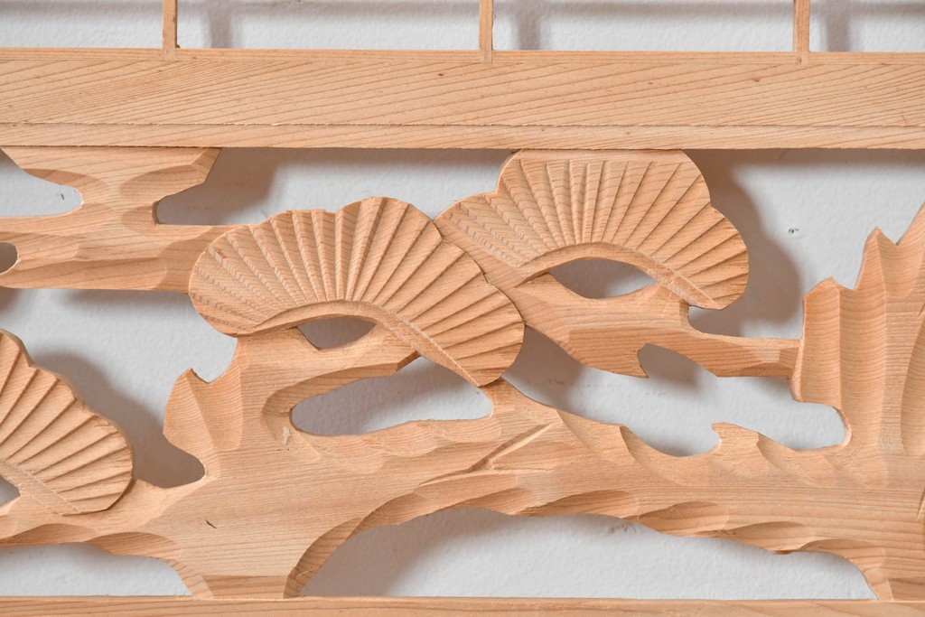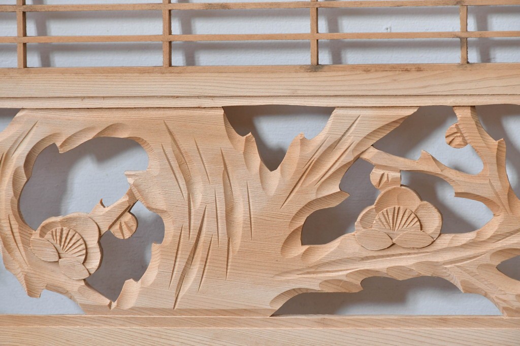 ラフジュ工房> ドア・建具> 組子建具 > ヴィンテージ建具 昭和後期 松竹梅図の彫刻意匠が映える組子細工の欄間2枚セット (R-085092)