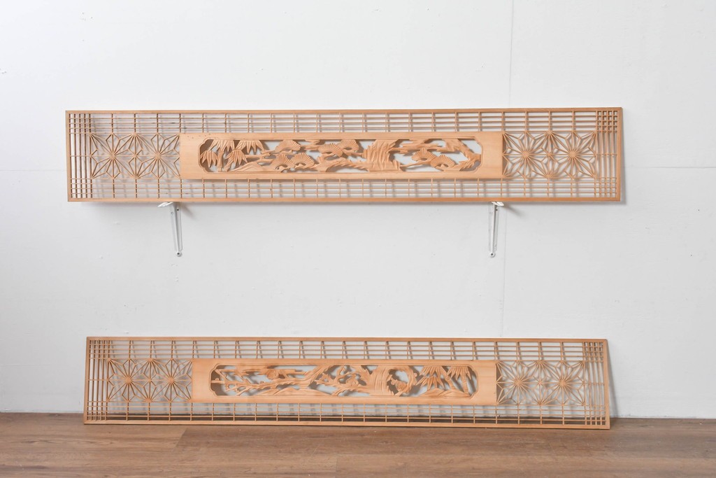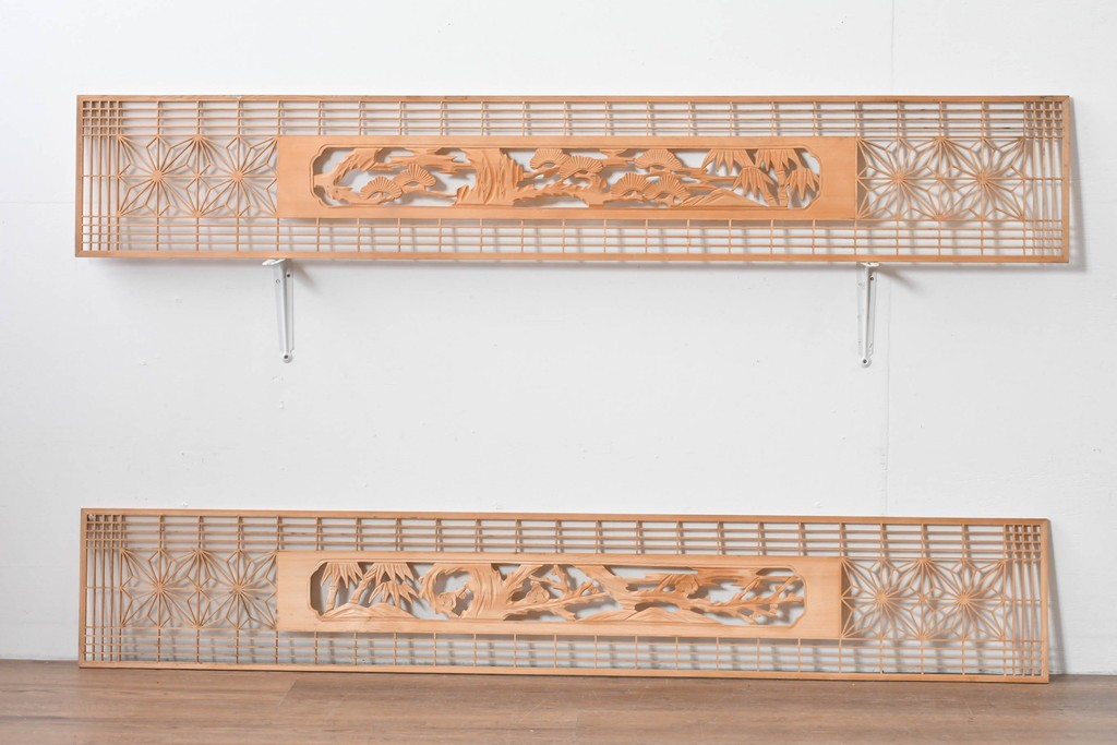 ヴィンテージ建具 昭和後期 松竹梅図の彫刻意匠が映える組子細工の欄間2枚セット (R-085092)
