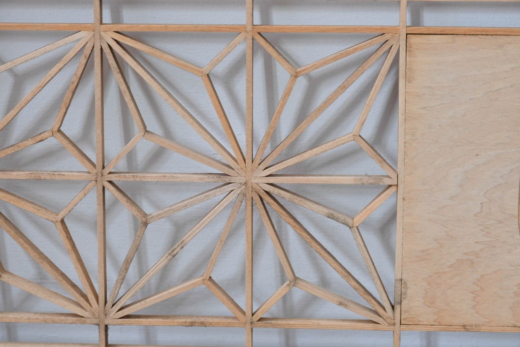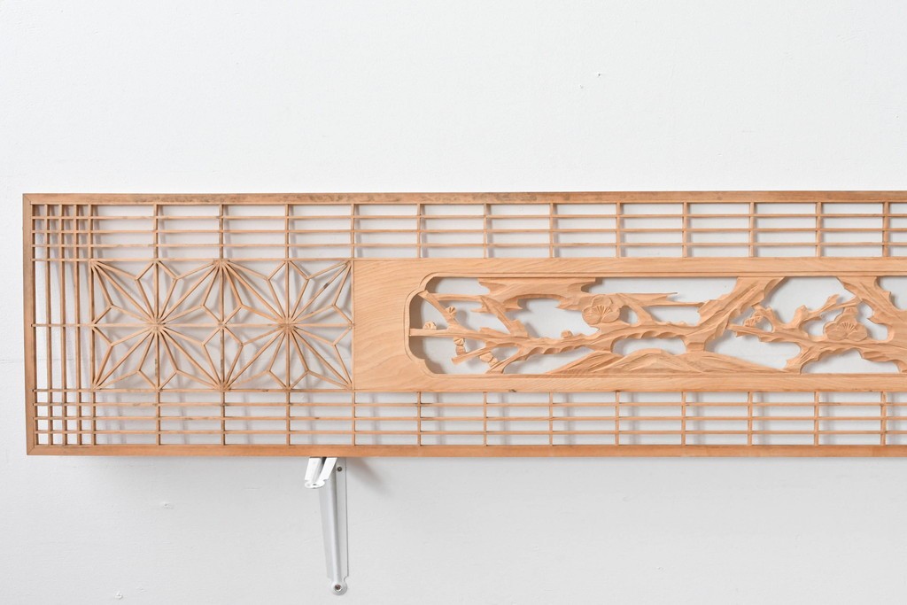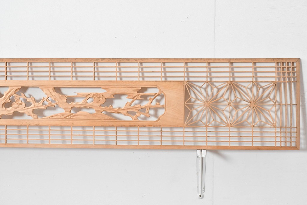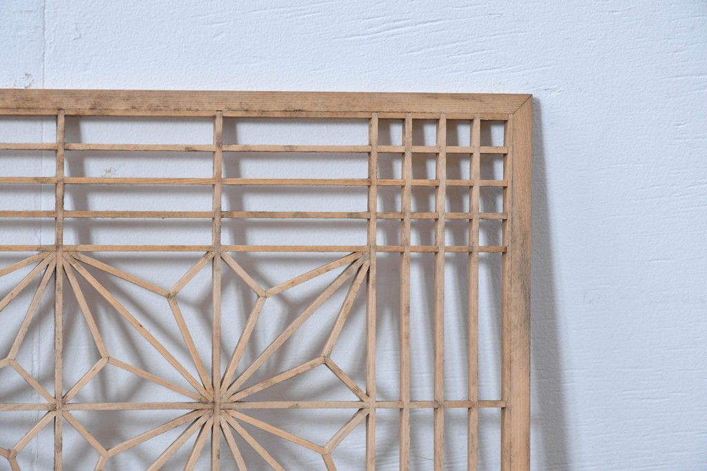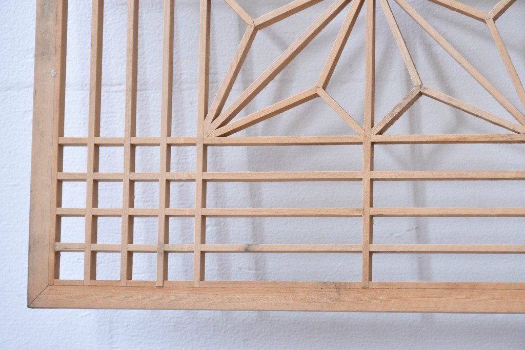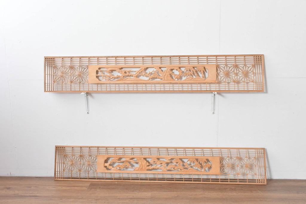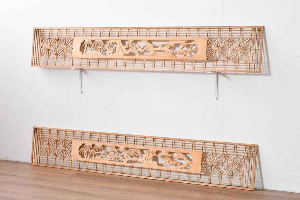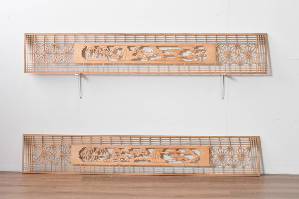ラフジュ工房> ドア・建具> 明り取り・欄間 > ヴィンテージ建具 昭和後期 松竹梅図の彫刻をあしらった組子欄間2枚セット (R-085095)