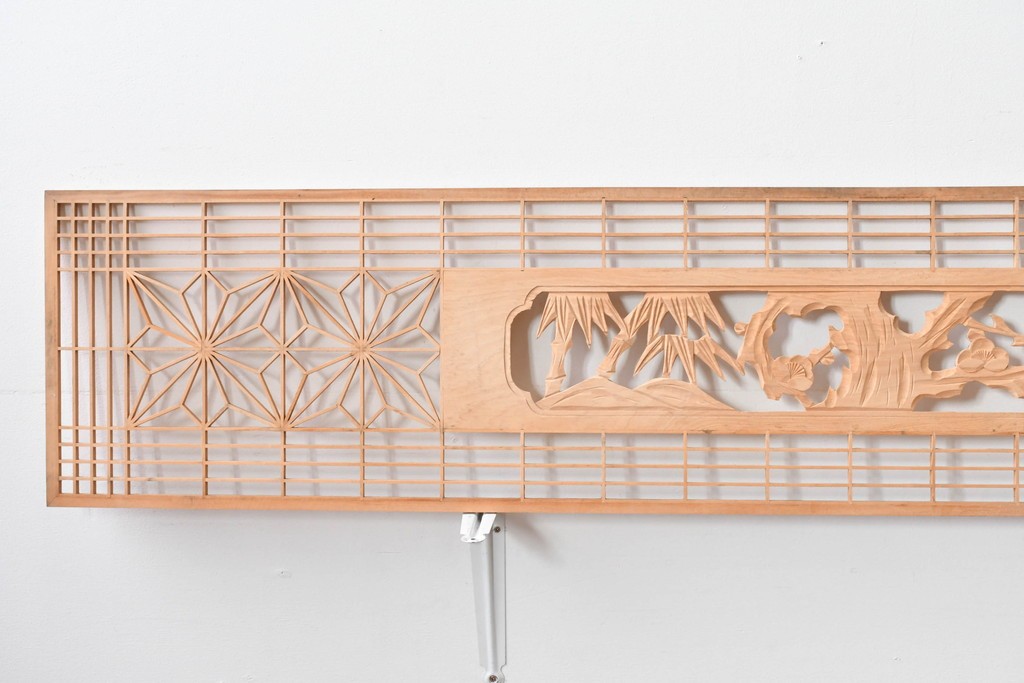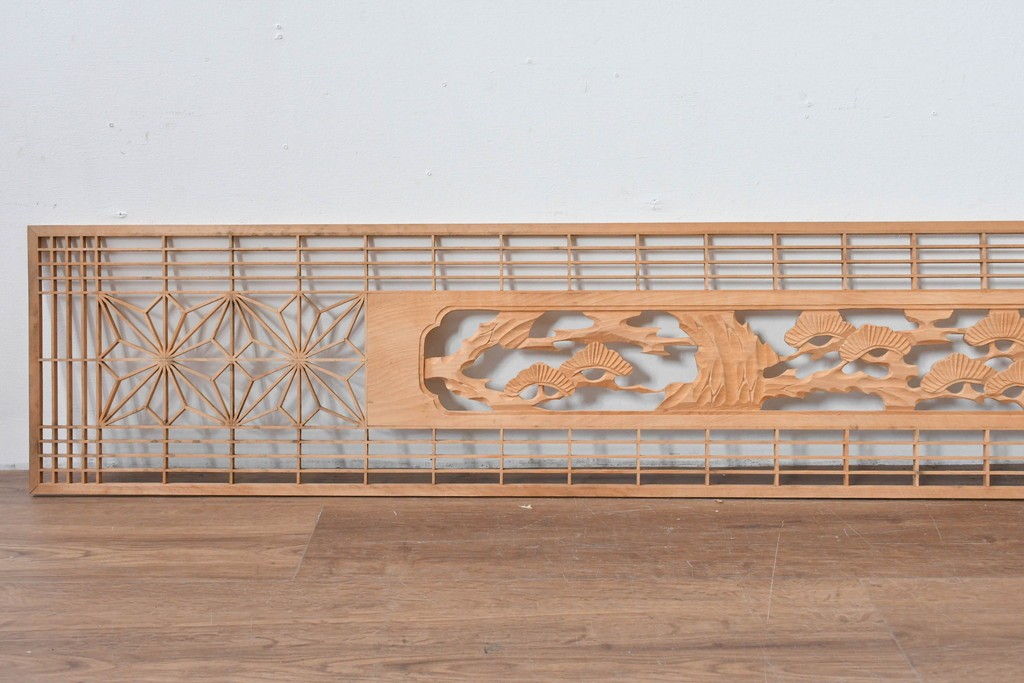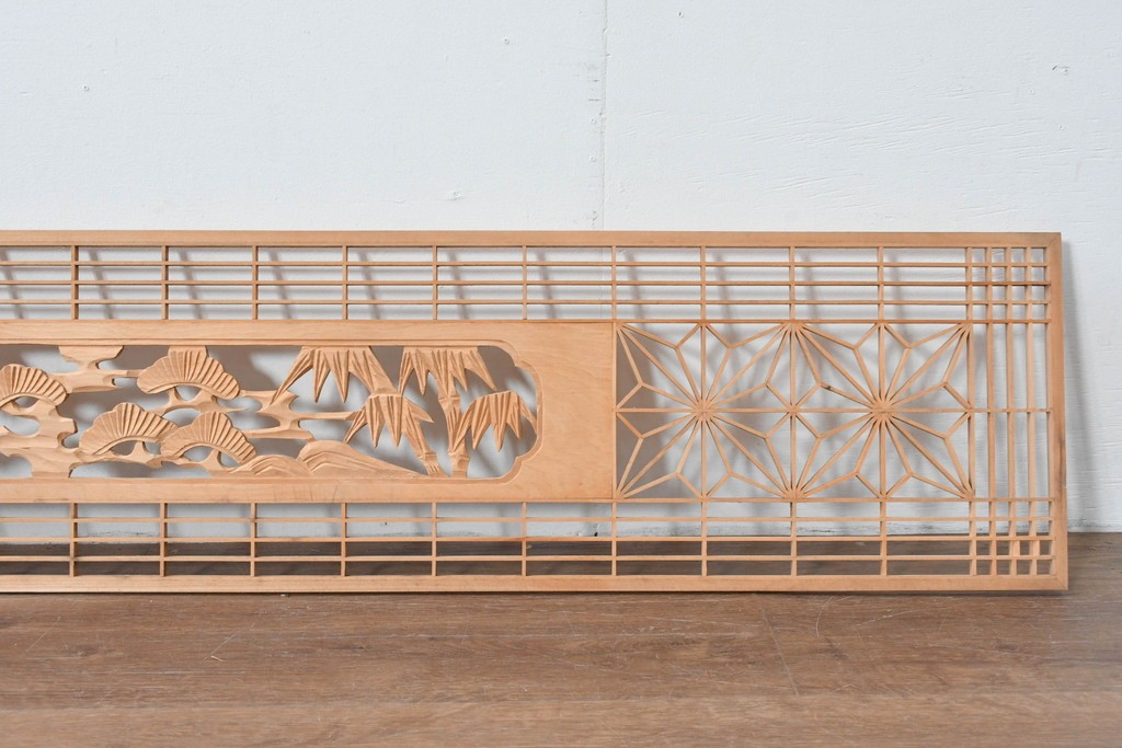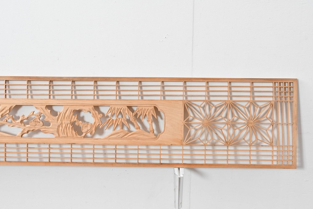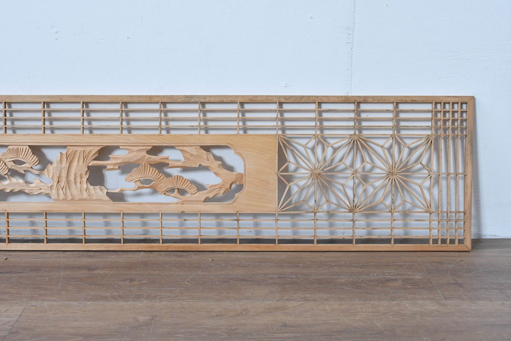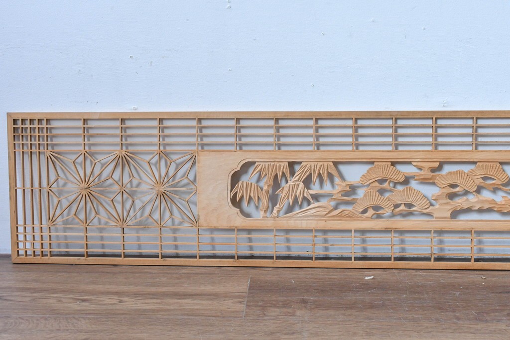ラフジュ工房> ドア・建具> 組子建具 > ヴィンテージ建具 昭和後期 松竹梅図の彫刻をあしらった組子欄間2枚セット (R-085095)