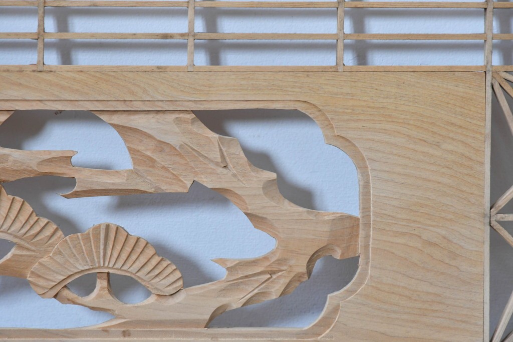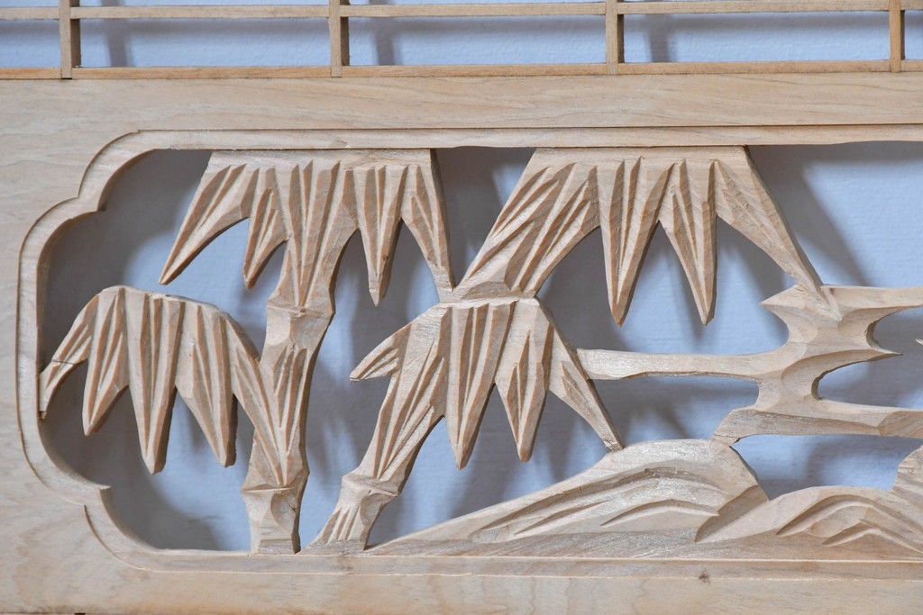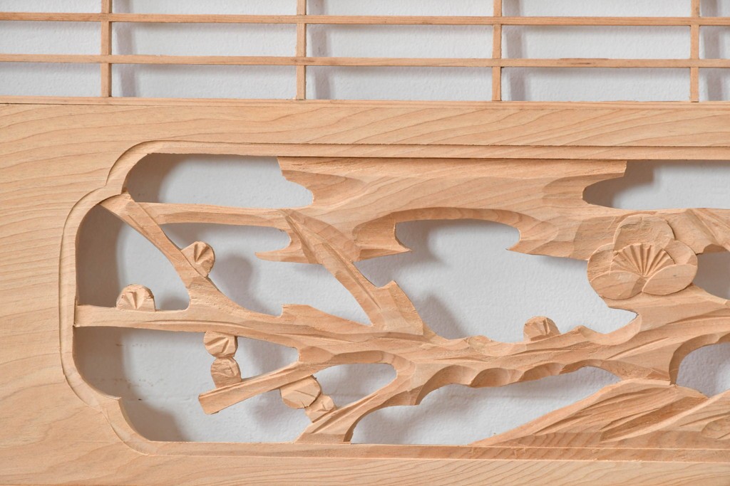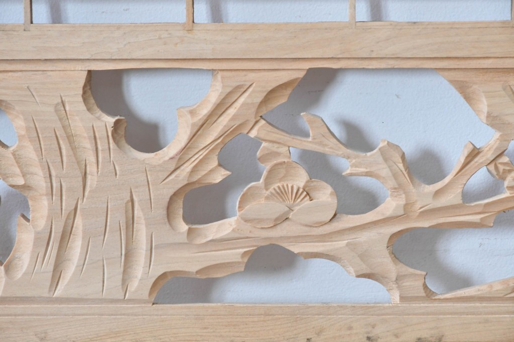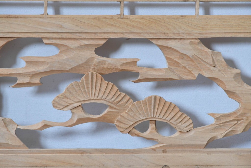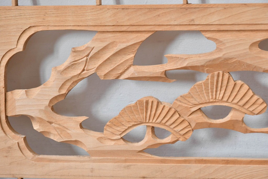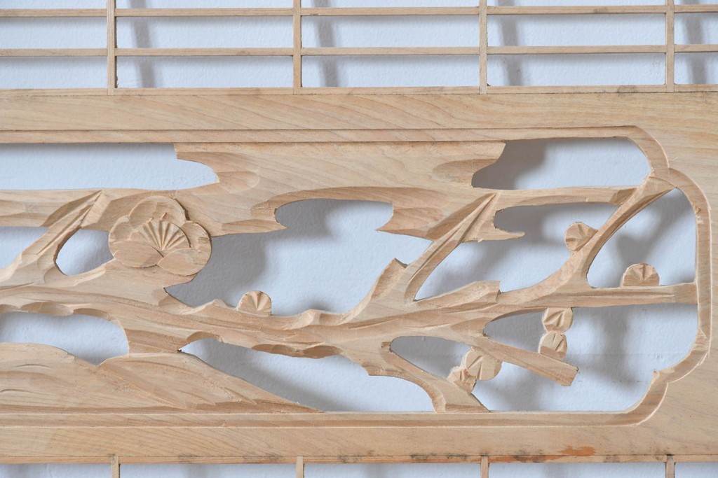 ラフジュ工房> ドア・建具> 組子建具 > ヴィンテージ建具 昭和後期 松竹梅図の彫刻をあしらった組子欄間2枚セット (R-085095)