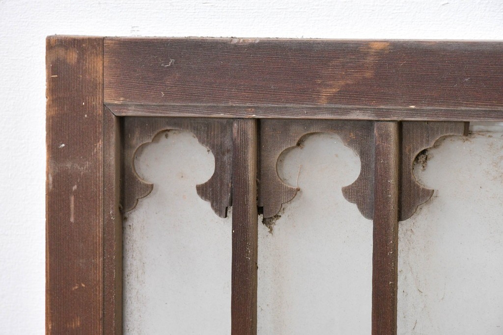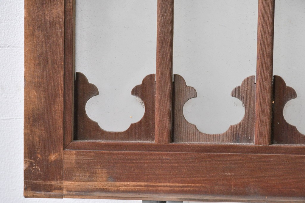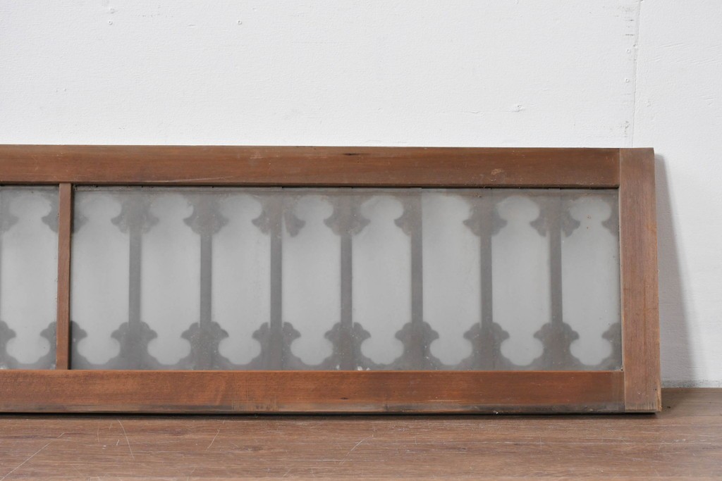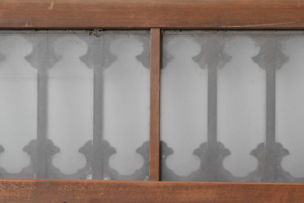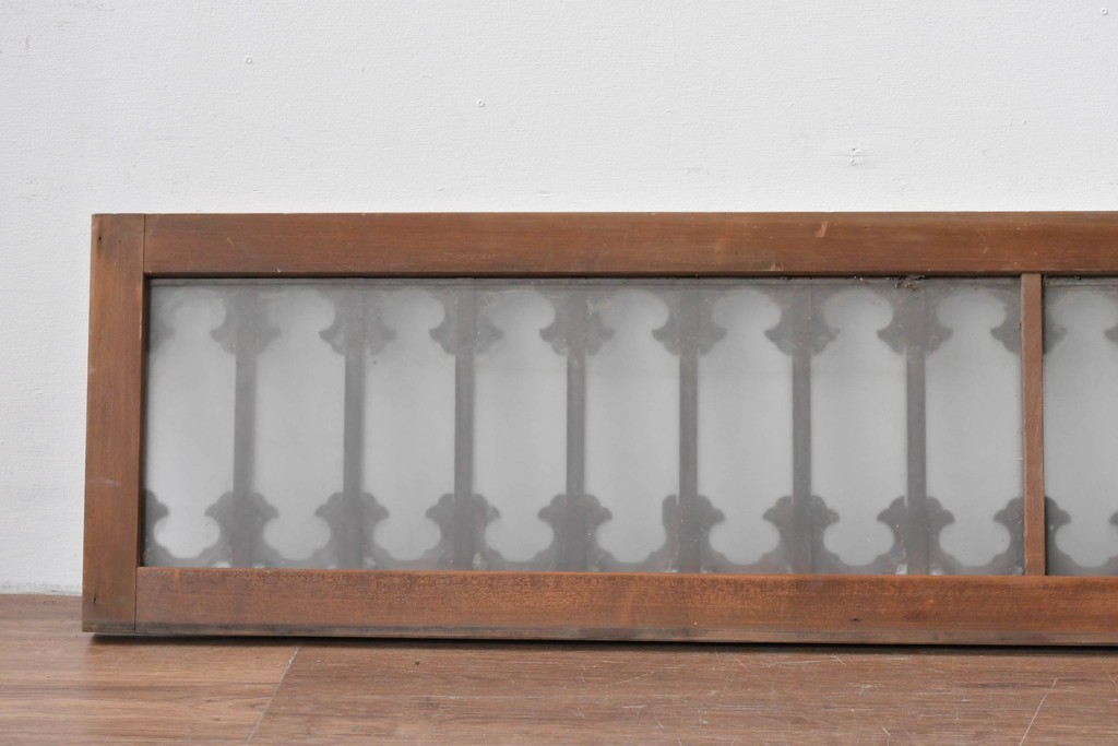 アンティーク建具 昭和初期~中期 ガラス入り 大正ロマンを象る優美な透かし意匠の欄間2枚セット (R-085097)