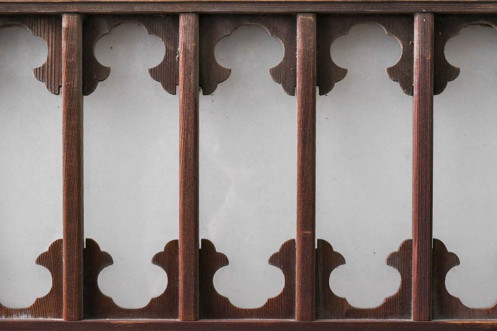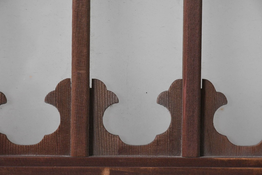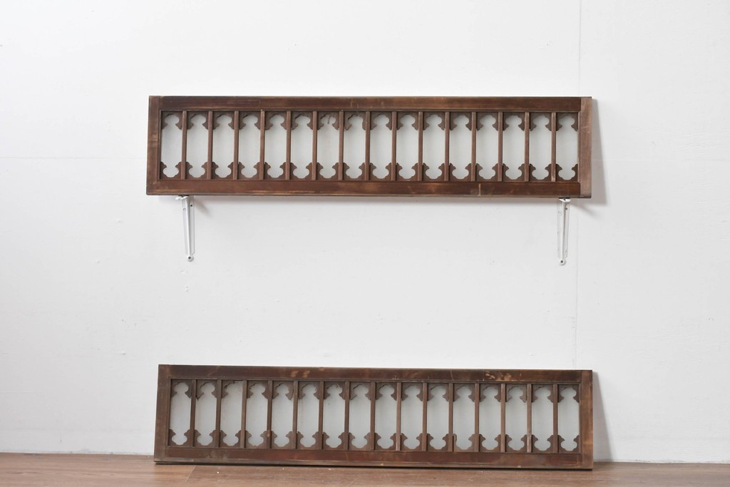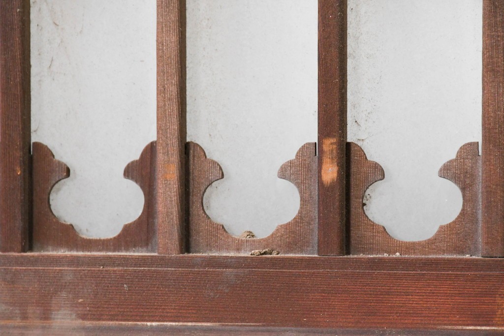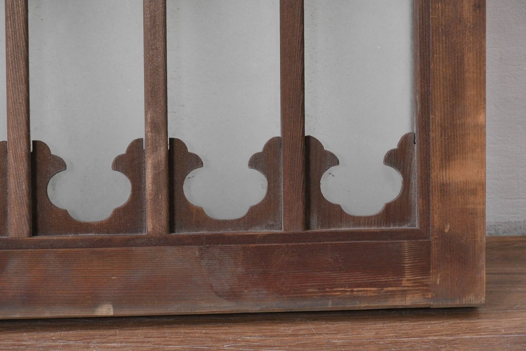 アンティーク建具 昭和初期~中期 ガラス入り 大正ロマンを象る優美な透かし意匠の欄間2枚セット (R-085097)