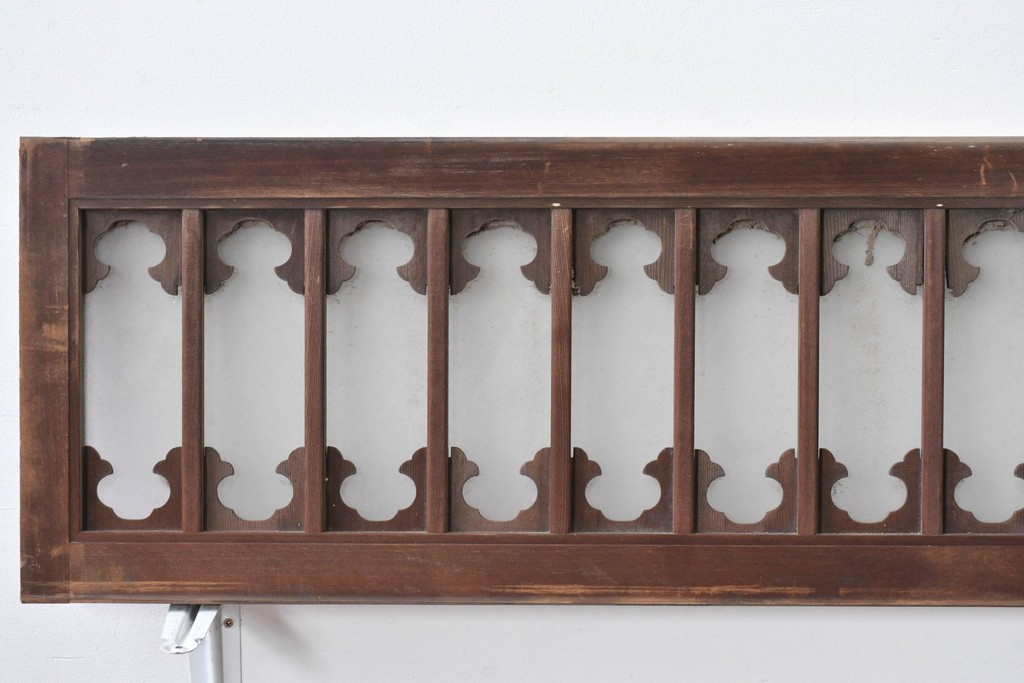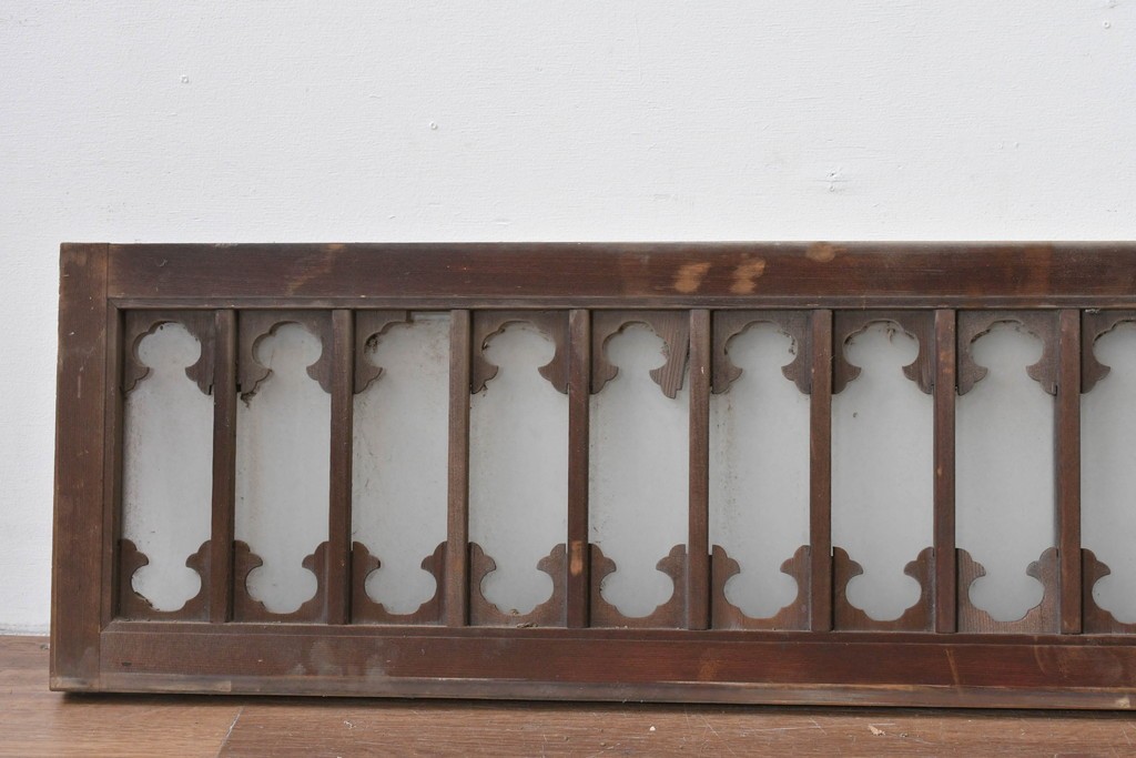 ラフジュ工房> ドア・建具> 明り取り・欄間 > アンティーク建具 昭和初期~中期 ガラス入り 大正ロマンを象る優美な透かし意匠の欄間2枚セット (R-085097)