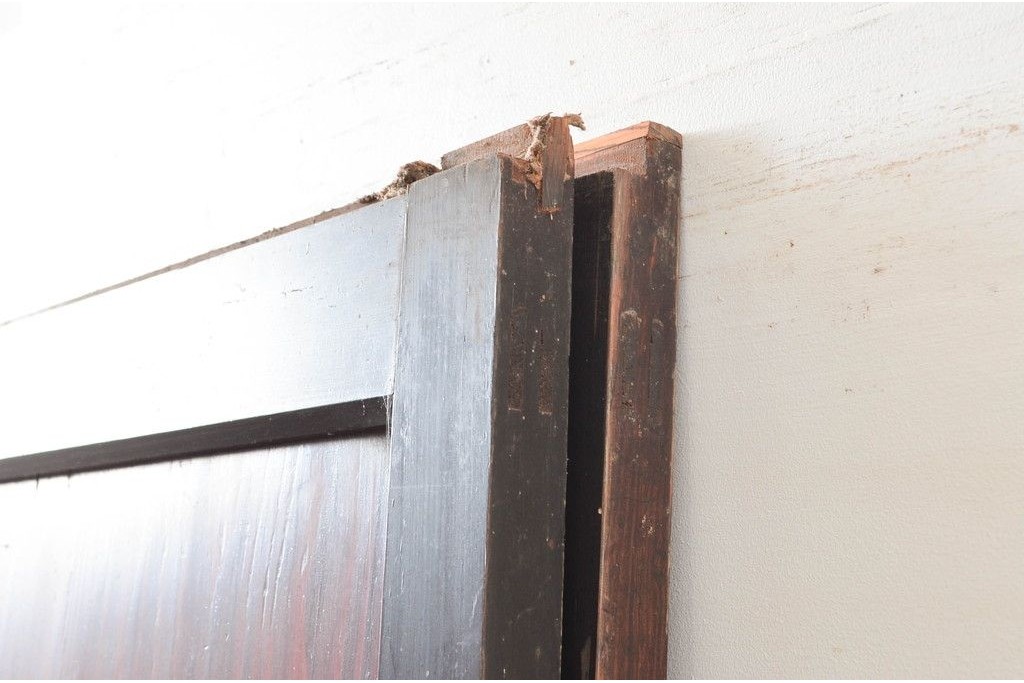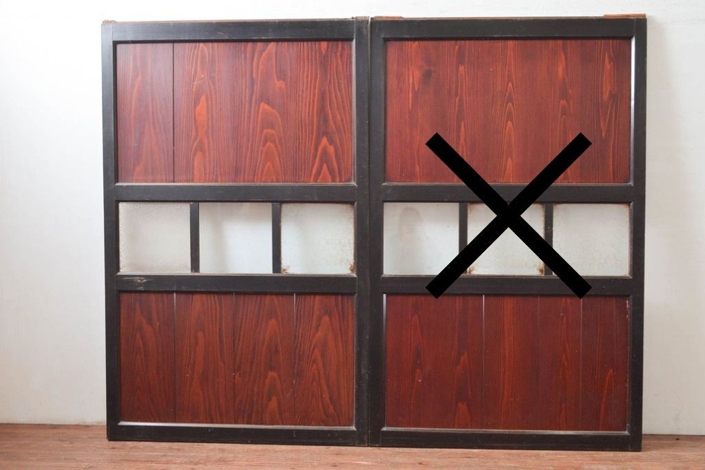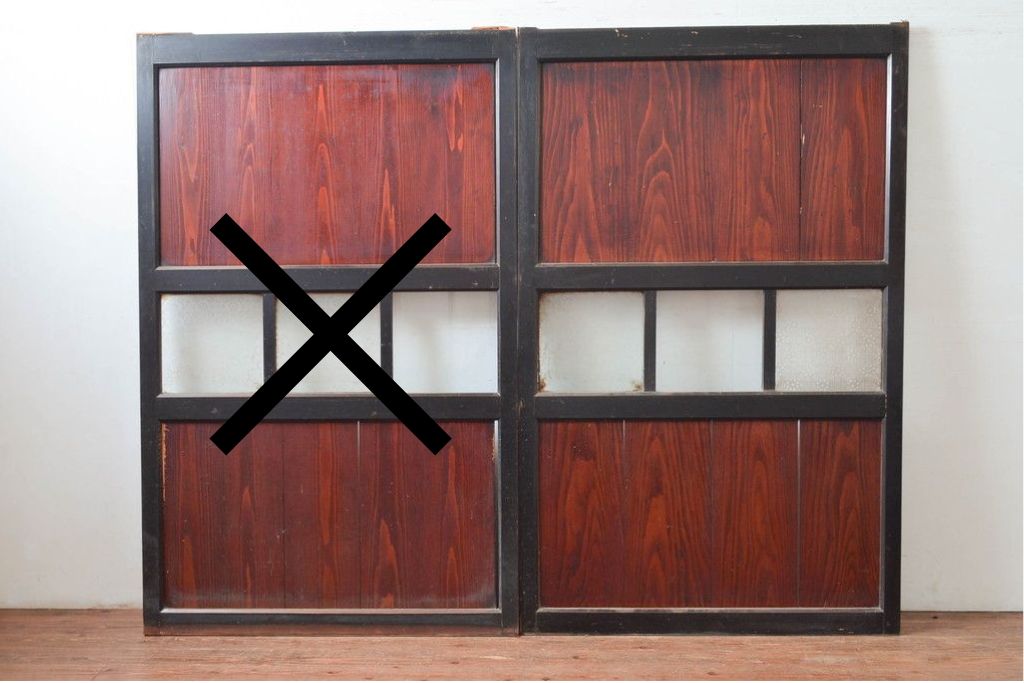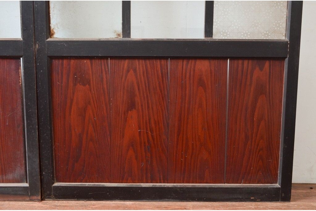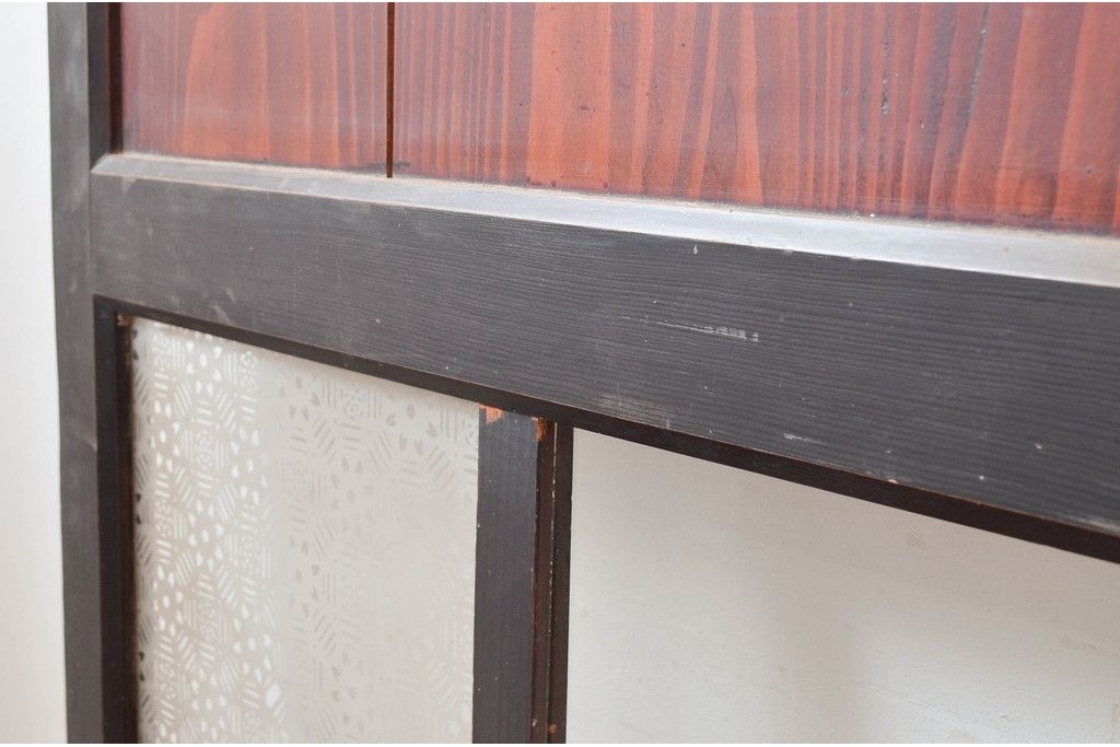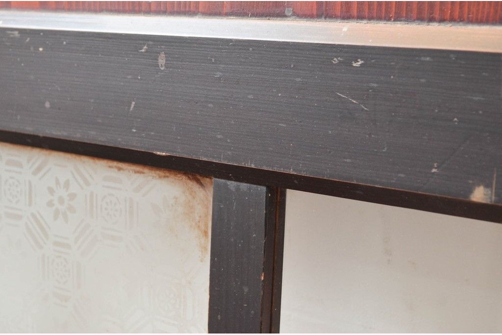ドア・建具 > アンティーク建具 大正期 漆塗り 模様入りのガラスが魅力的な幅広ガラス帯戸(引き戸) (R-085103)