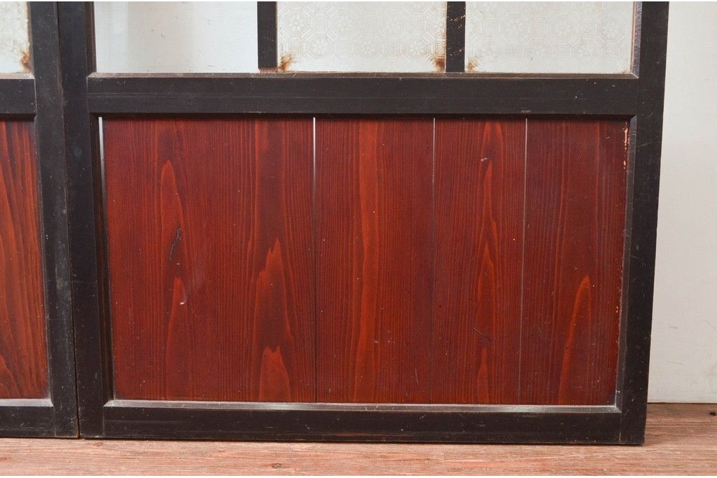 ドア・建具> 板戸・帯戸 > アンティーク建具 大正期 漆塗り 模様入りのガラスが魅力的な幅広ガラス帯戸(引き戸) (R-085103)