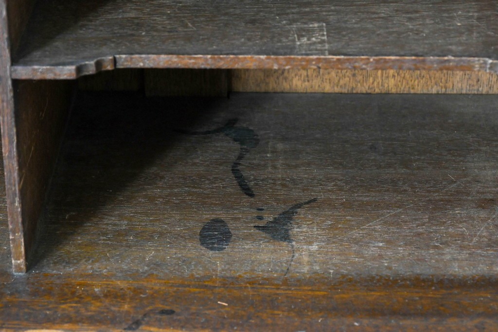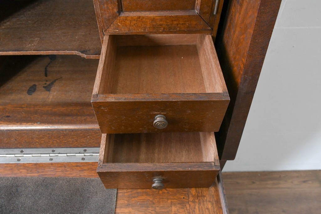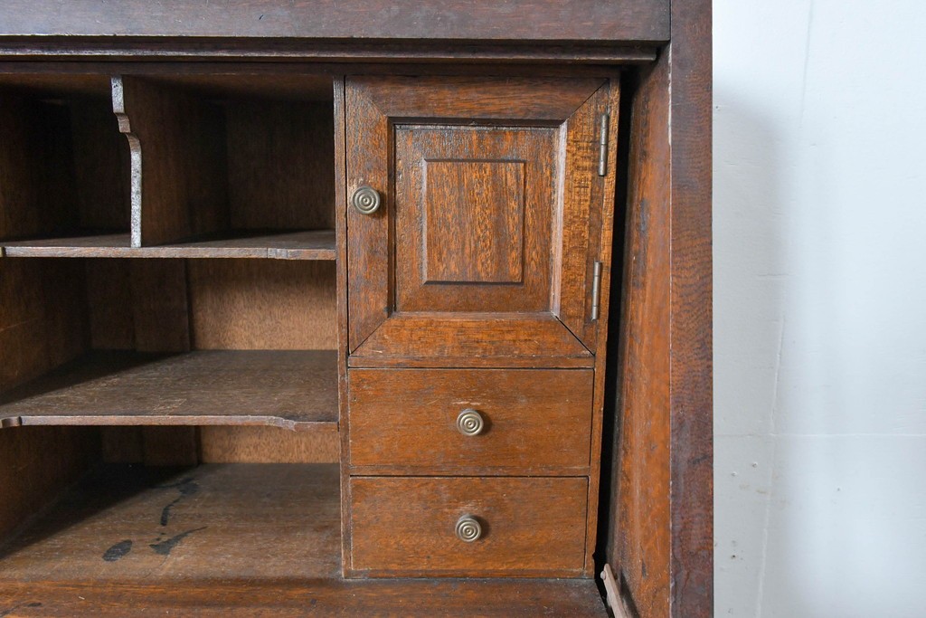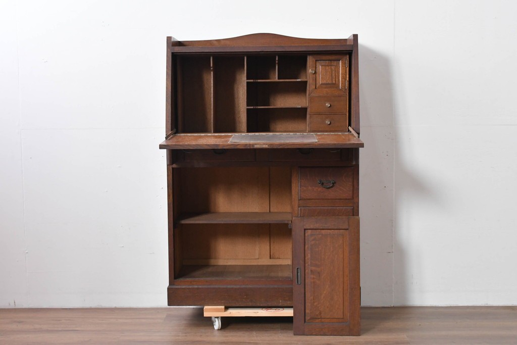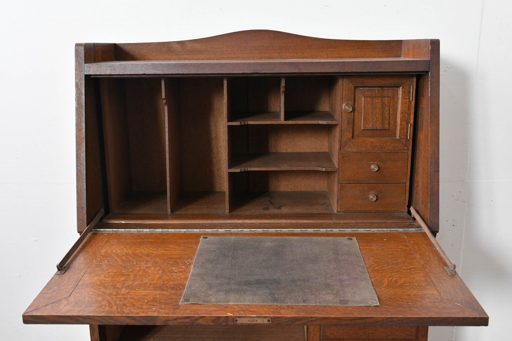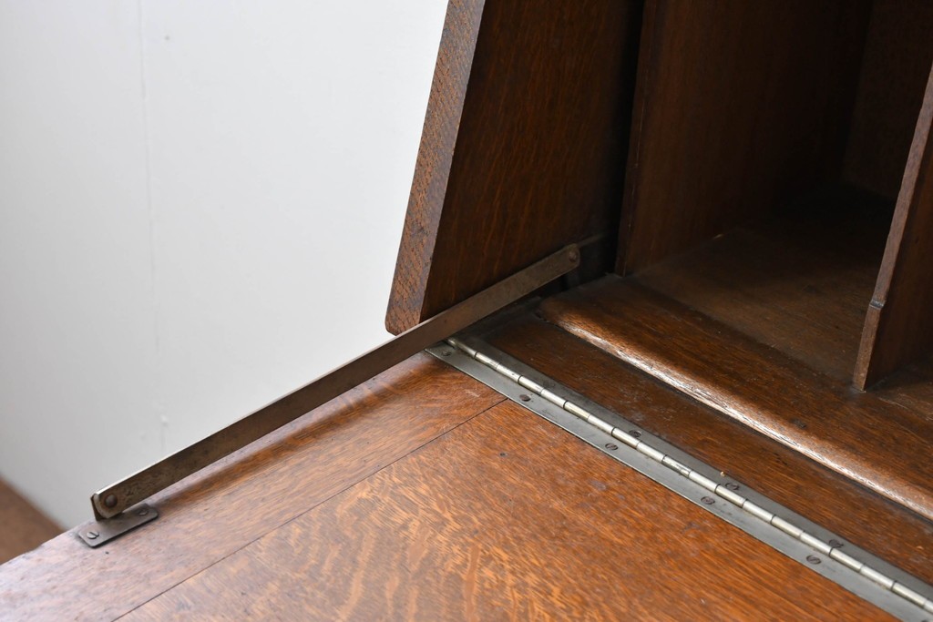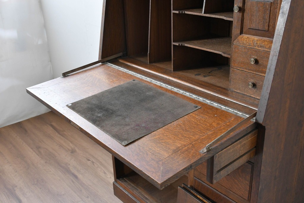 • 和製アンティーク 上手物!! 大正ロマン 繊細な彫刻装飾がアクセントのナラ材製ライティングビューロー (R-085121)