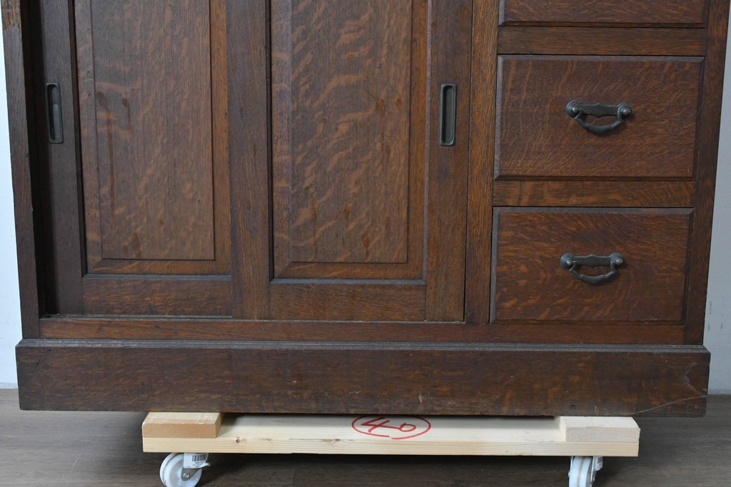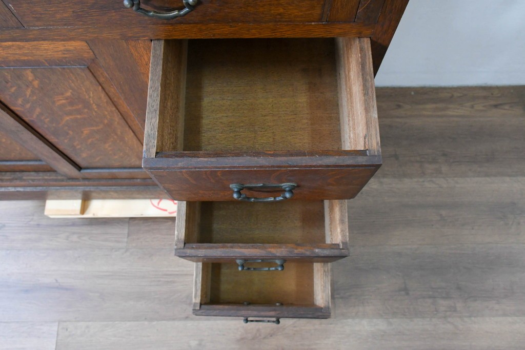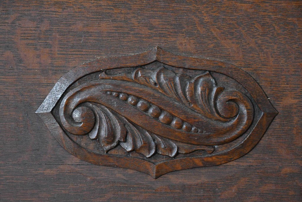 ラフジュ工房> デスク > 和製アンティーク 上手物!! 大正ロマン 繊細な彫刻装飾がアクセントのナラ材製ライティングビューロー (R-085121)