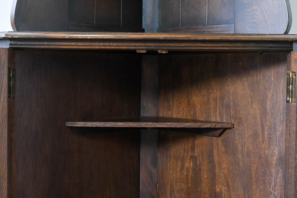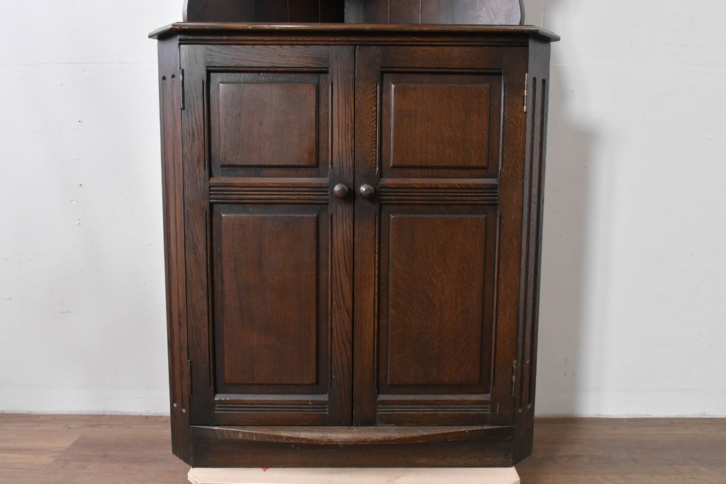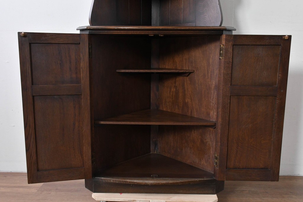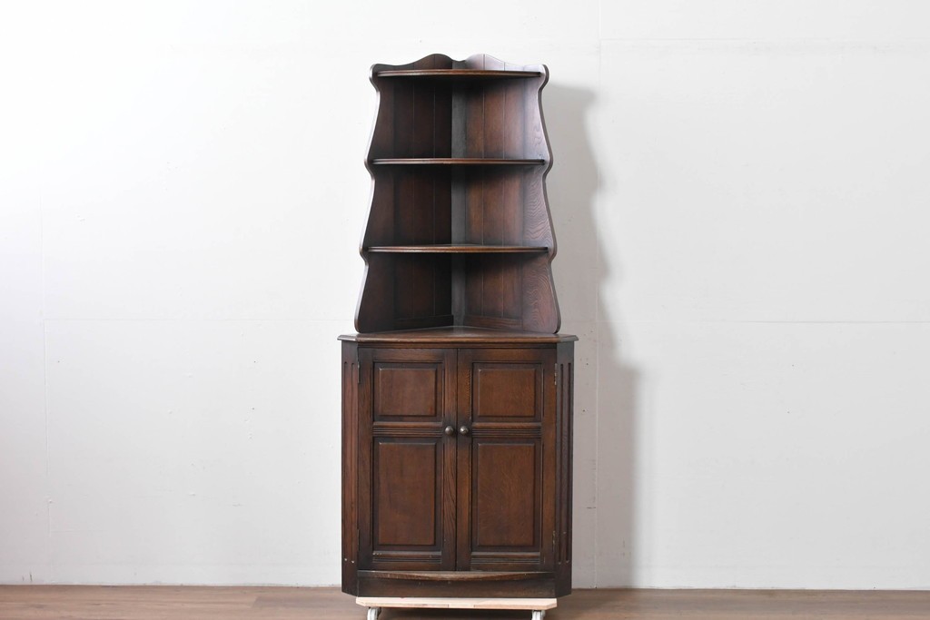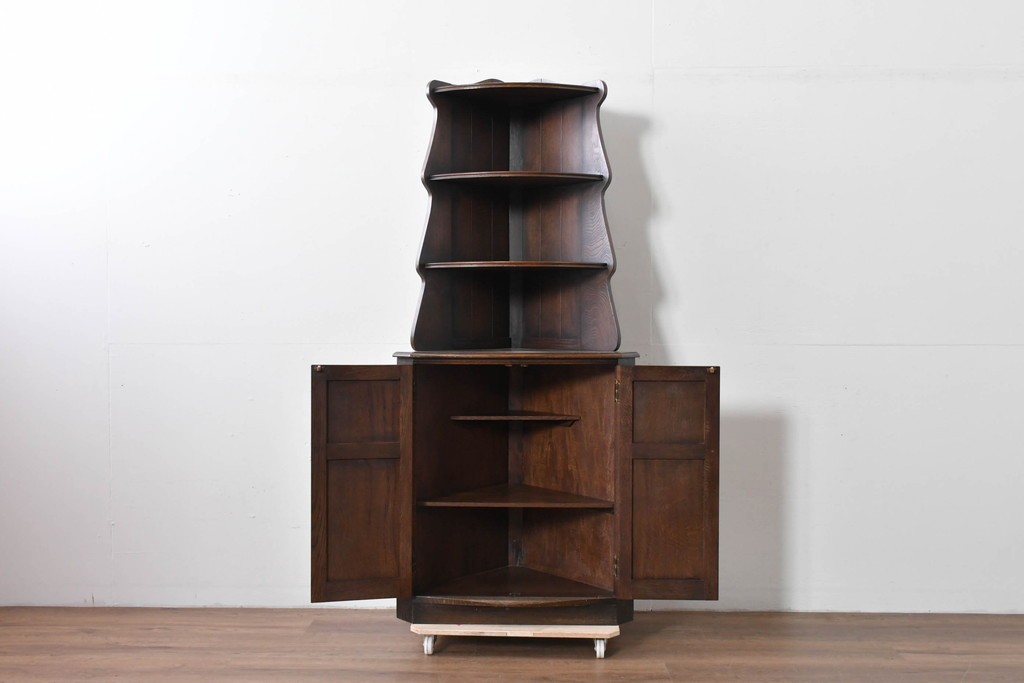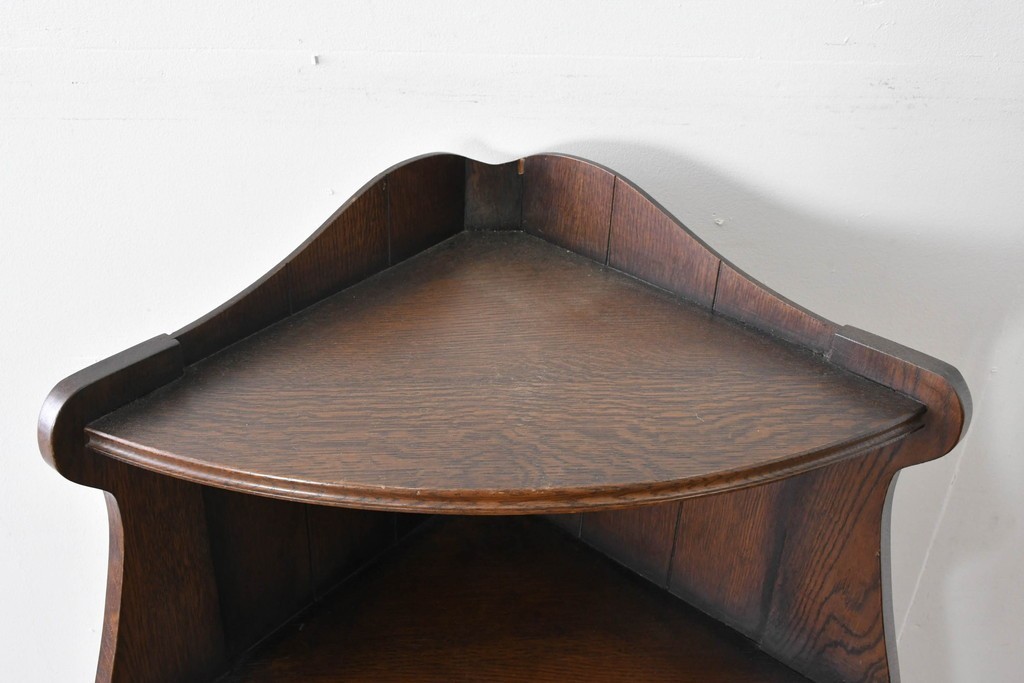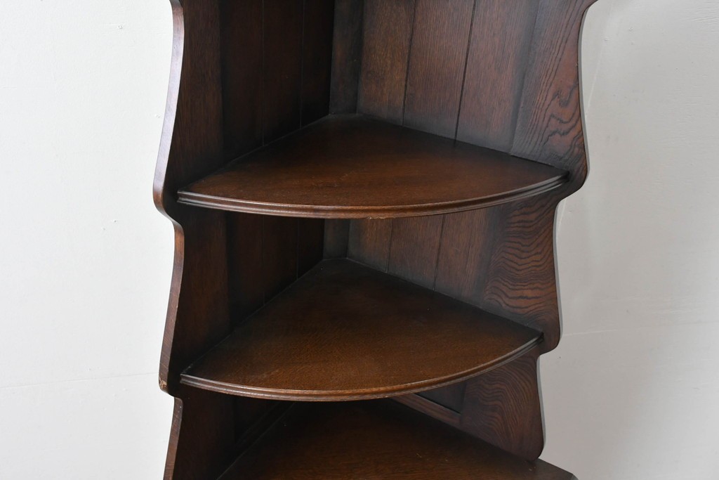 ラフジュ工房> オープンラック・シェルフ> コーナーラック > イギリスヴィンテージ オーク材 優美な曲線シルエットのコーナーラック (R-085122)