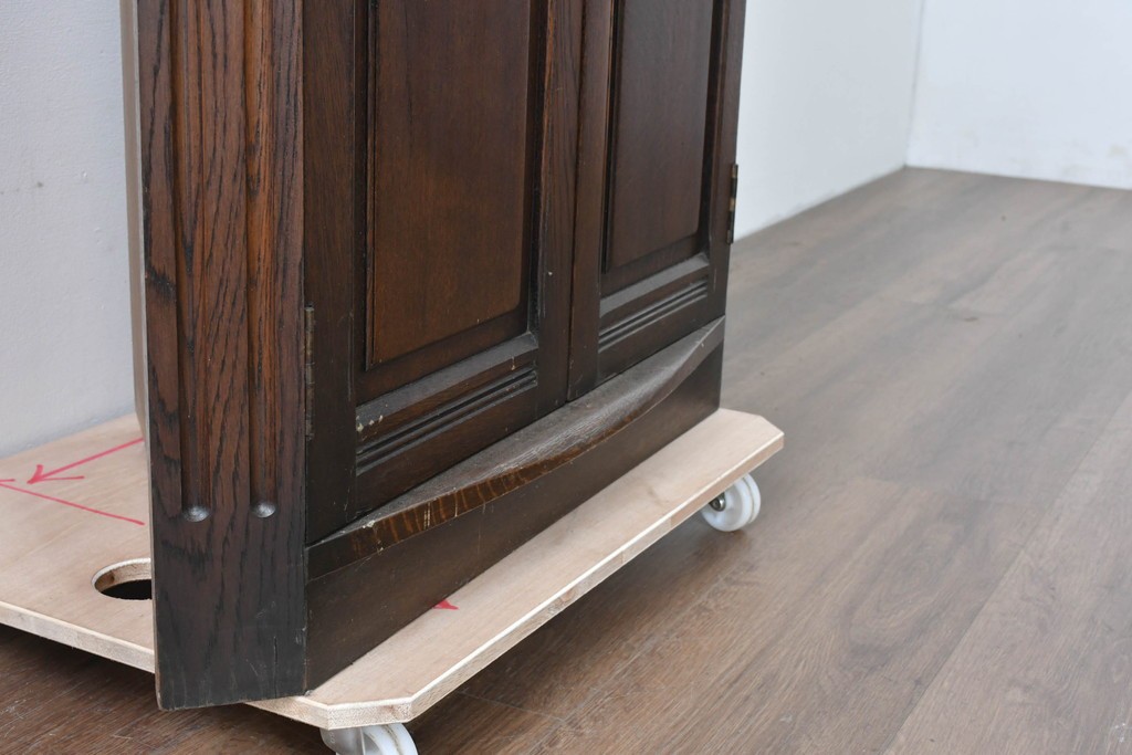 • イギリスヴィンテージ オーク材 優美な曲線シルエットのコーナーラック (R-085122)