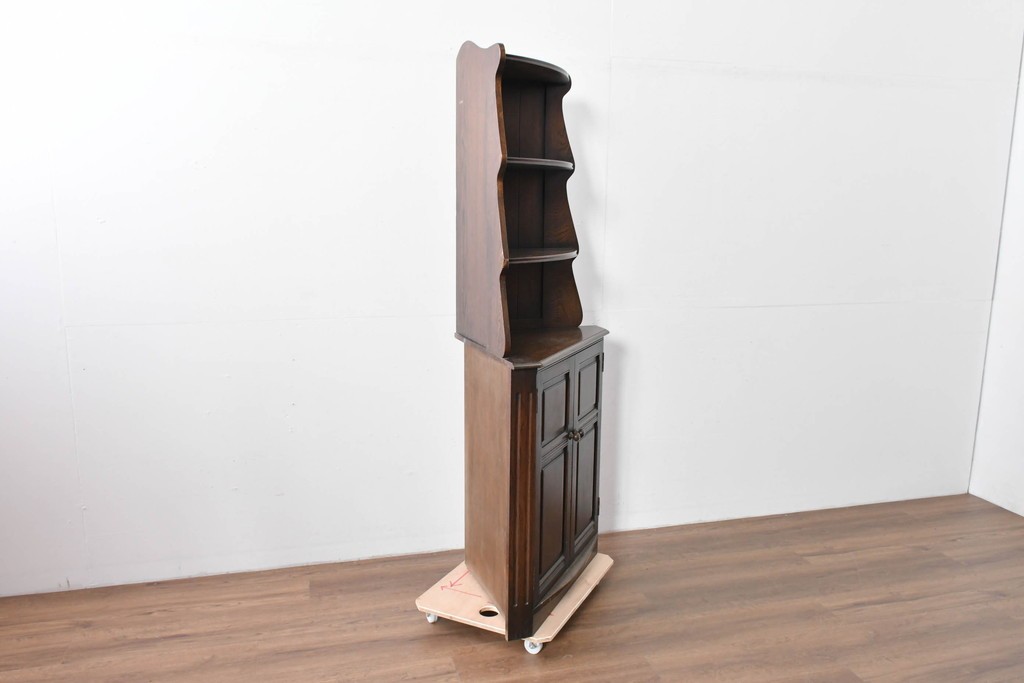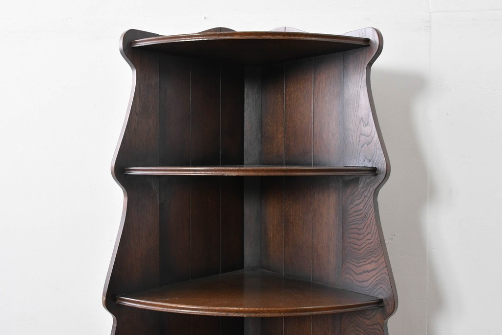 ラフジュ工房> オープンラック・シェルフ > イギリスヴィンテージ オーク材 優美な曲線シルエットのコーナーラック (R-085122)