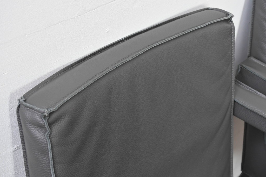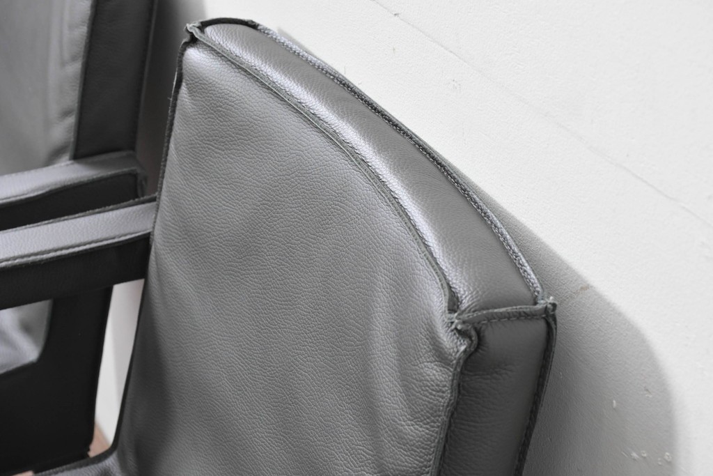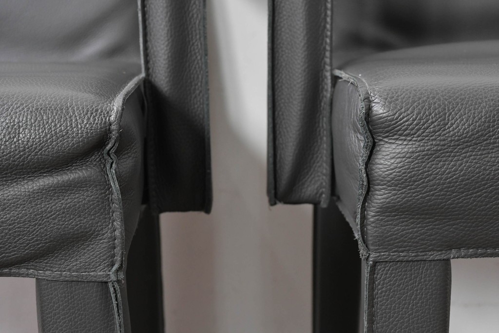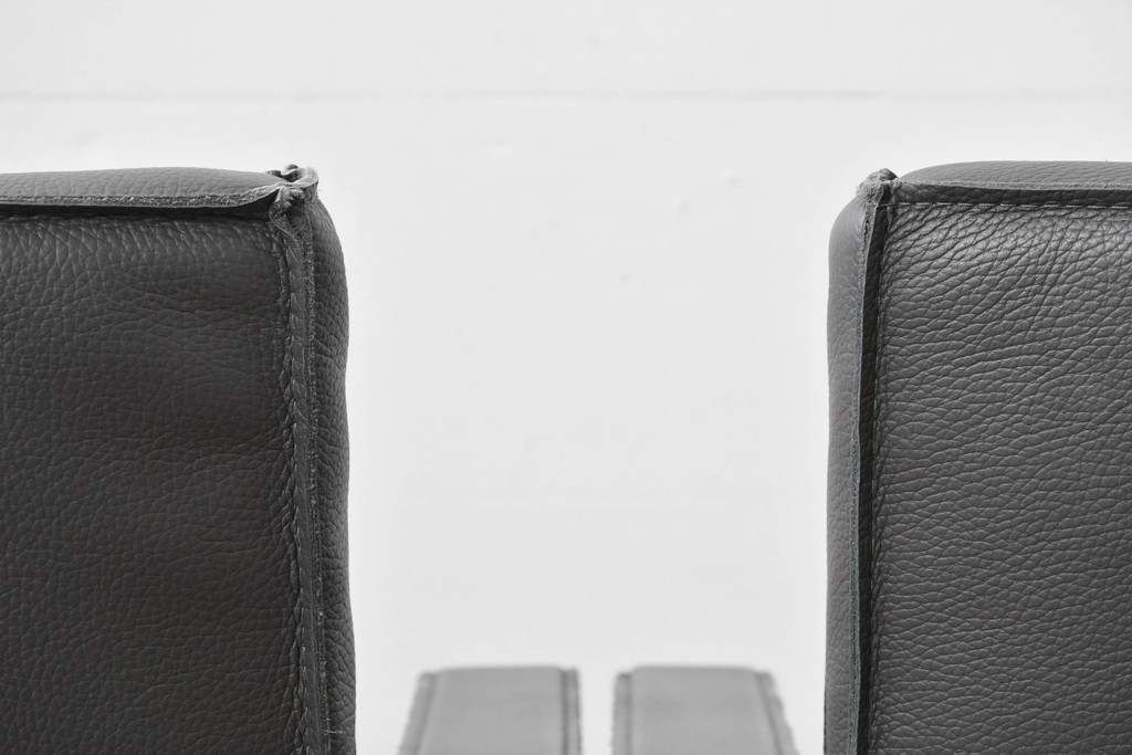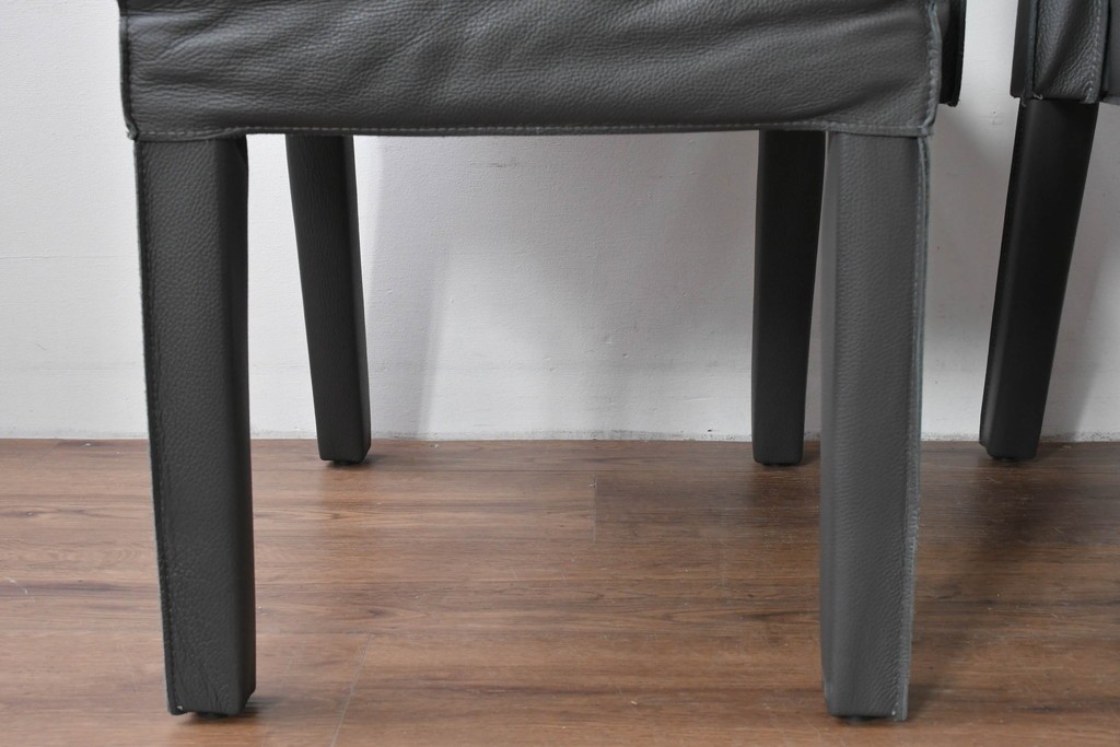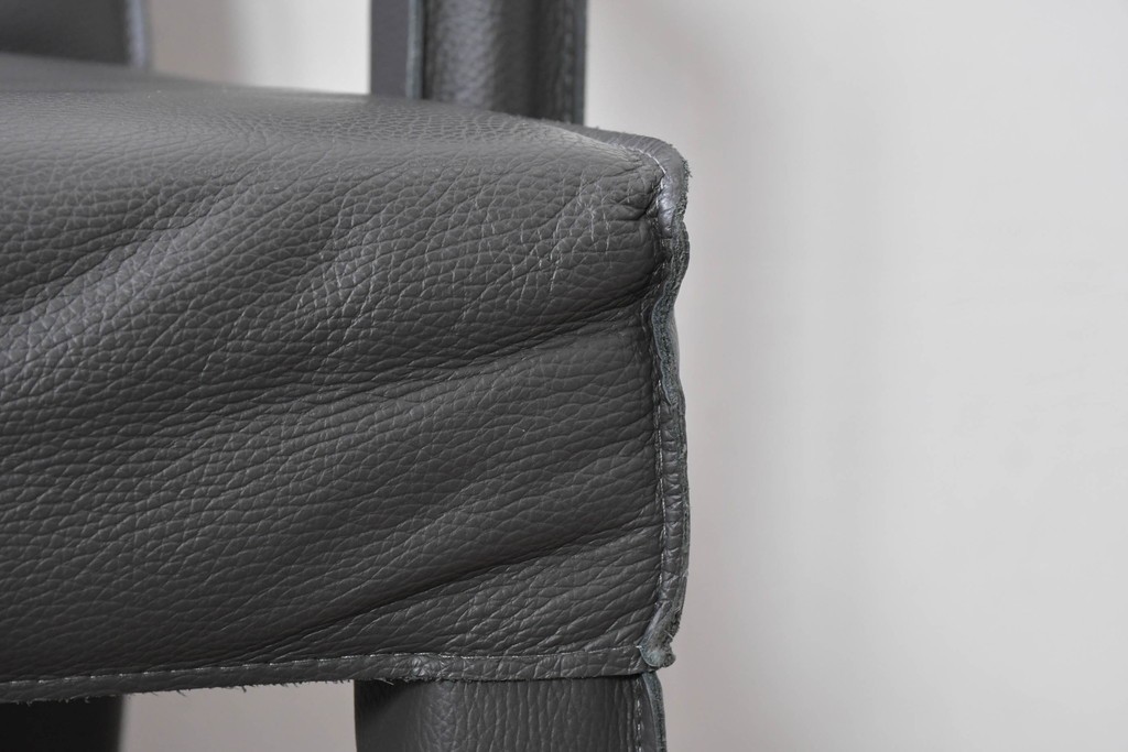 脚部やアームに至るまでレザーで包み込むように張り込まれており、椅子全体に統一された美しい表情を持たせています。面ごとに整えられた縫製ラインは、丁寧な作りの証。ミニマルでありながらも、高級感をしっかりと感じられる作りです。