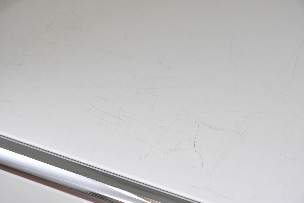 クローム仕上げのフレームが空間に上質な輝きを添えてくれます。ホワイトパネルがシンプルながらも洗練された印象で、オフィスからリビングまで幅広く活躍してくれる優れものです。