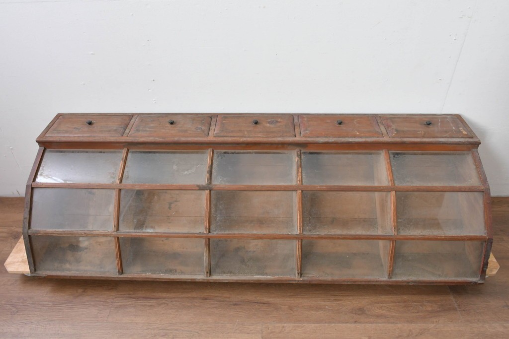 • 和製アンティーク 激レアデザイン! 古い駄菓子屋さんの上蓋式卓上ガラスケース (R-085181)