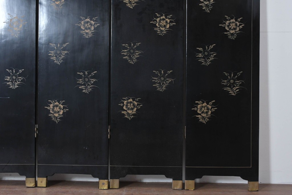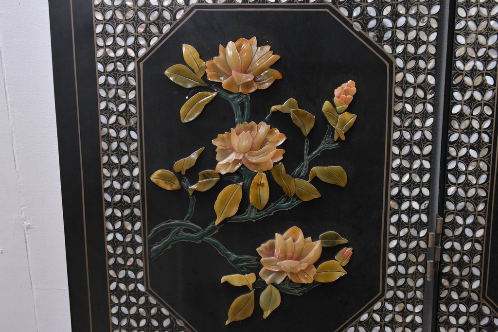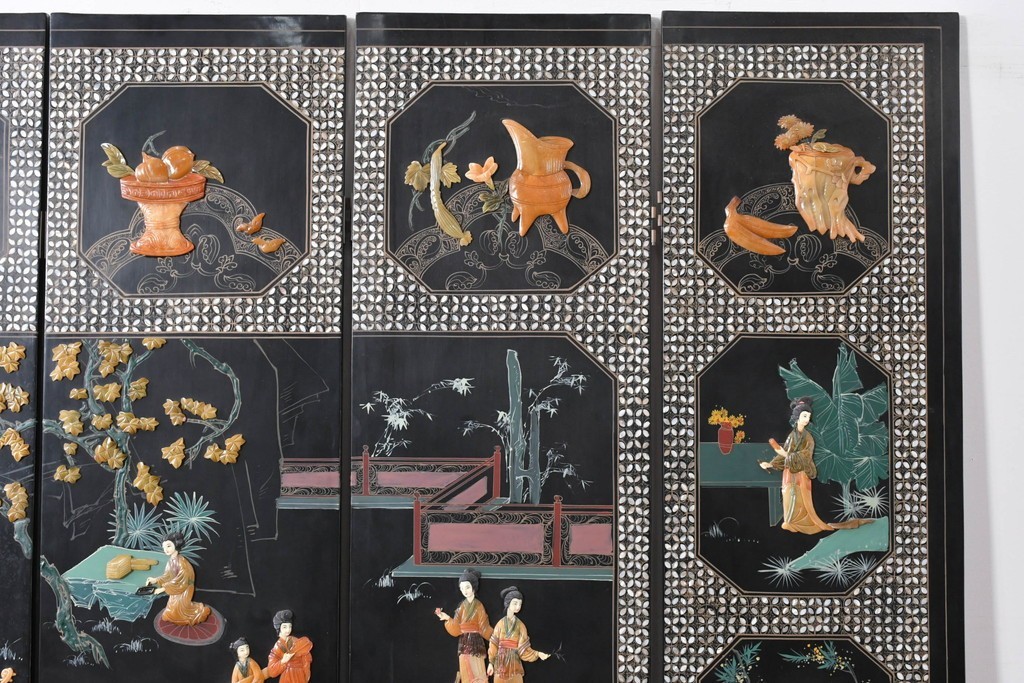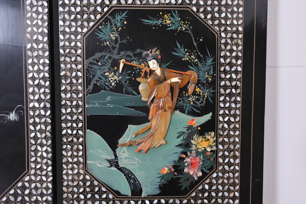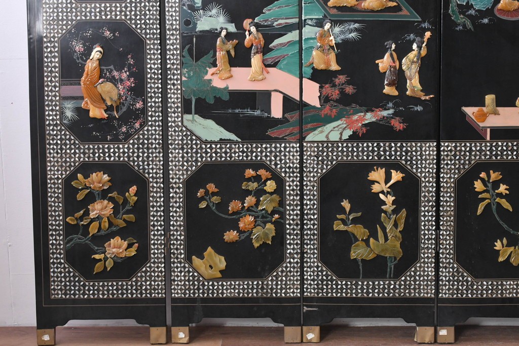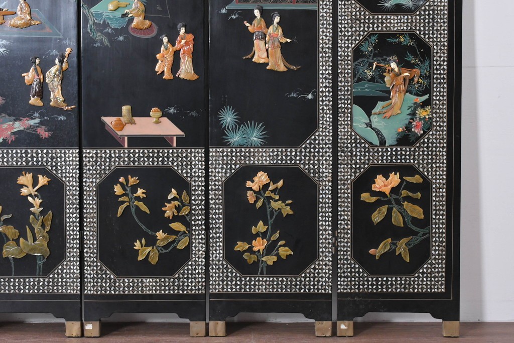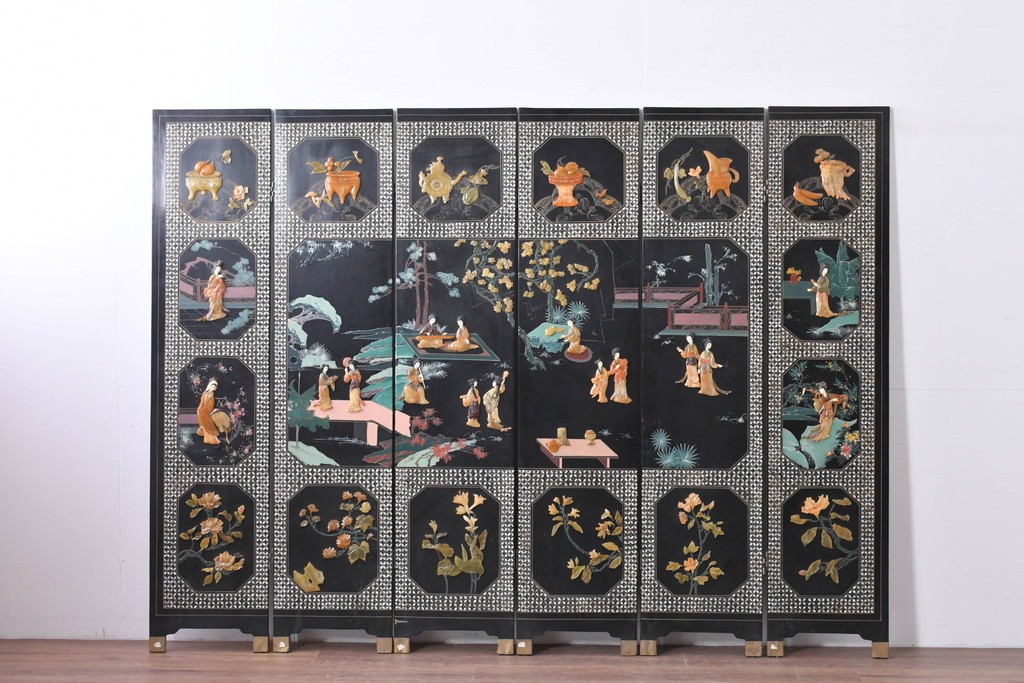 ラフジュ工房> 衝立・パーテーション> 折りたたみパーテーション > アジアンヴィンテージ 希少!! 中国美術屏風 雅集図 豪華装飾の玉石象嵌衝立 (R-085192)
