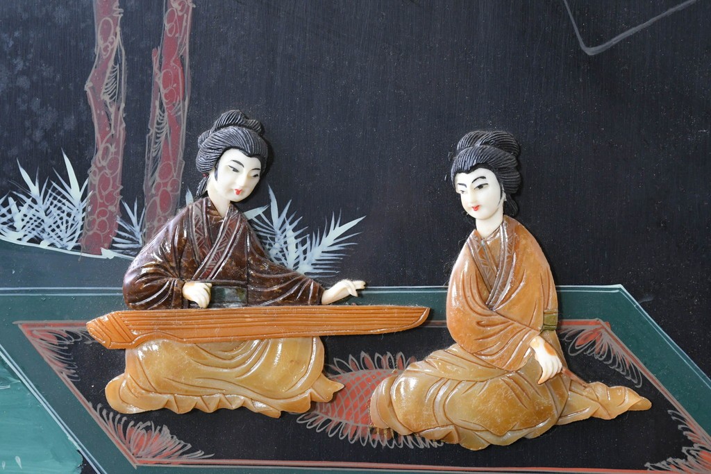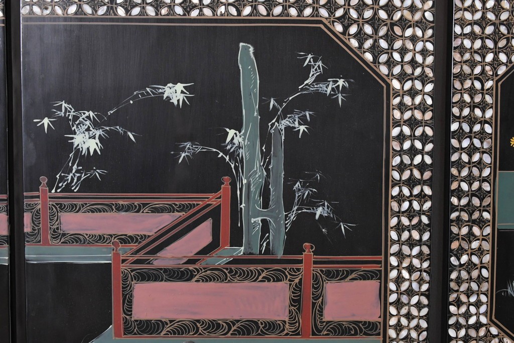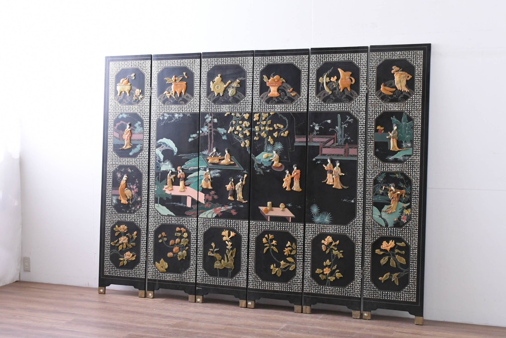 ラフジュ工房> 衝立・パーテーション > アジアンヴィンテージ 希少!! 中国美術屏風 雅集図 豪華装飾の玉石象嵌衝立 (R-085192)