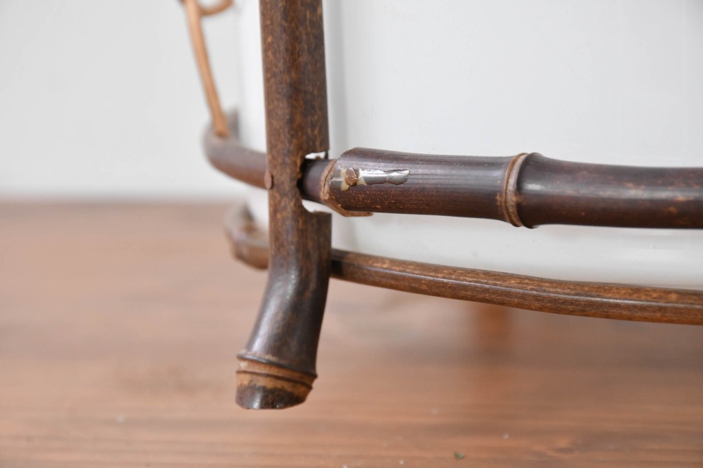 昭和初期から昭和中期にかけて作られた、和の趣あふれる竹飾り付きの電笠です。