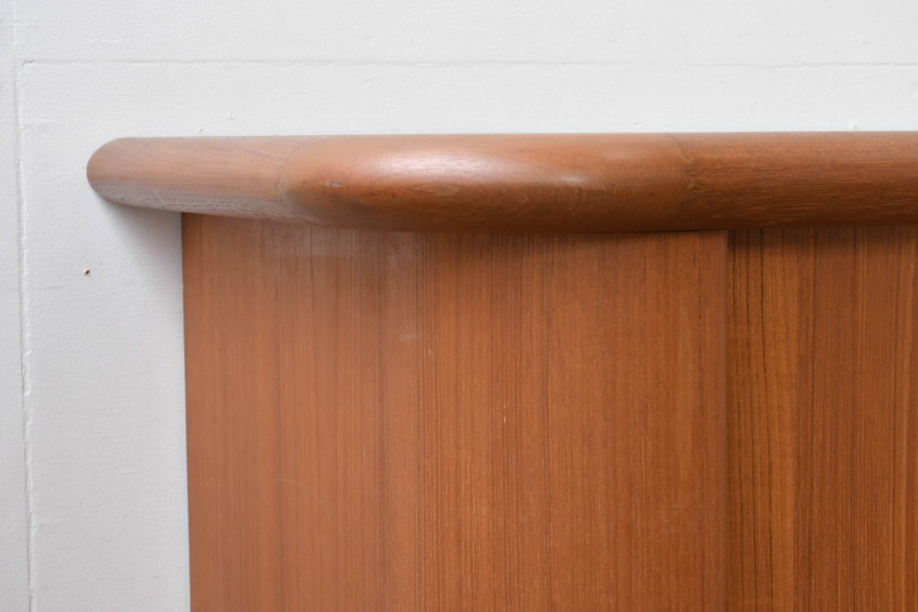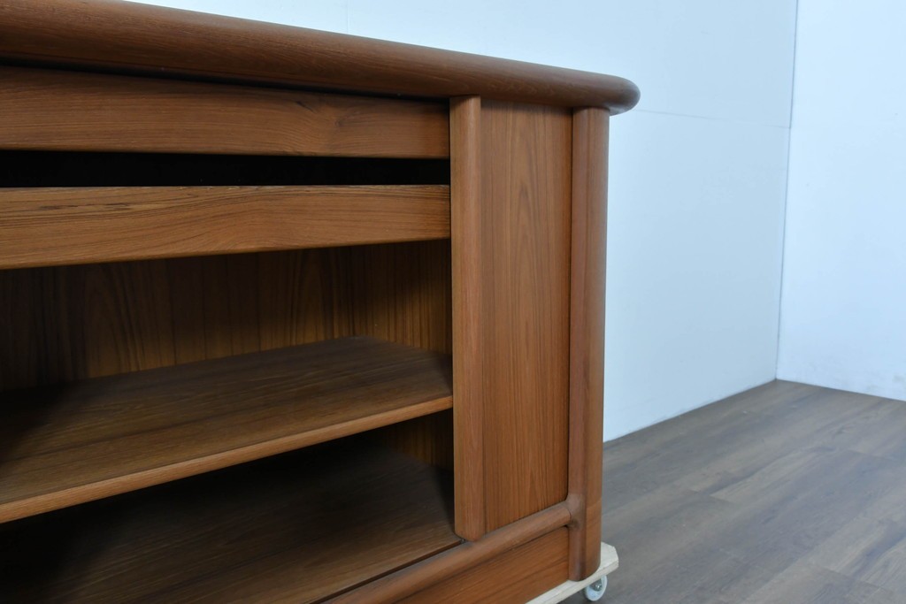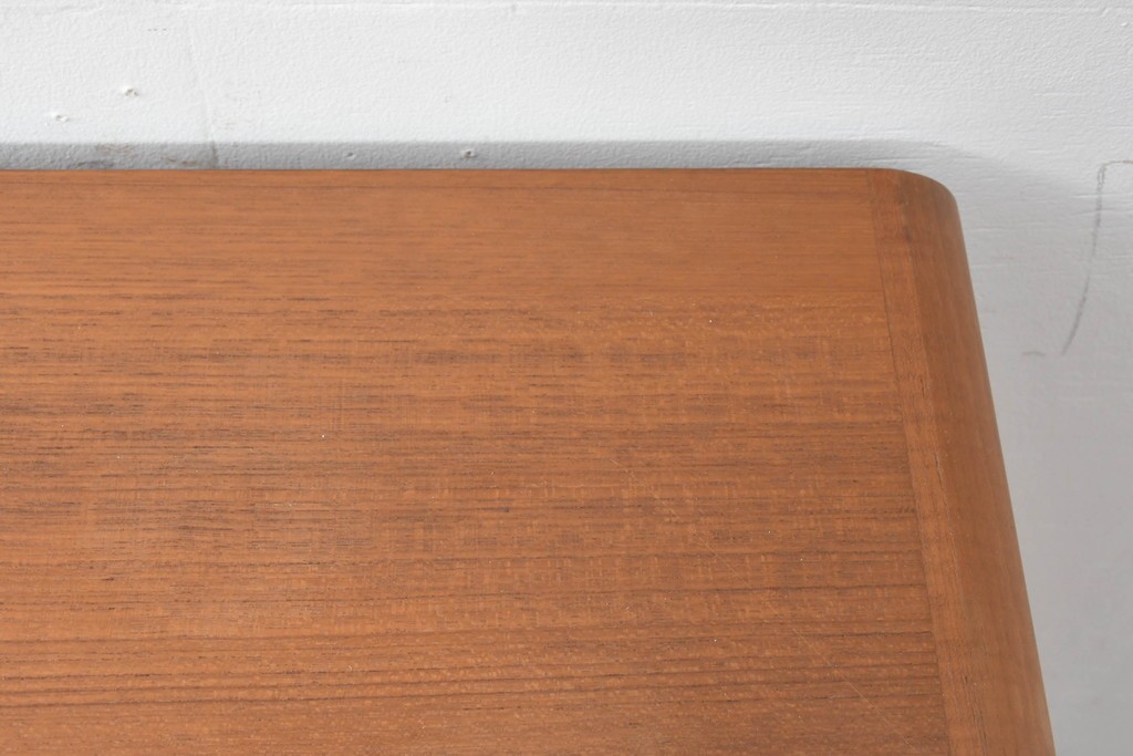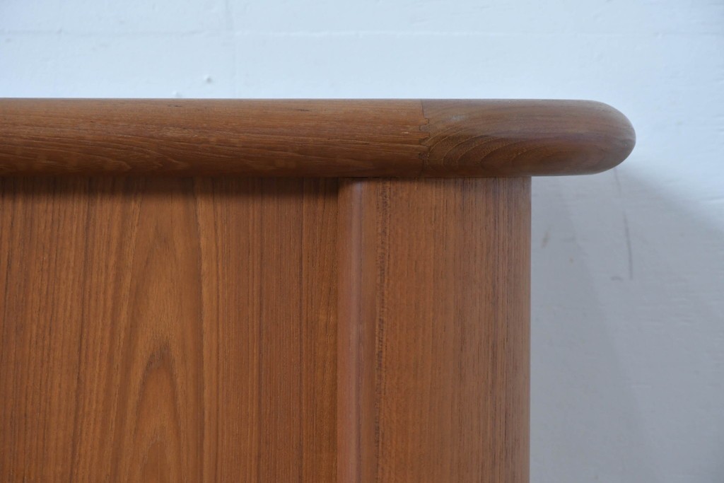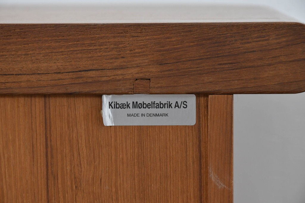 デンマークの家具工房、キーベック(キベック)社が手掛けた一台で、北欧家具らしい温かみのあるチーク材が用いられています。木目の細やかな揺らぎが美しく、天板や側板に至るまで滑らかに仕上げられ、素材の質感をより引き立てています。
