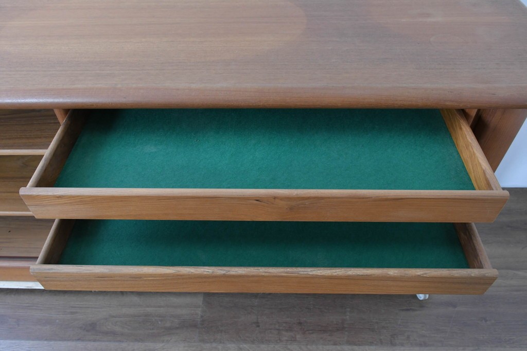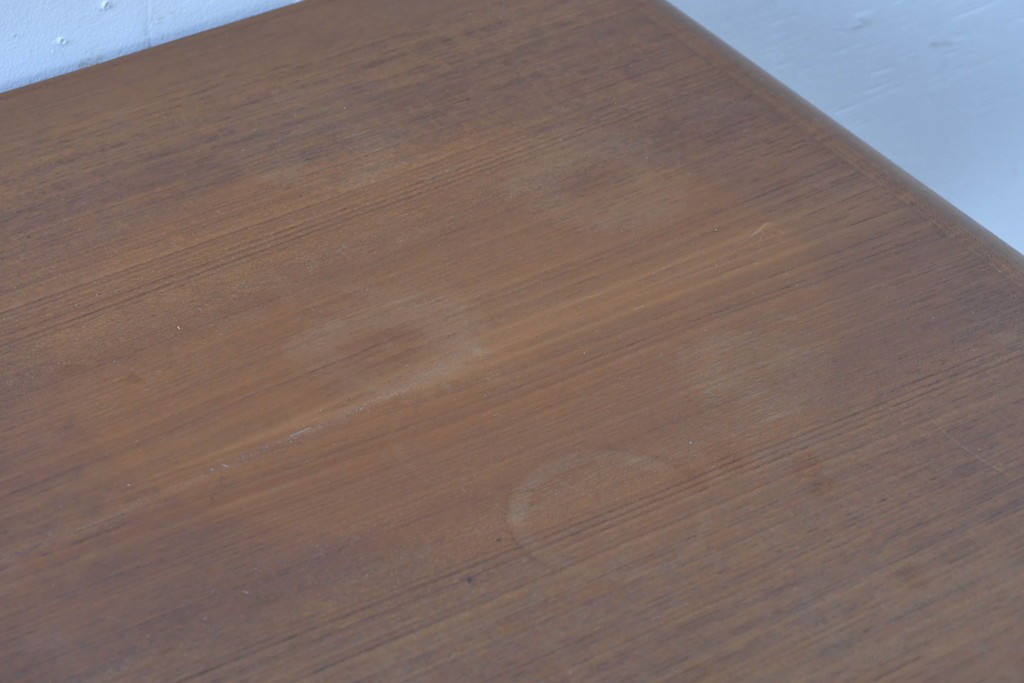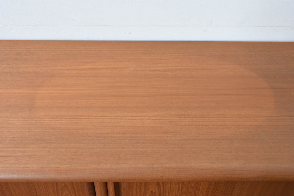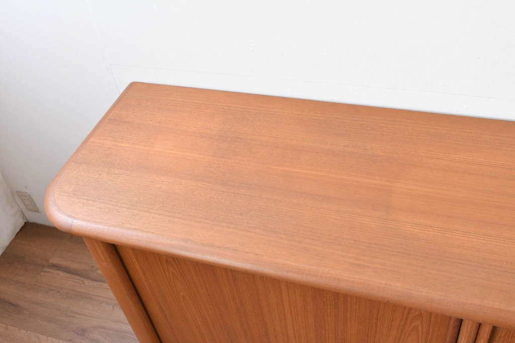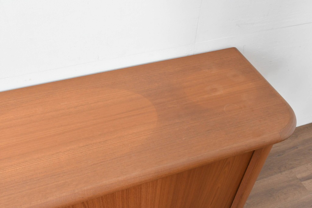 デンマークの家具工房、キーベック(キベック)社が手掛けた一台で、北欧家具らしい温かみのあるチーク材が用いられています。木目の細やかな揺らぎが美しく、天板や側板に至るまで滑らかに仕上げられ、素材の質感をより引き立てています。
