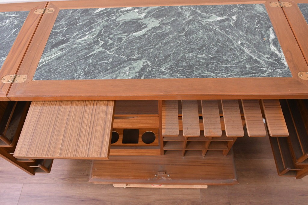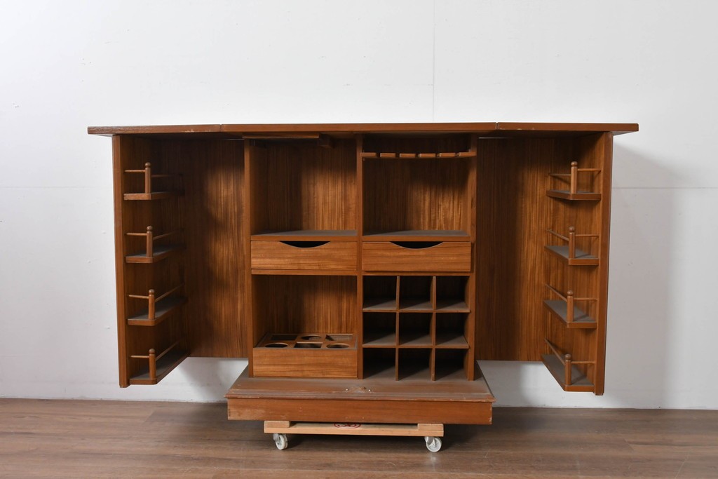 中古 ヨーロッパ高級輸入家具 上手物 チーク材 ワインラックに活躍!クラシカルな佇まいのサーバー (R-085217)