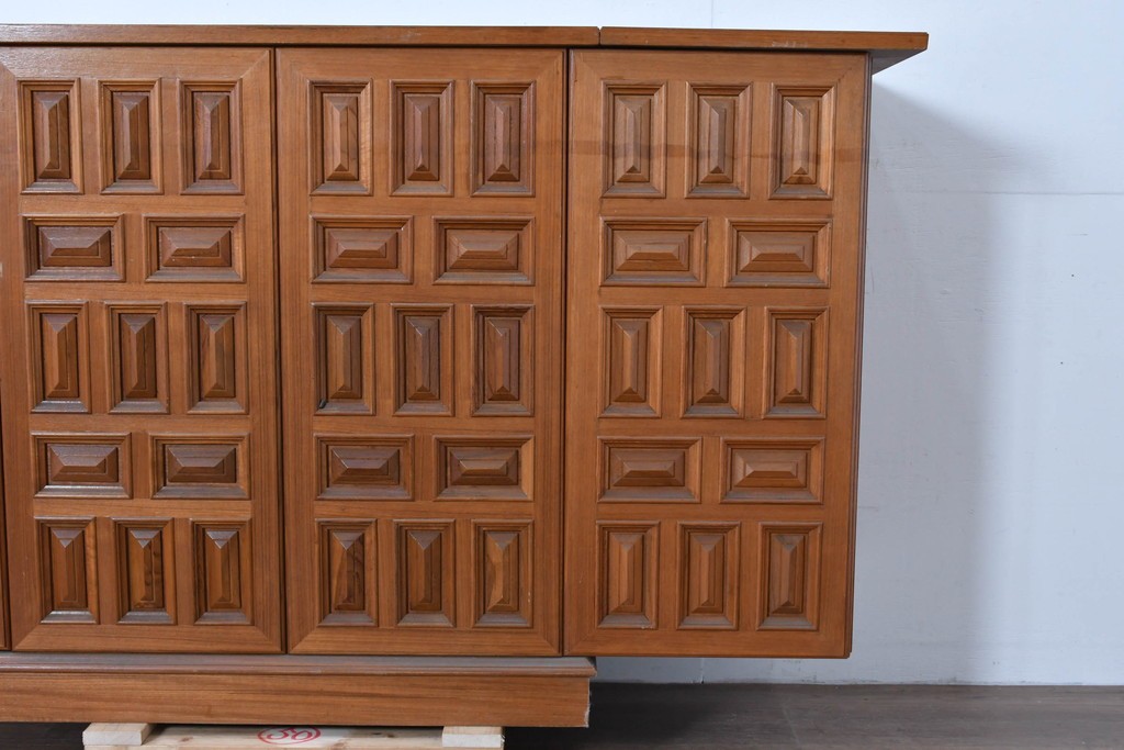 ラフジュ工房> キャビネット・戸棚> サイドボード > 中古 ヨーロッパ高級輸入家具 上手物 チーク材 ワインラックに活躍!クラシカルな佇まいのサーバー (R-085217)