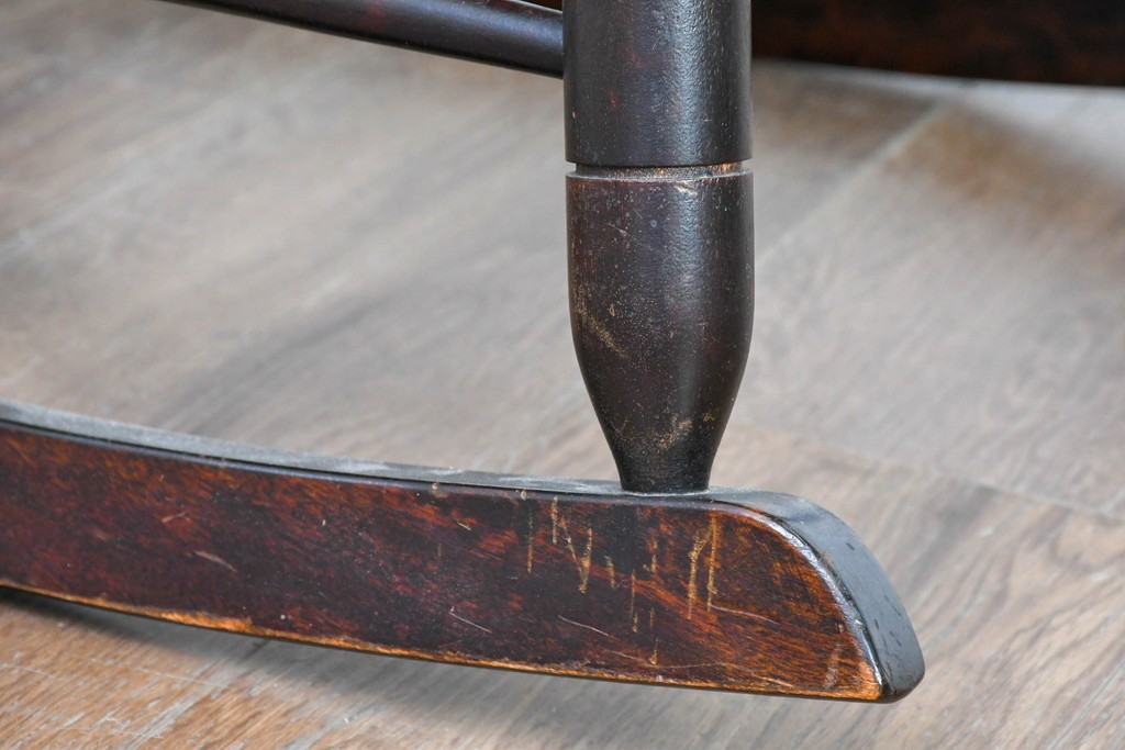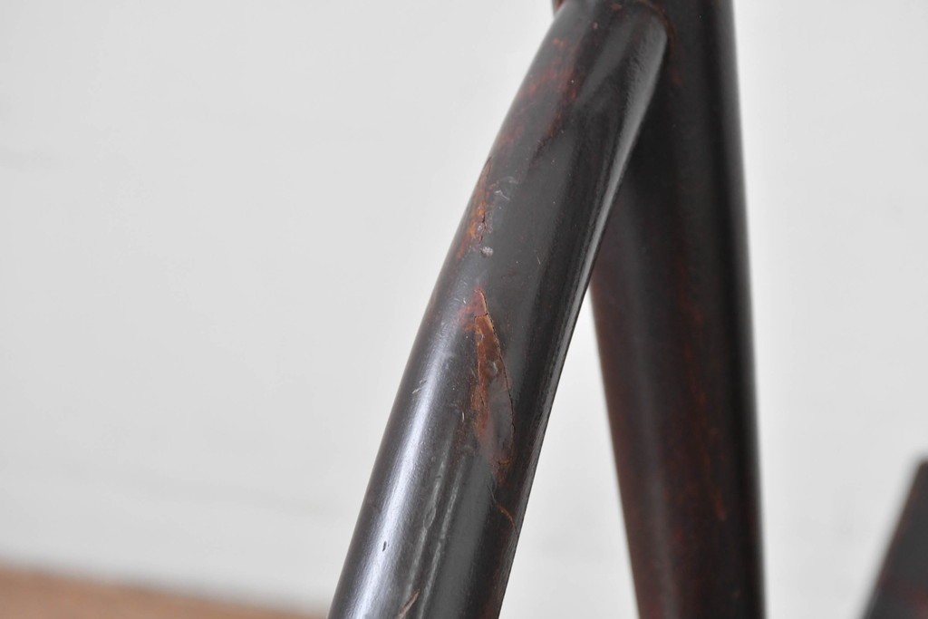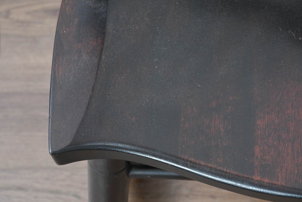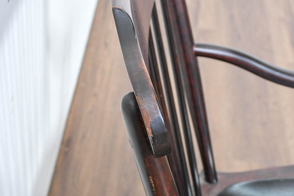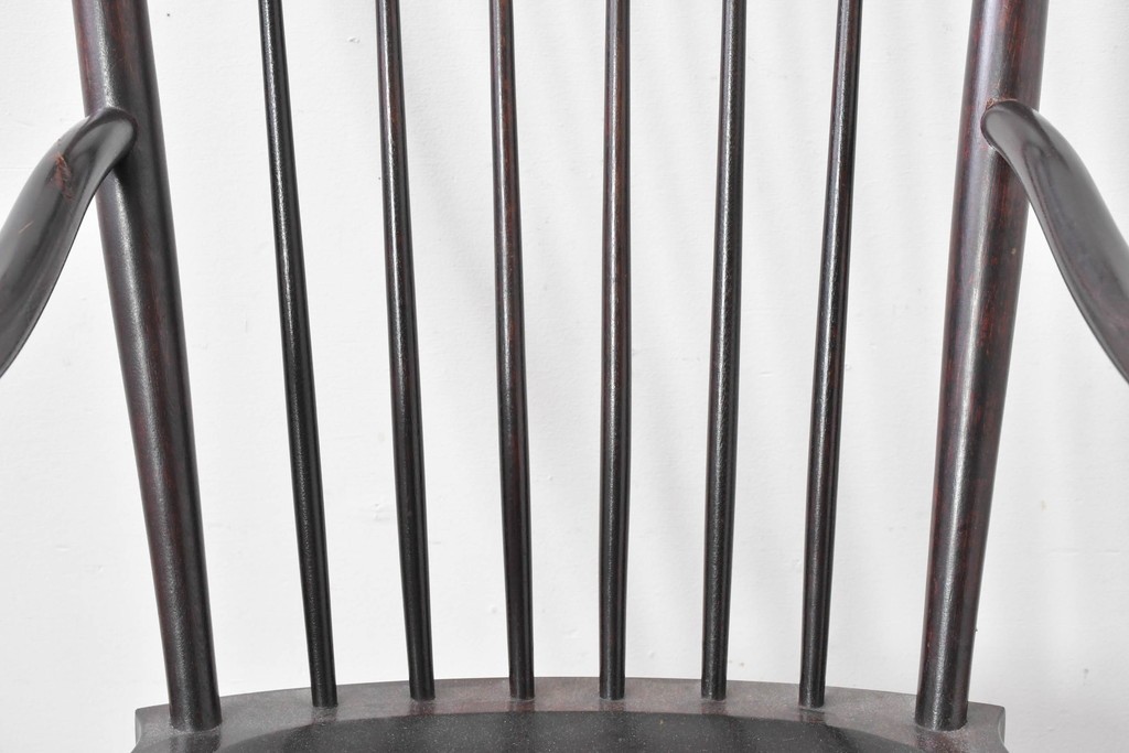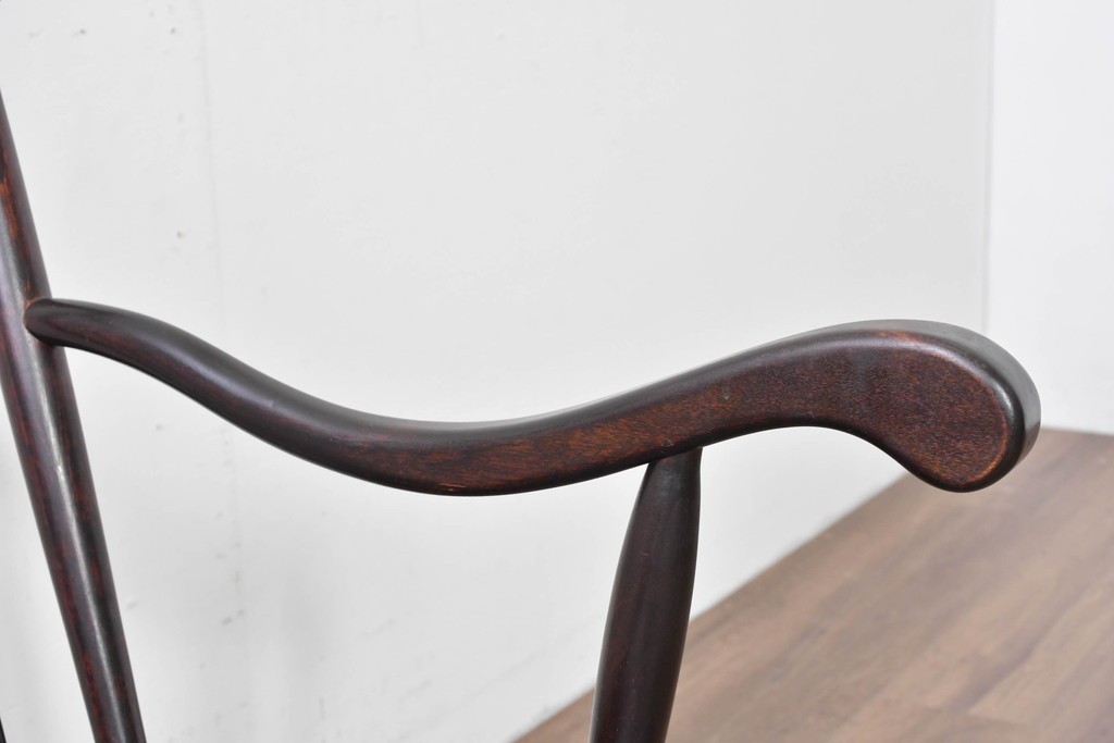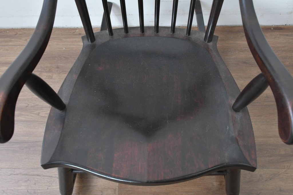 日本の伝統家具ブランド「松本民芸家具」による51B型ロッキングチェアです。堅牢な木材を用い、手仕事で仕上げられた美しい曲線が魅力。背もたれからアームにかけての流れるようなラインや、深みのある色合いが上質な空間を演出します。心地よい揺れと安定感のある座り心地で、リラックスシーンにぴったりの一脚です。