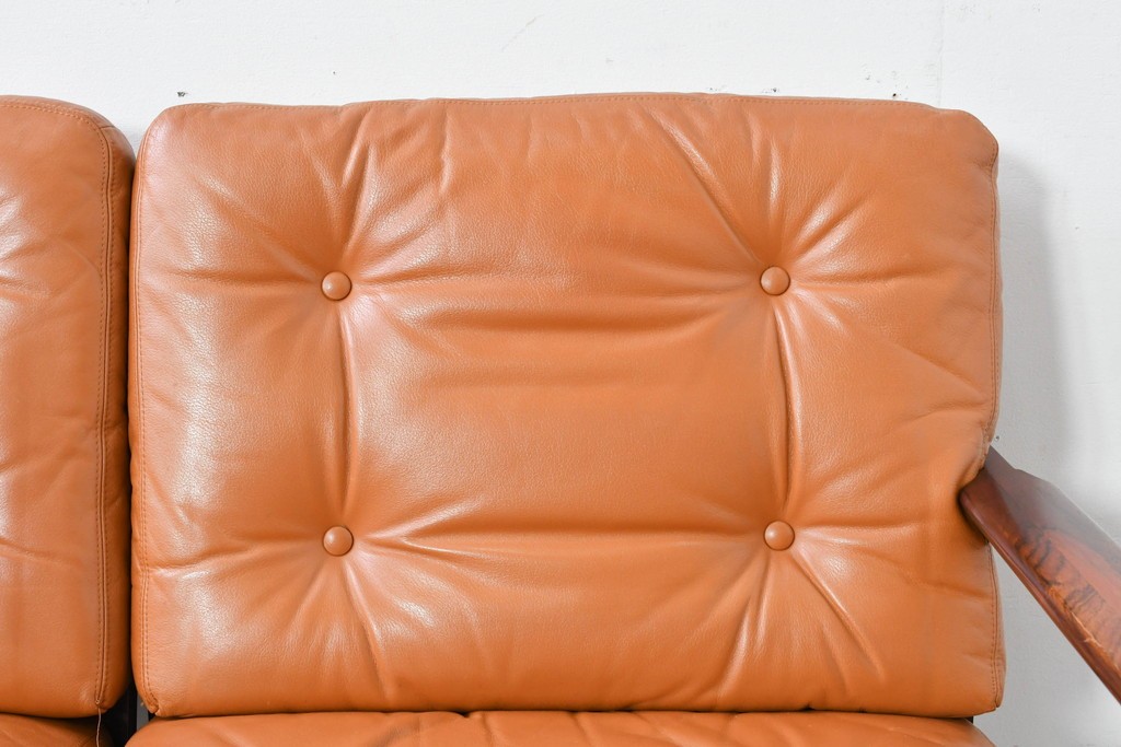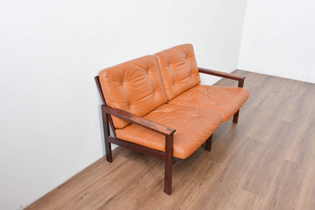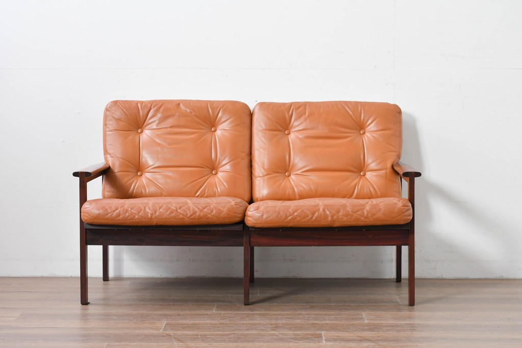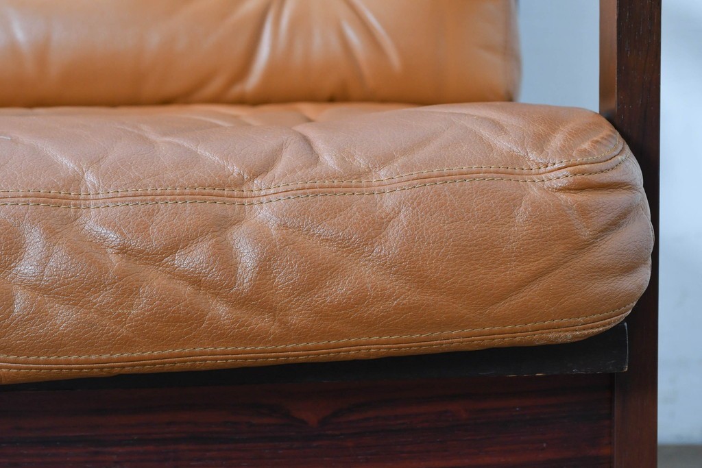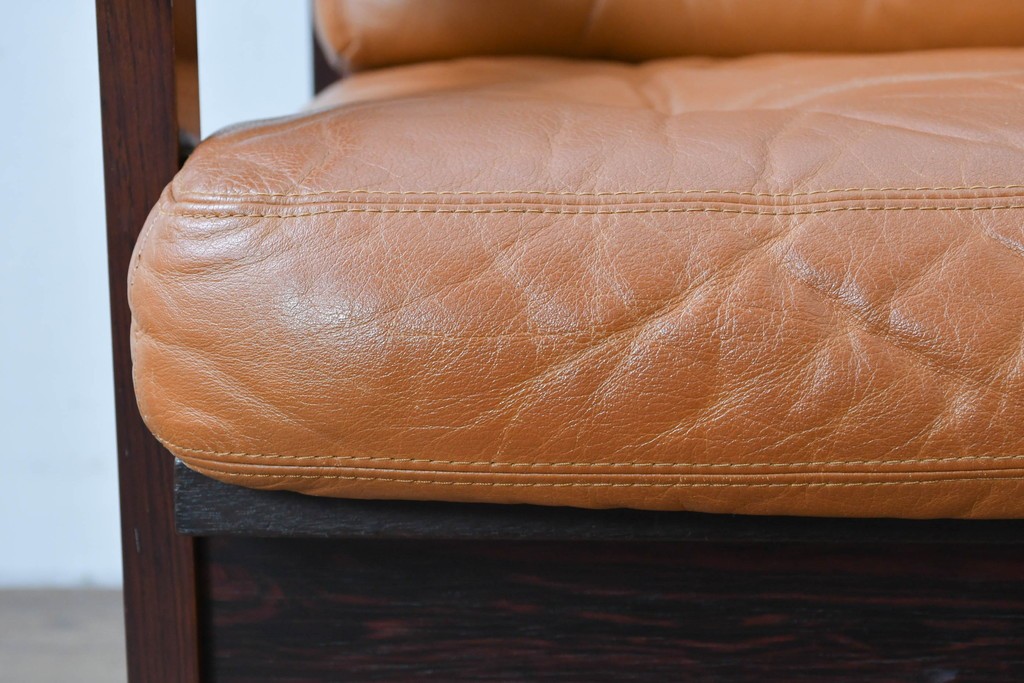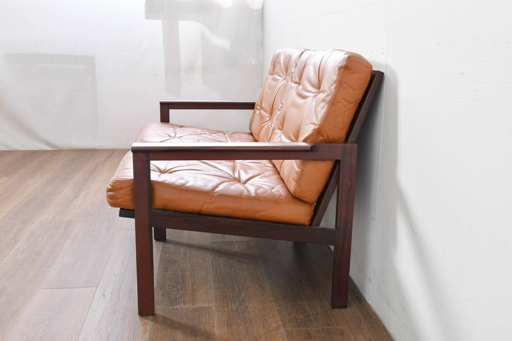 デザイナー、イルム・ヴィッケルソによる端正なシルエットが際立つ一台です。シャープなフレームとレザークッションの対比が美しく、シンプルでありながら空間を上質にまとめる存在感があります。北欧モダンらしい軽やかさのある落ち着いた佇まいが魅力です。