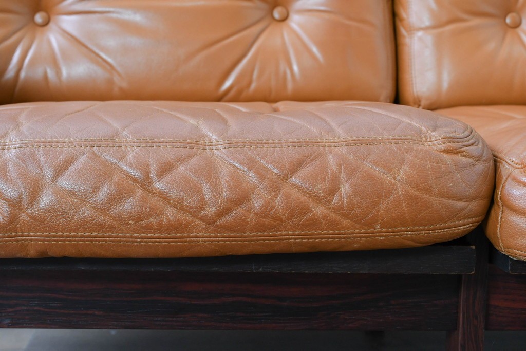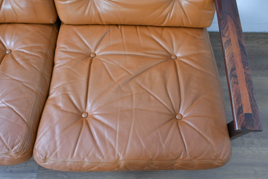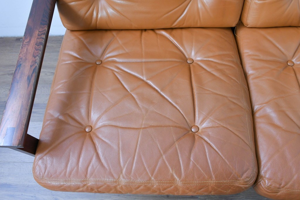 クッションには本革が用いられており、経年変化を味わいとして長く楽しむことができます。ベーシックなボタン留めの意匠はどんな空間にも馴染み、こだわりのインテリアを邪魔しません。くつろぎの時間をゆったりと支える、実用性と美観を兼ね備えた二人掛けソファです。
