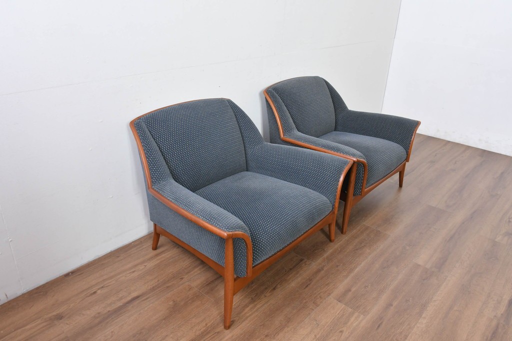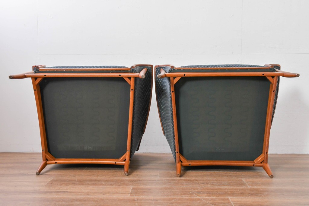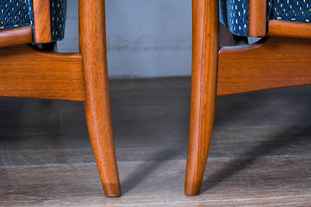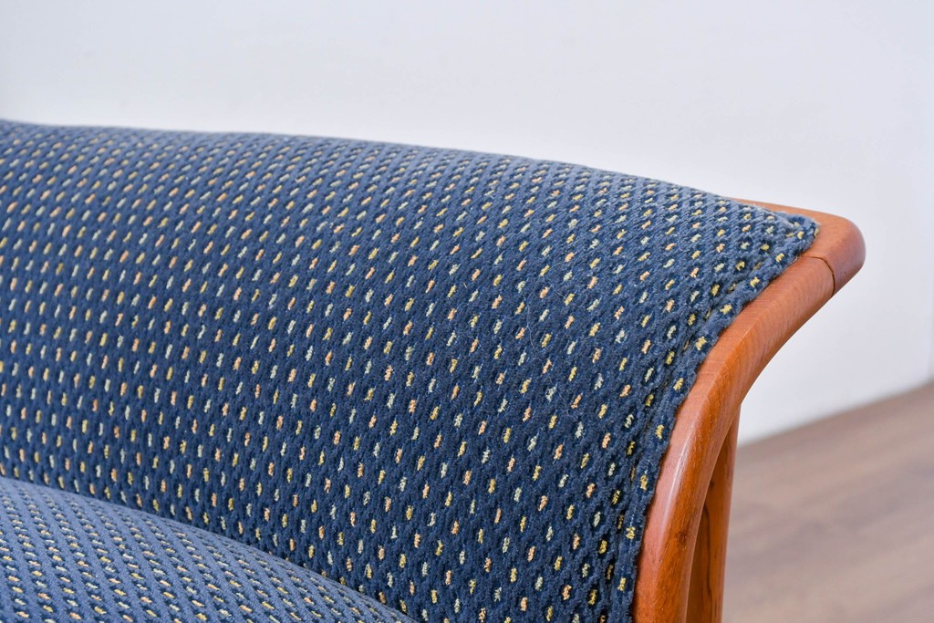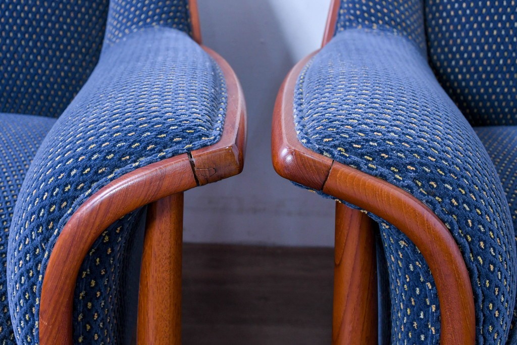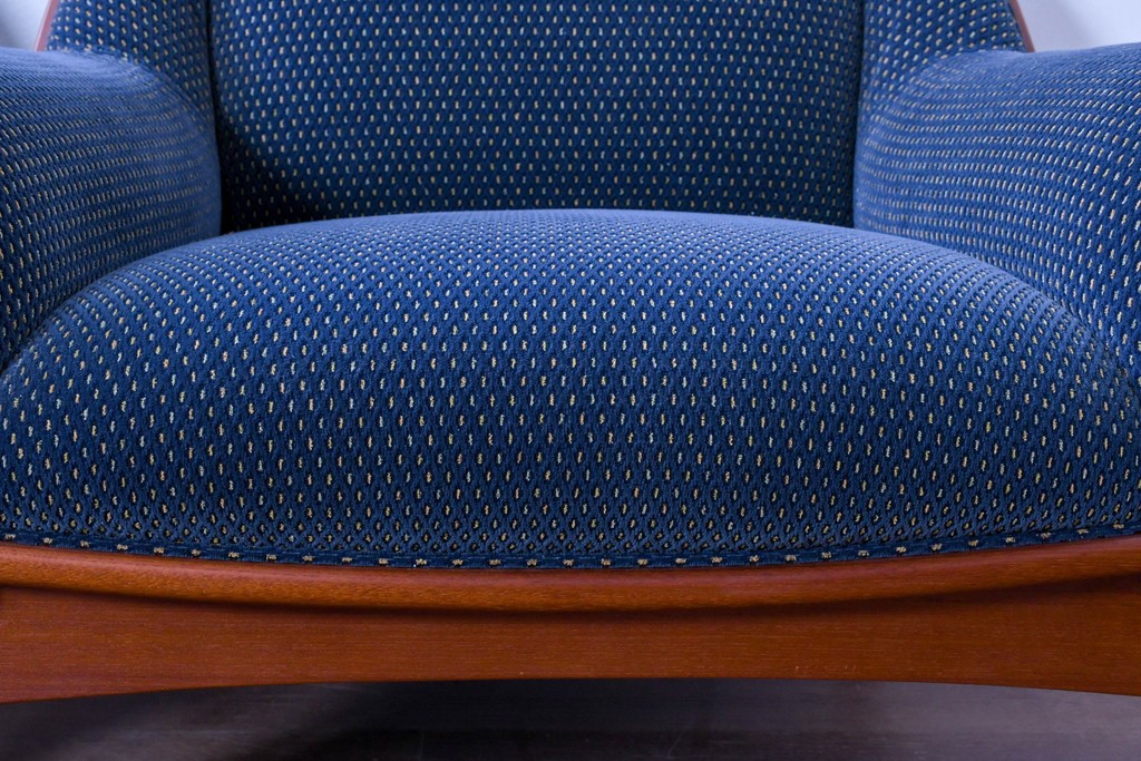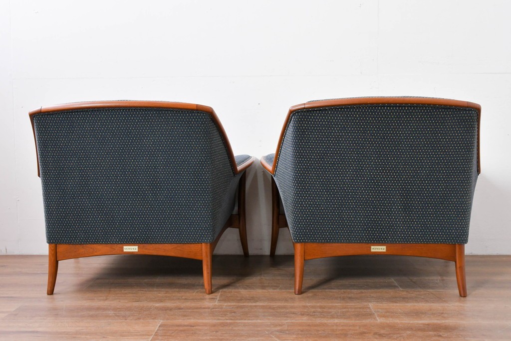日本を代表する高級家具ブランド、モリシゲ(MORISHIGE)によるレジェシリーズの1Pソファ2脚セットです。優雅な曲線を描く木製フレームと、深みのあるブルーの張り地の組み合わせが上品な印象です。しっかりとした座り心地と包み込まれるような背もたれで、快適なリラックスタイムを演出します。モリシゲらしい丁寧な仕立てと高級感を感じられる一品です。