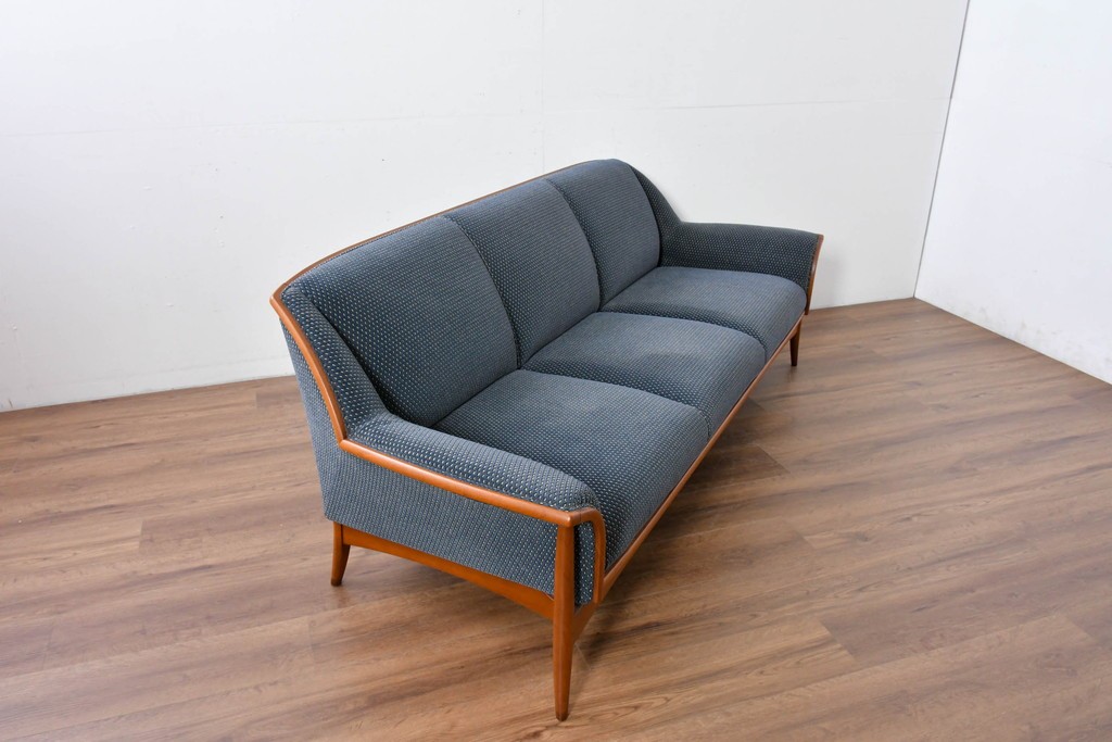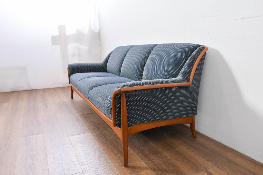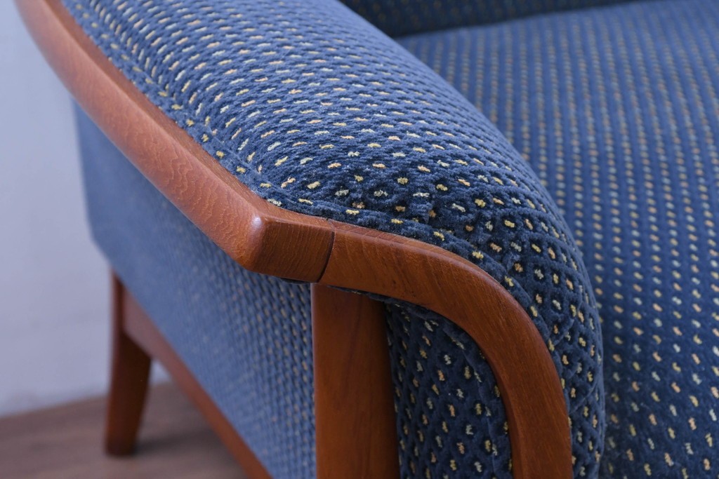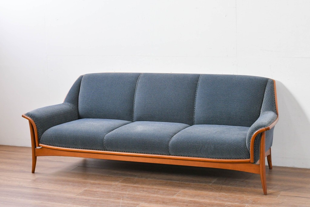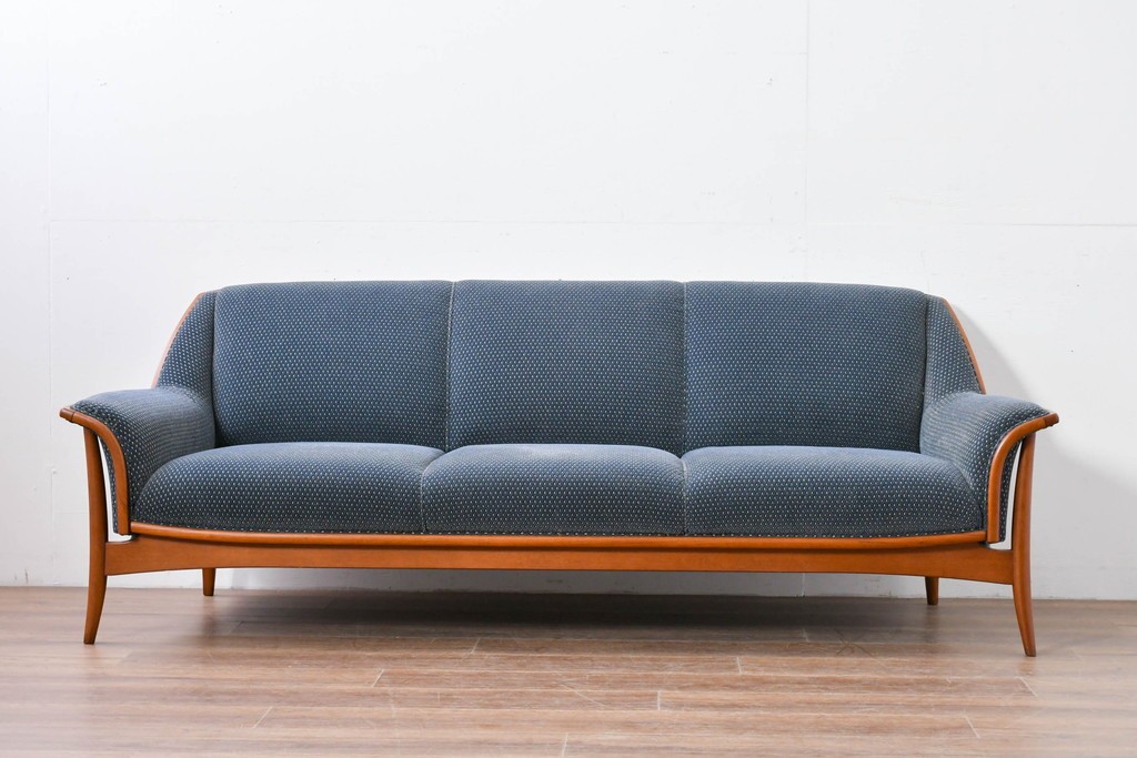 日本を代表する高級家具ブランド、モリシゲ(MORISHIGE)によるレジェシリーズの3Pソファです。優雅な曲線を描く木製フレームと、深みのあるブルーの張り地の組み合わせが上品な印象です。しっかりとした座り心地と包み込まれるような背もたれで、快適なリラックスタイムを演出します。モリシゲらしい丁寧な仕立てと高級感を感じられる一品です。