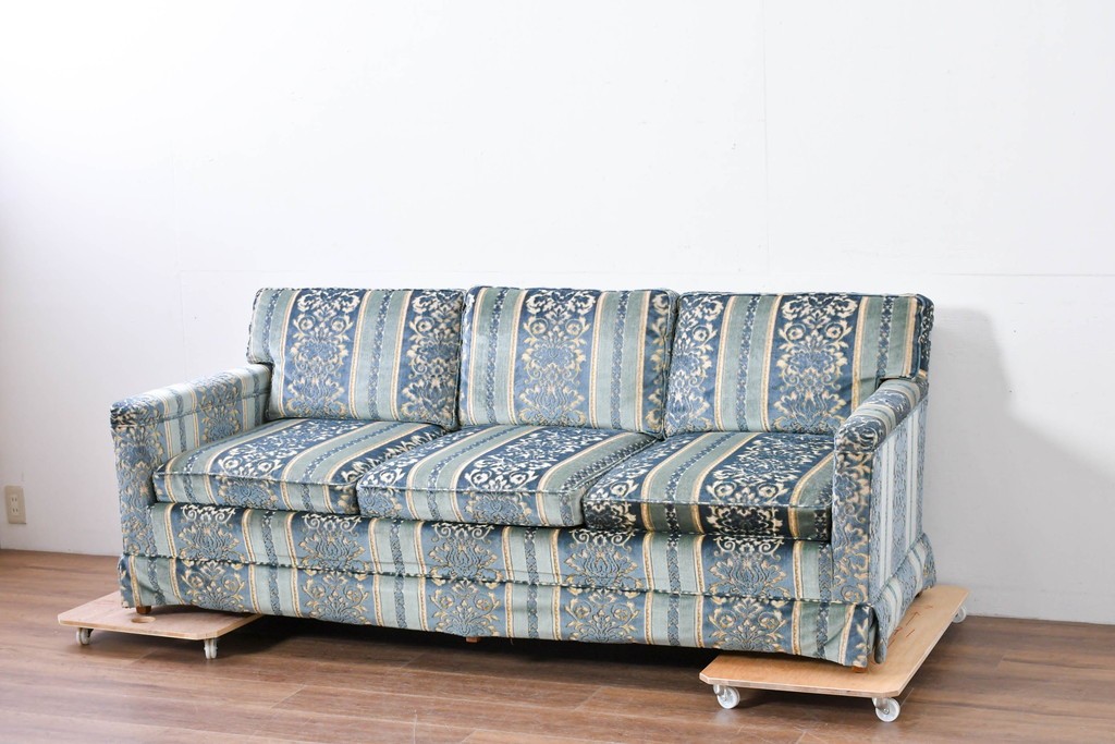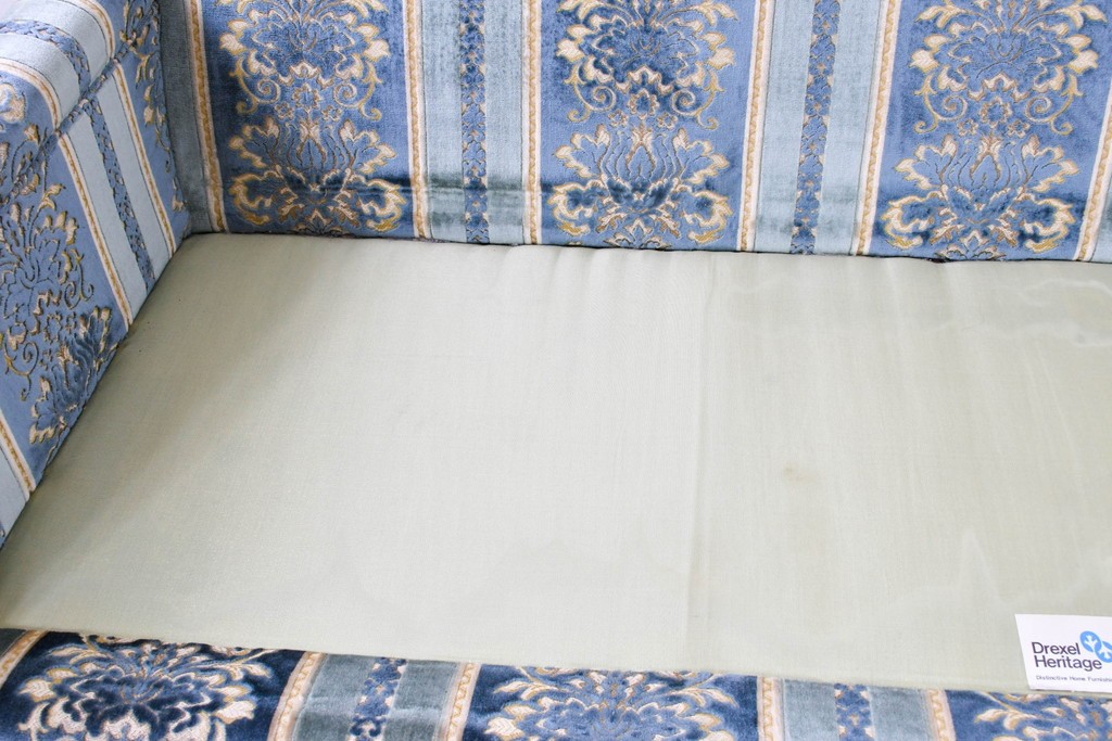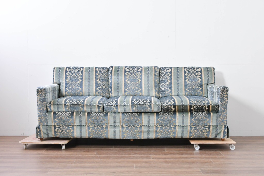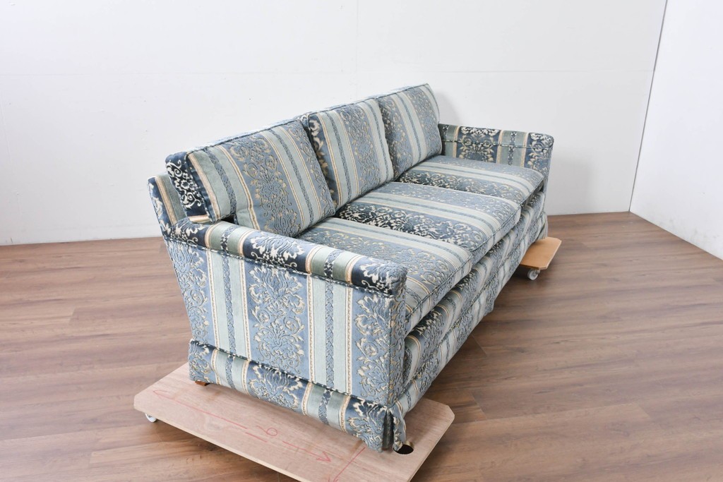 DREXEL HERITAGE(ドレクセルヘリテイジ)製の三人掛けソファです。アメリカ家具の中でも評価の高いブランドで、高級感のあるデザインと丁寧な造りが魅力です。直線的なシルエットが空間に洗練された印象を与えます。