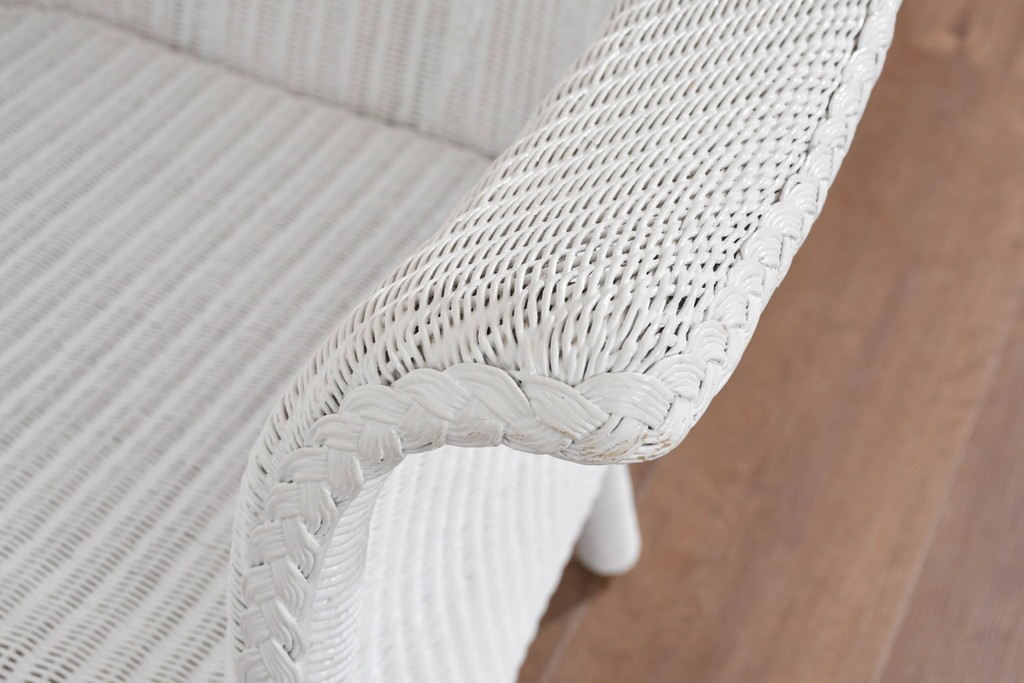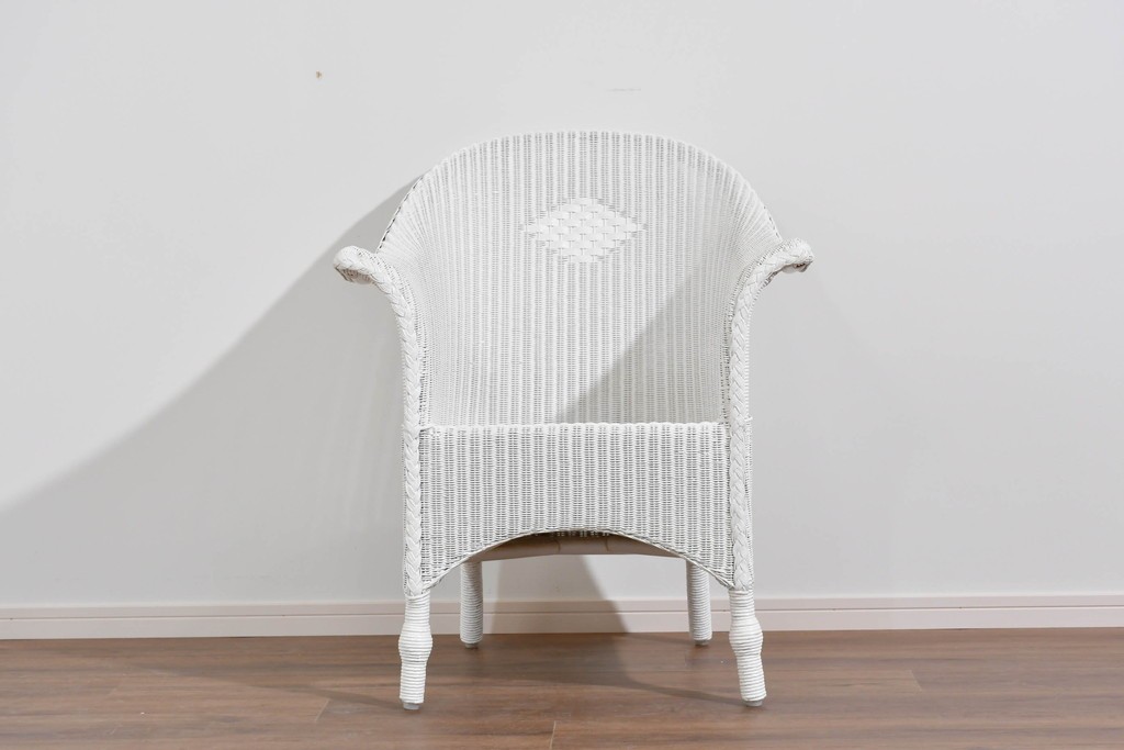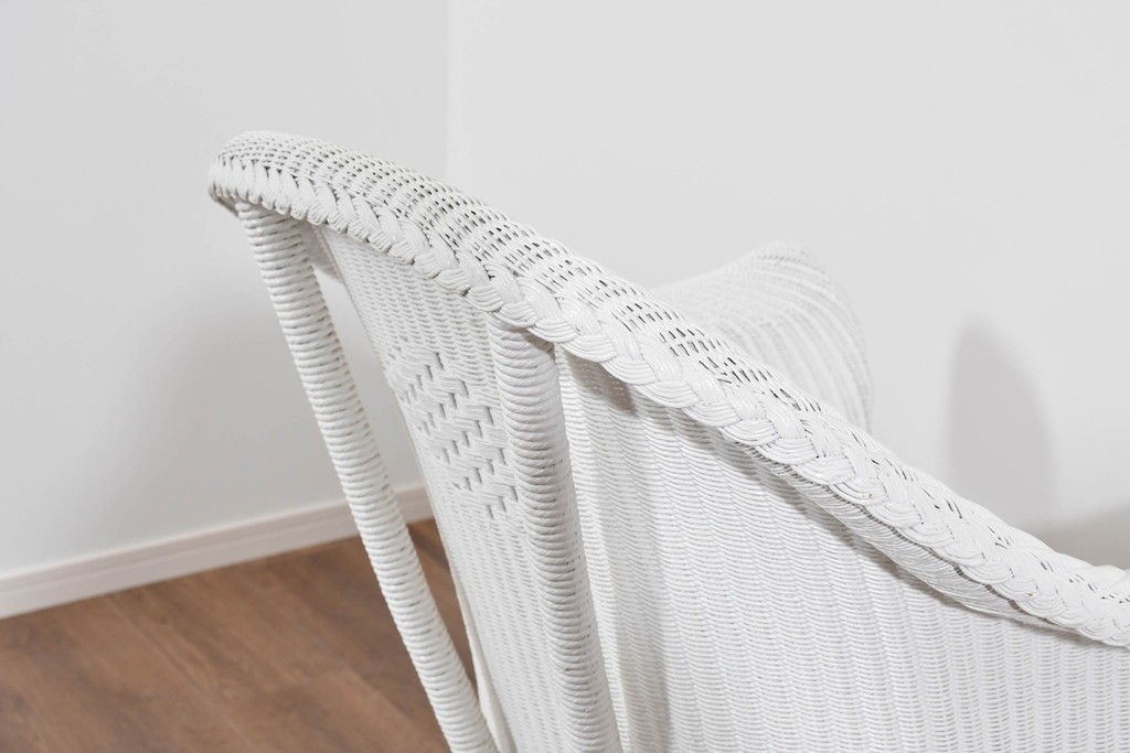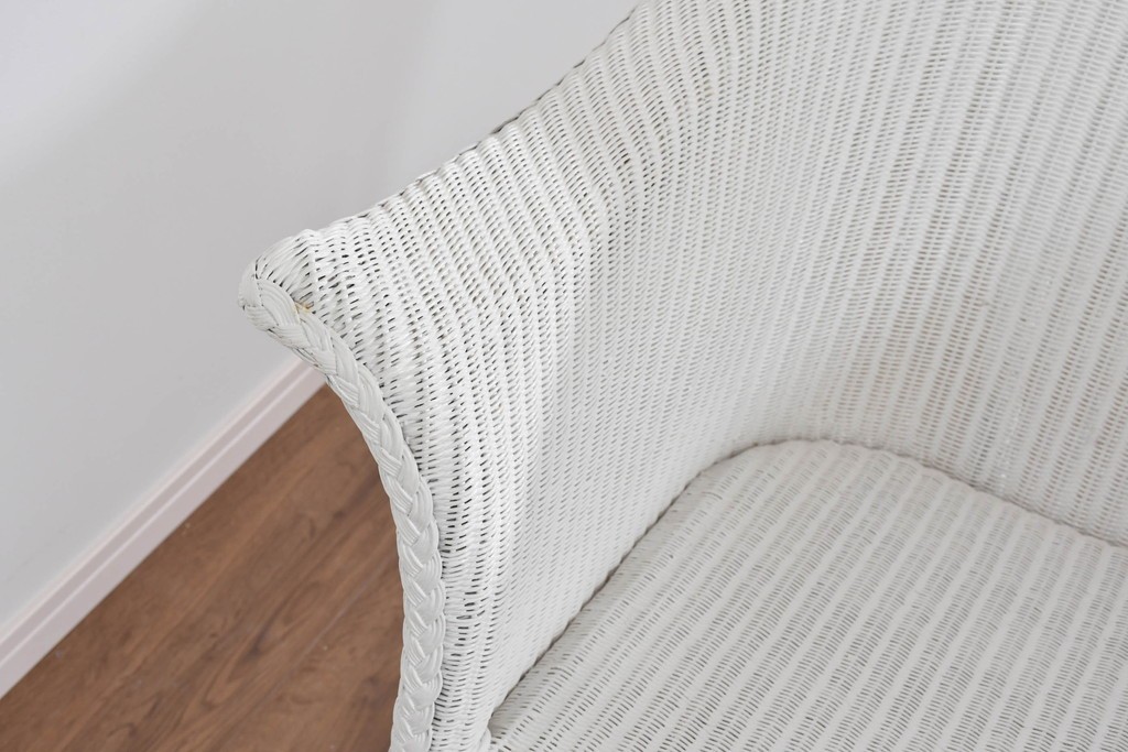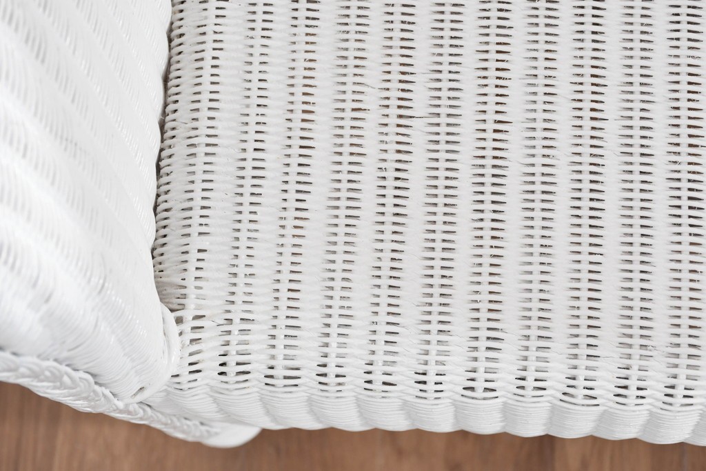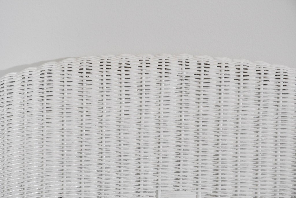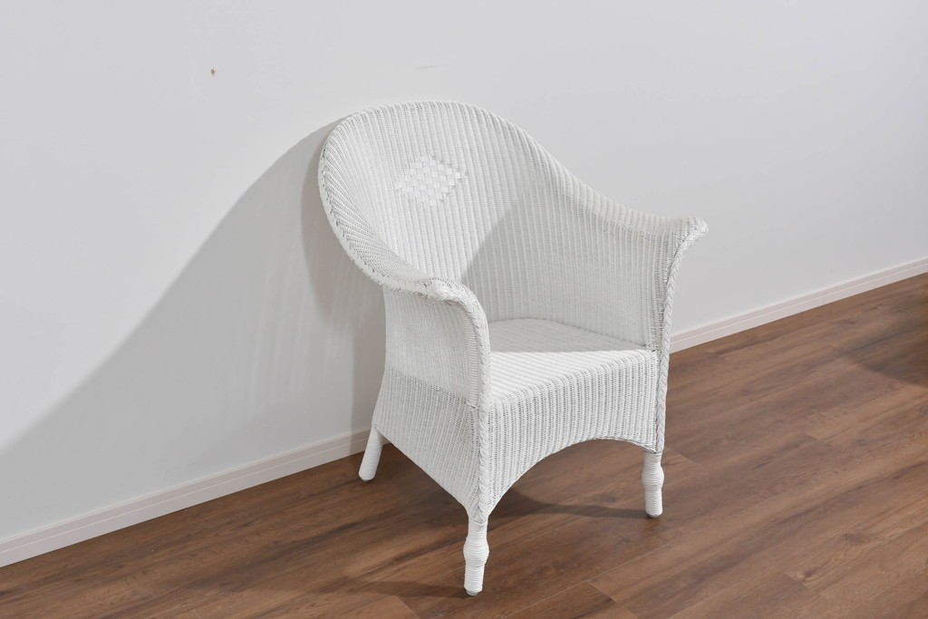 背もたれの編み模様が上品なアクセントになっているロイドルームのアームチェアです。清潔感のある軽やかなホワイトカラーは空間を明るく演出します。均一で美しい編み目が生み出す滑らかな質感は、ロイドルーム家具が長年愛され続ける理由のひとつです。背から肘掛けへと流れるようなカーブと、クラシカルで優美な佇まいはリビングやサンルームにもぴったりの一脚です。