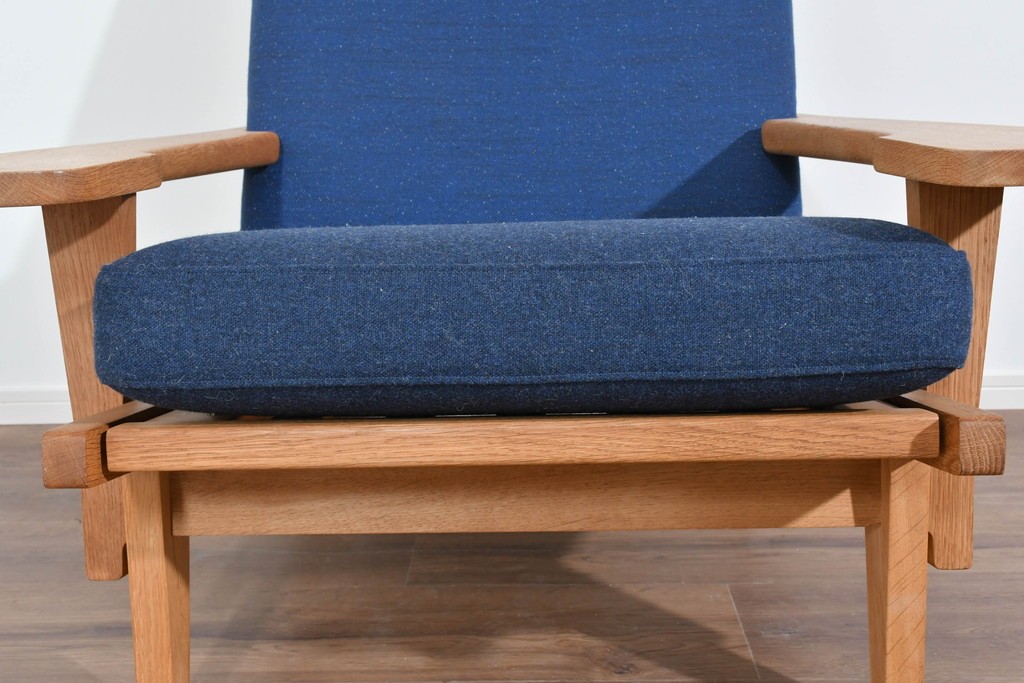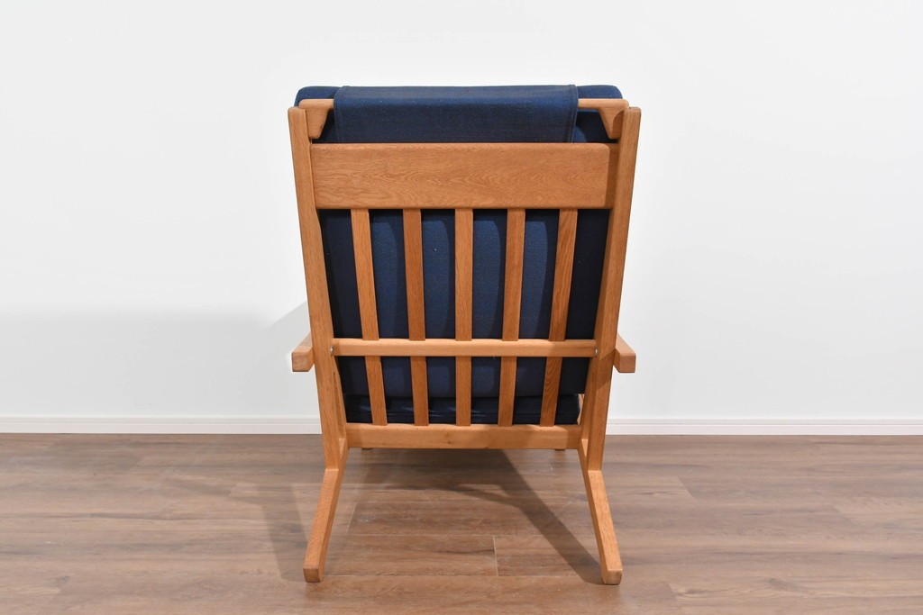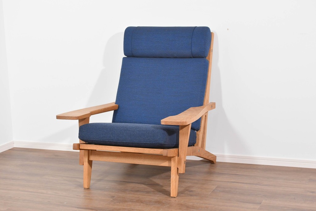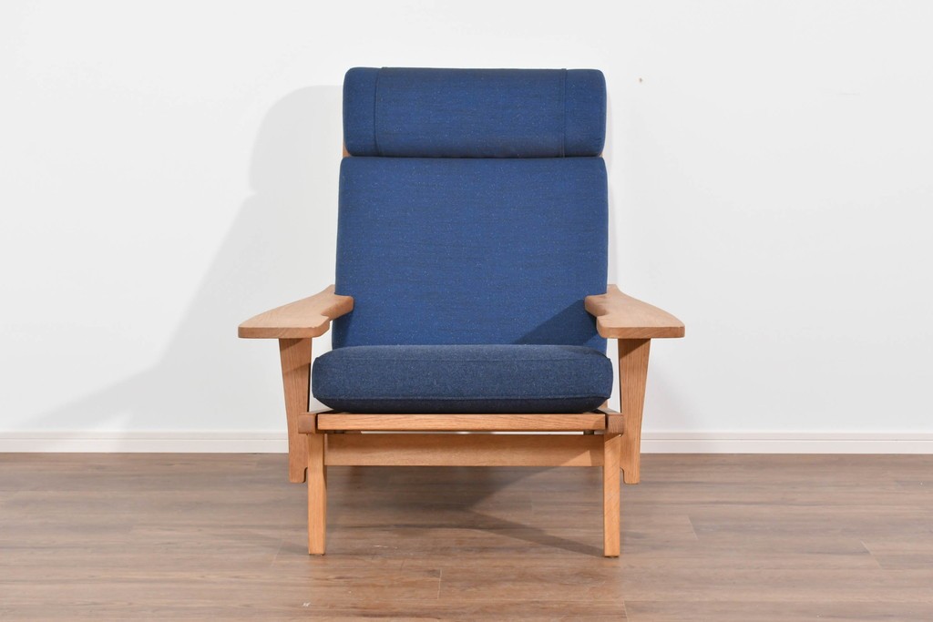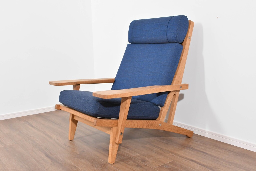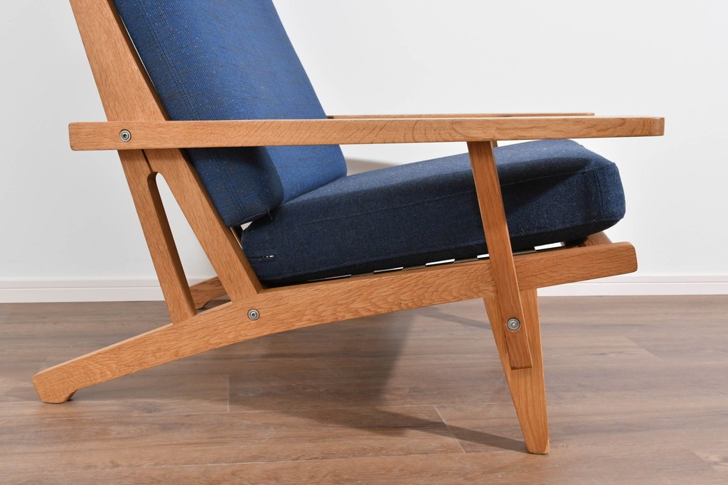 デンマークを代表する家具デザイナー、ハンス・J・ウェグナーによるGE375は、実用性と造形美を両立したイージーチェアとして知られています。背もたれの角度やアームの形状など、身体の動きに寄り添うようなプロポーションが特徴で、北欧家具らしい温かな佇まいが魅力です。