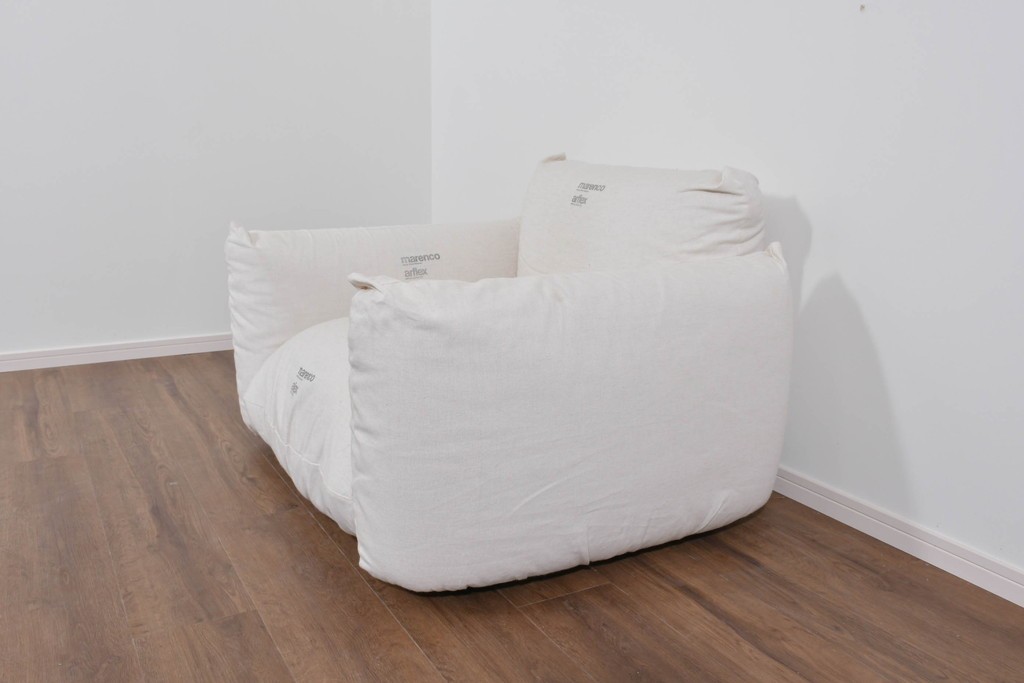 丸みを帯びたクッションを組み合わせた特徴的なフォルムは、デザイナー、マリオ・マレンコ氏による代表作として知られています。ふっくらとしたボリューム感が目を引き、座る人を優しく受け止めるような安心感のある佇まいが魅力です。リビングにひとつ置くだけでも存在感を放ち、ゆったりとした安らぎの空間を演出してくれます。