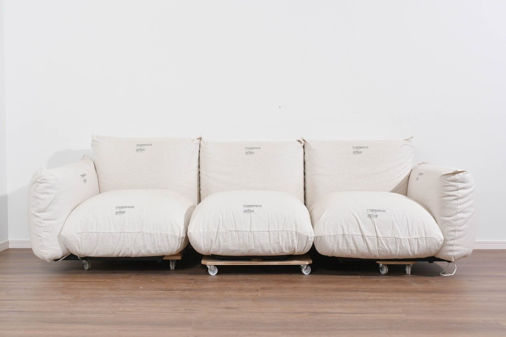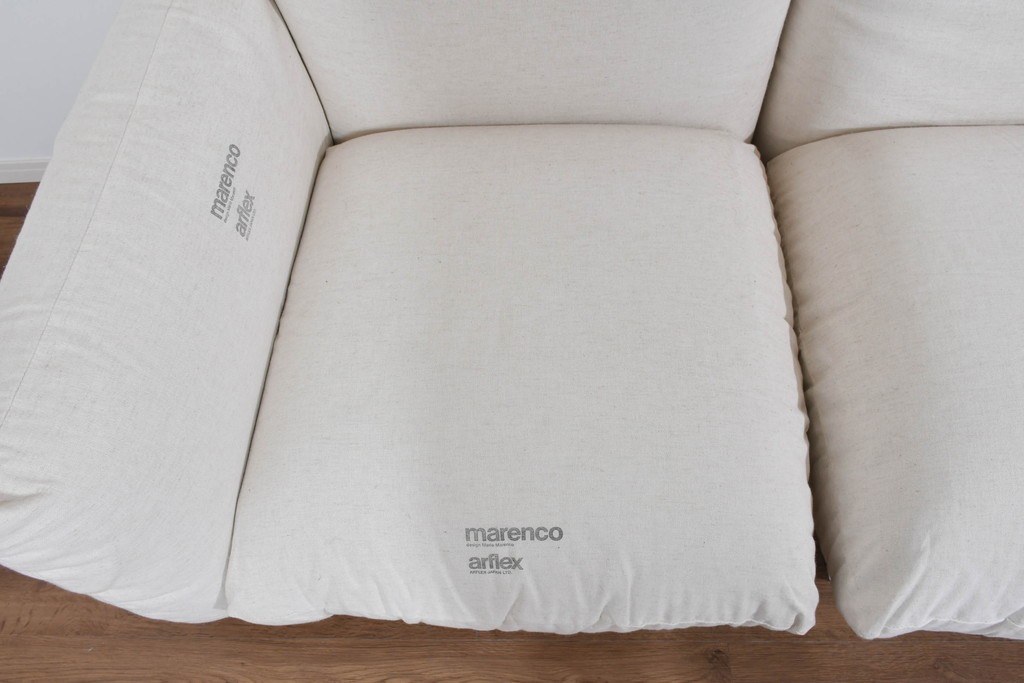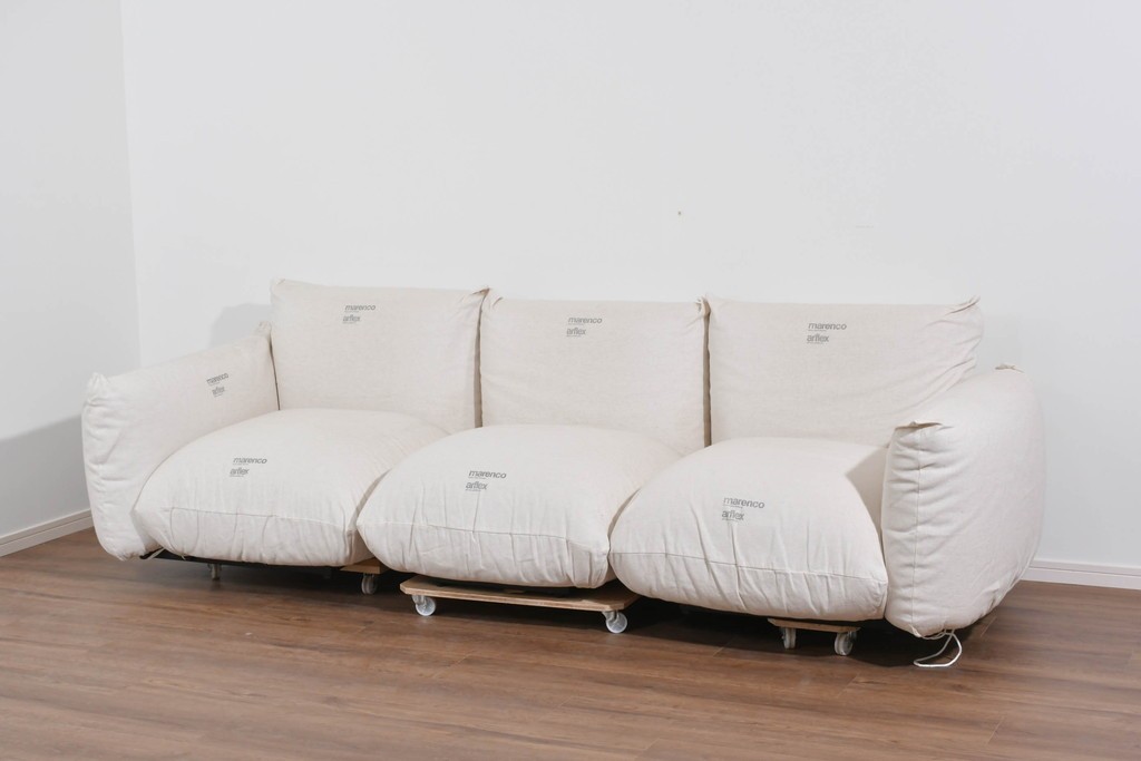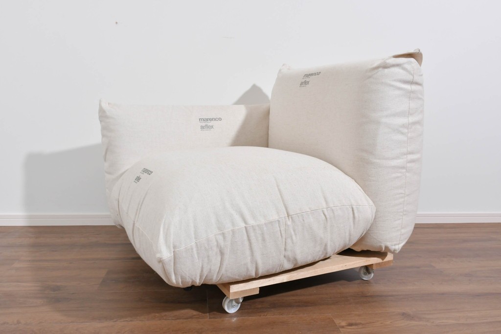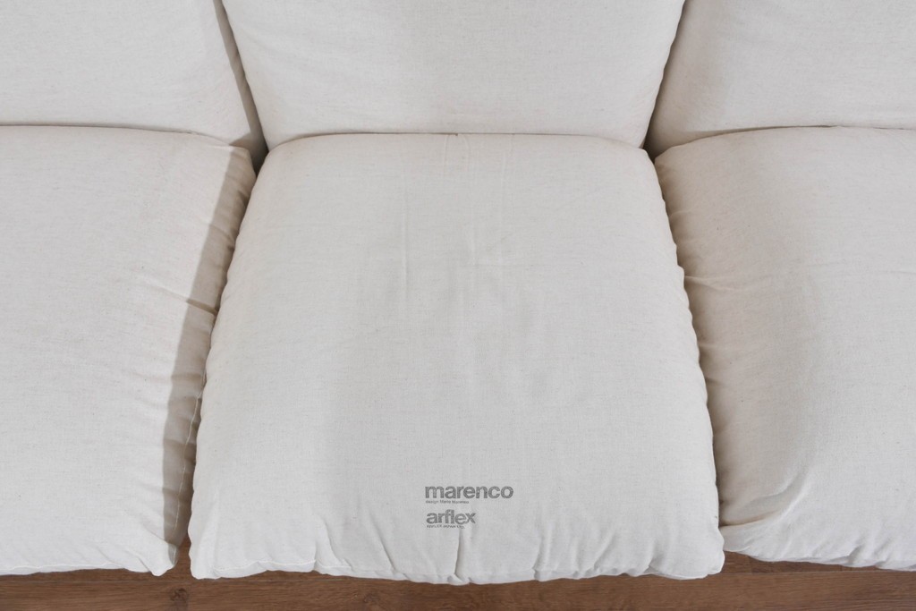 arflex(アルフレックス)を代表するモデル「MARENCO(マレンコ)」は、ふっくらとした独特のフォルムが生む存在感が印象的です。背面・座面・アームを大きなクッションとして構成したデザインは、1970年代に誕生して以来、多くのファンから愛され続けています。