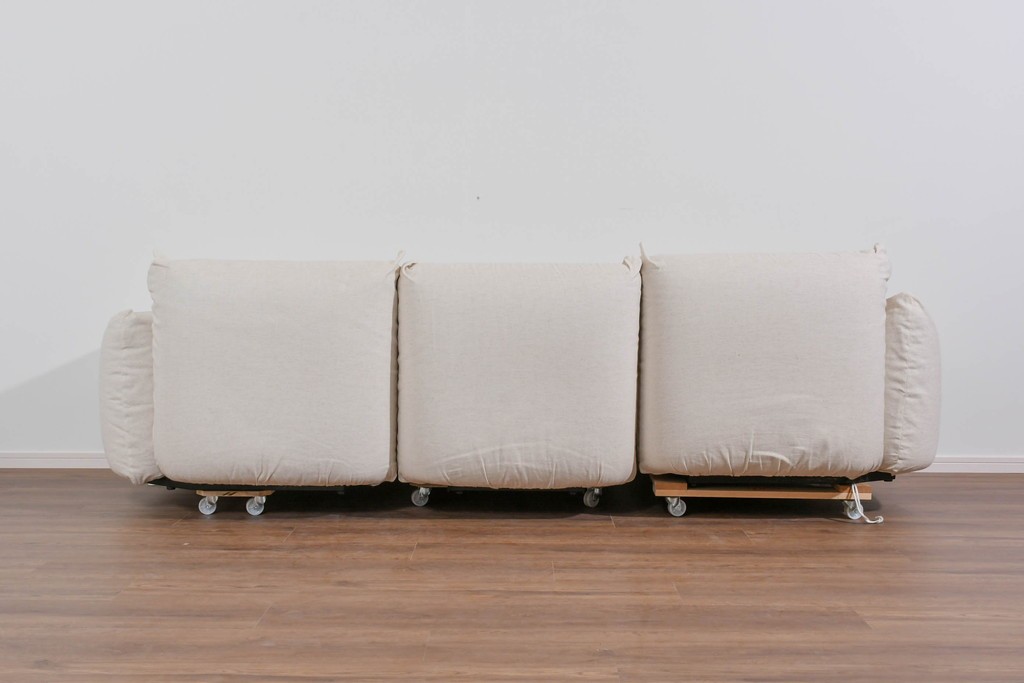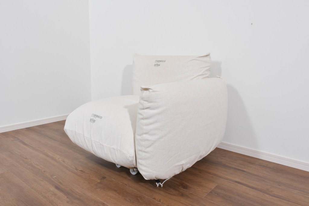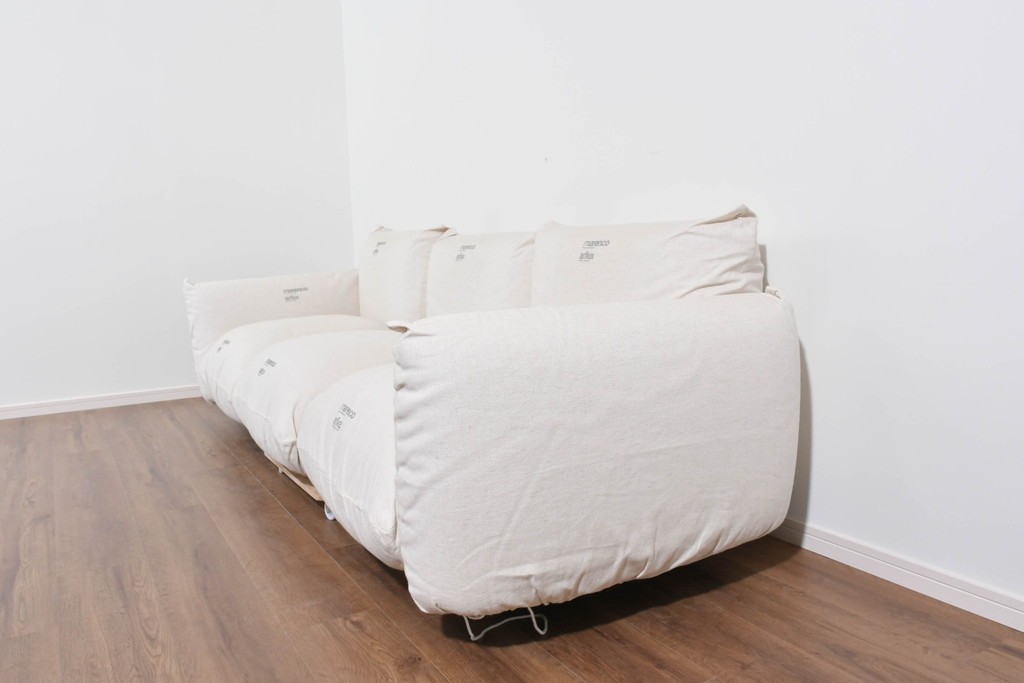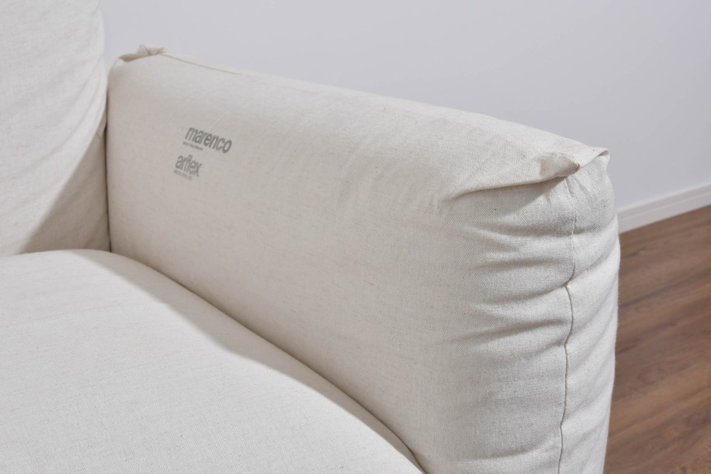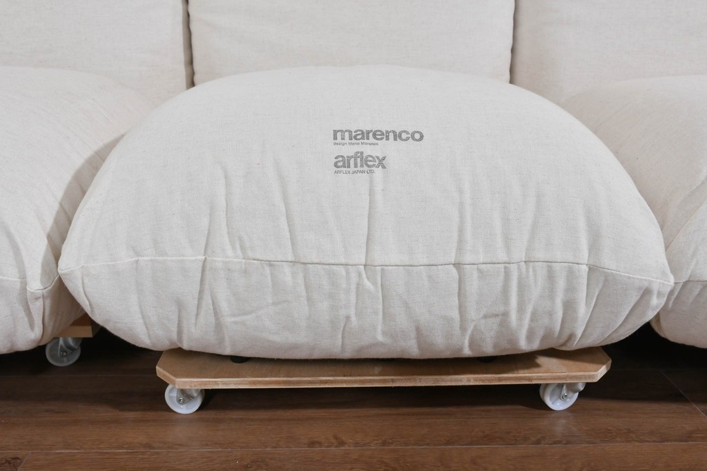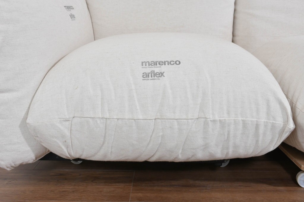 arflex(アルフレックス)を代表するモデル「MARENCO(マレンコ)」は、ふっくらとした独特のフォルムが生む存在感が印象的です。背面・座面・アームを大きなクッションとして構成したデザインは、1970年代に誕生して以来、多くのファンから愛され続けています。