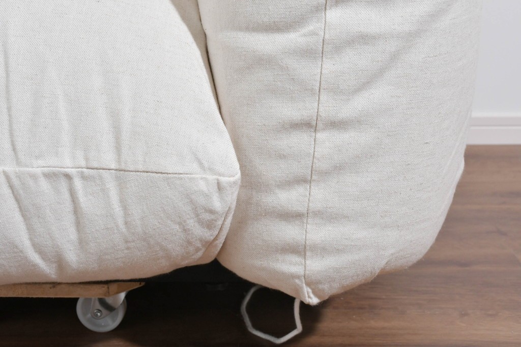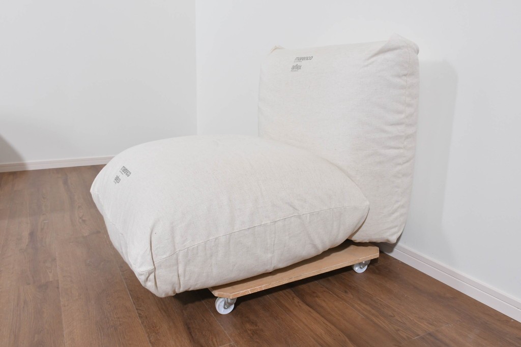 やわらかな生成り色のカバーは、涼しげでリラックスした印象を与えてくれます。布地の自然な風合いがマレンコの丸みあるフォルムとよく調和し、安らぎの空間づくりに最適です。シンプルながらも素材感が引き立ち、どんなスタイルの部屋にも合わせやすい点も魅力のひとつです。