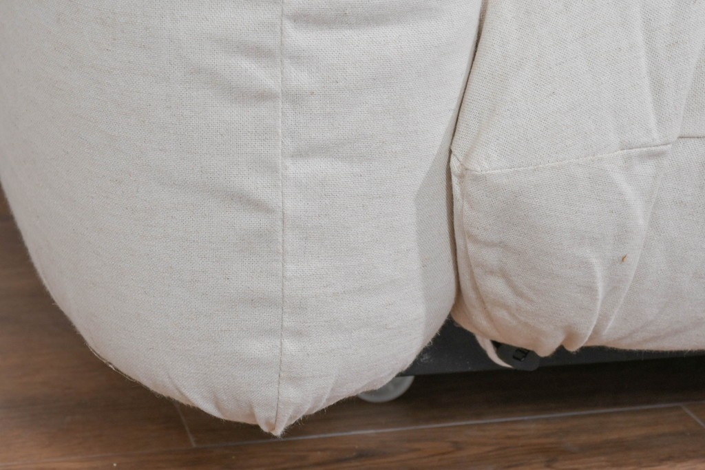 大きくふくらんだクッションが身体を優しく支え、ゆったりした座り心地を楽しめる構造です。背面クッションと座面クッションはどちらも厚みがあり、自然に身体を預けられる安心感があります。