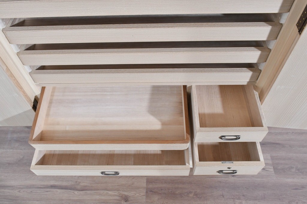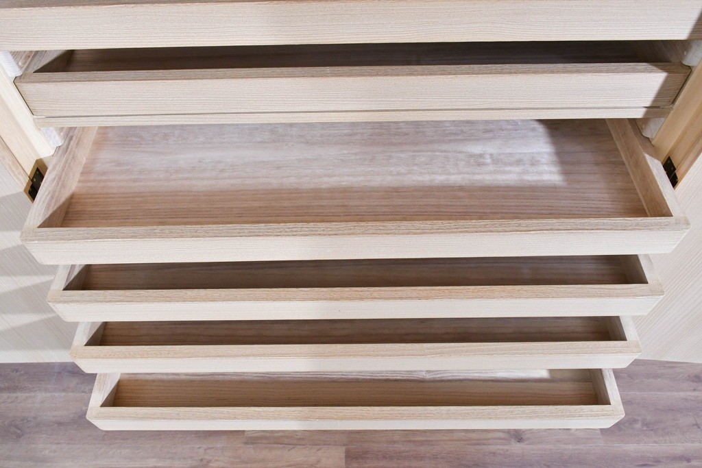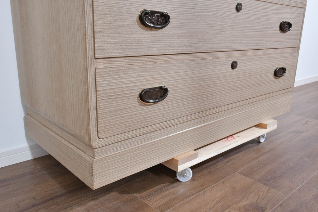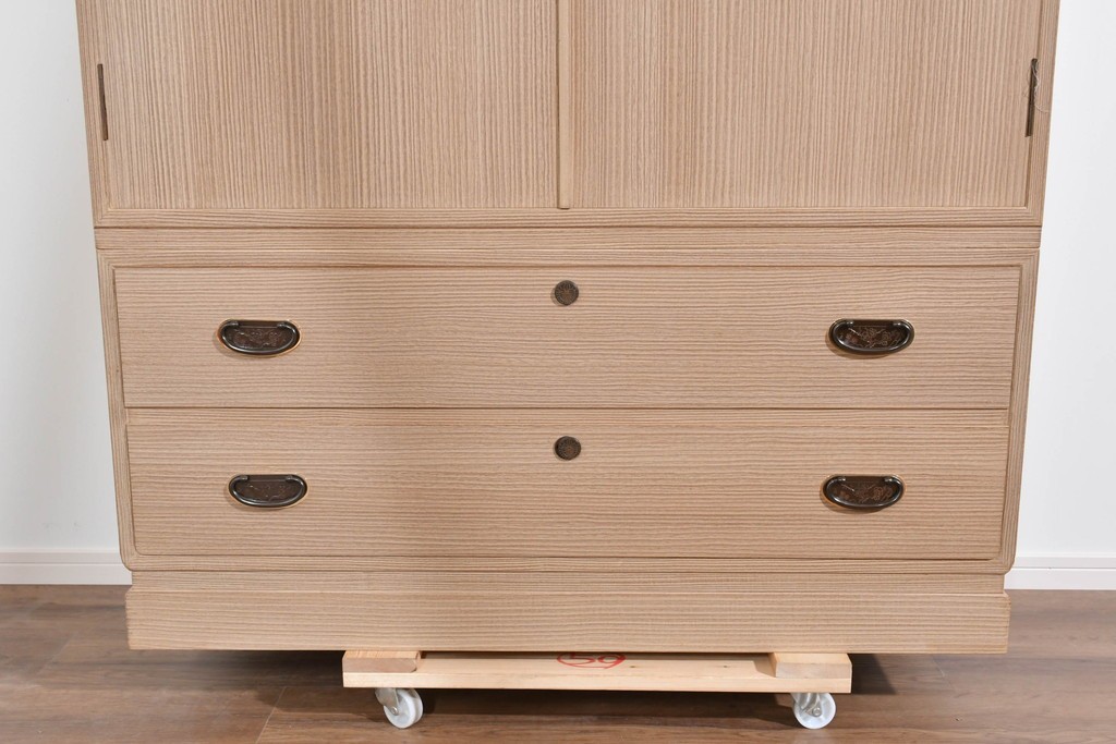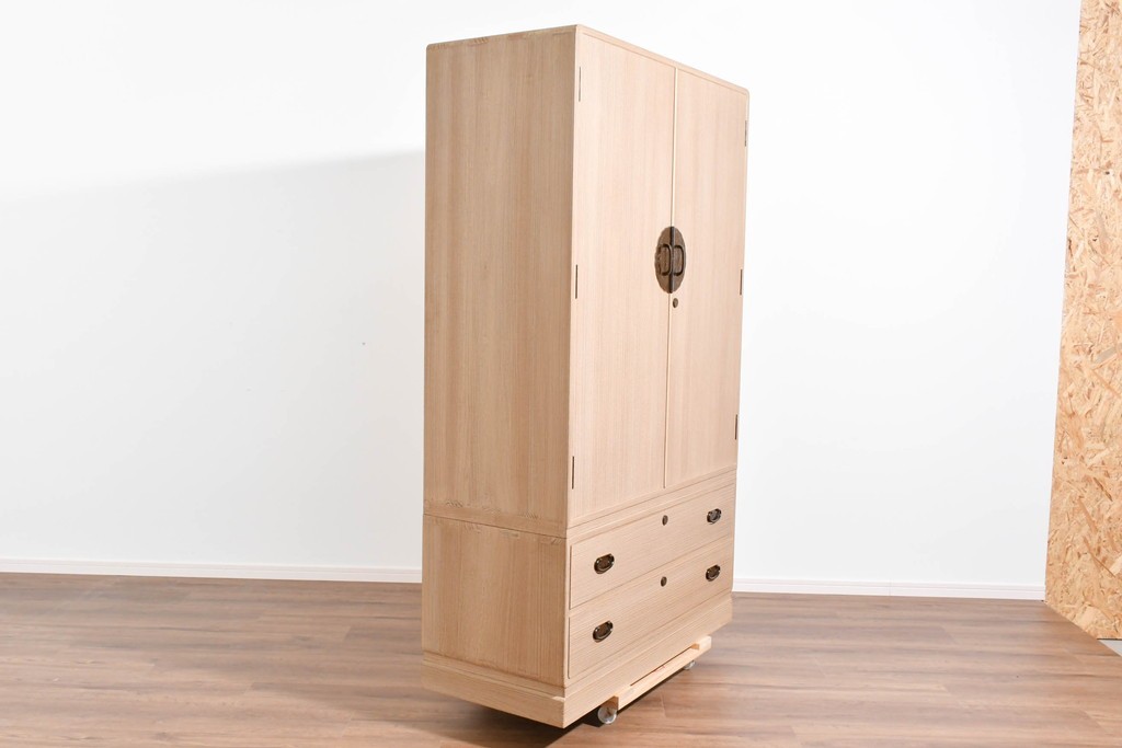 内部には衣類や小物を整理しやすい多段の引き出しが備わり、用途に合わせてすっきり収納できます。桐材は湿度調整に優れ、衣類をやさしく守る素材として古くから親しまれてきました。実用性と伝統技術が心地よく融合した一台です。