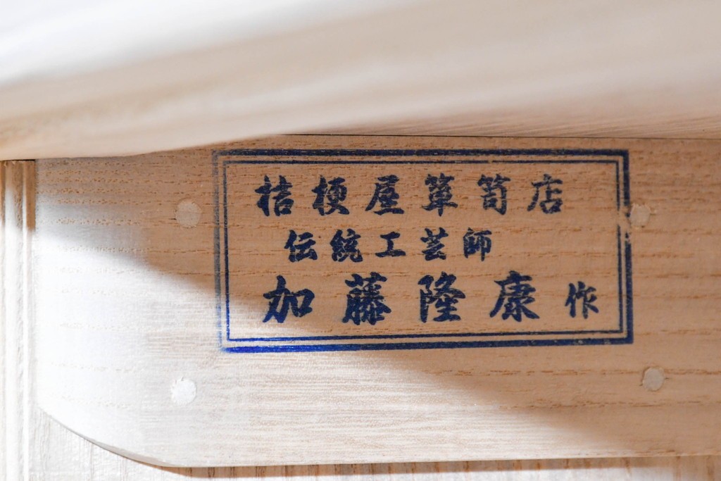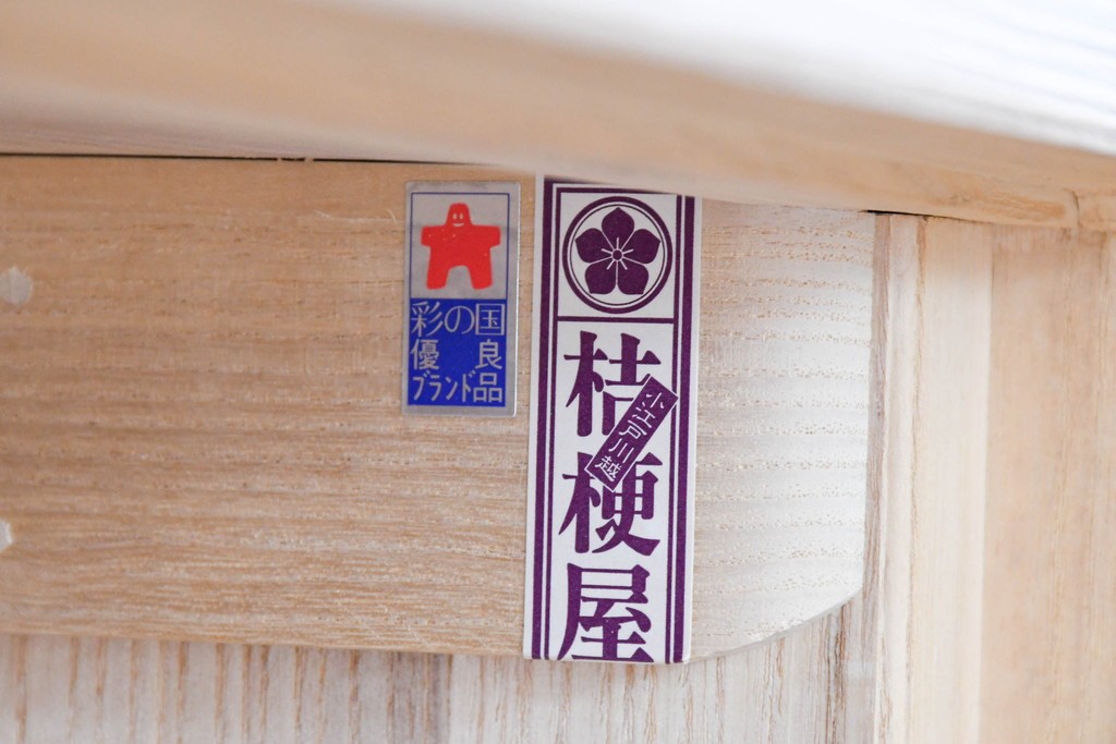 桔梗屋箪笥店で、伝統工芸師・加藤隆康氏により丹念に仕上げられた桐箪笥です。軽やかで扱いやすい桐材を用いながらも、堅実な木組みと滑らかな面の仕上がりが印象的で、職人技の確かさが随所に感じられます。和の空間にはもちろん、現代的な住まいにもよくなじむ落ち着いた佇まいです。