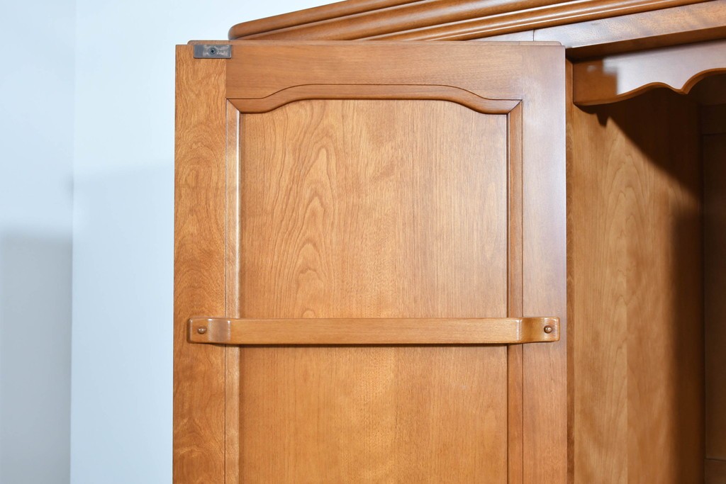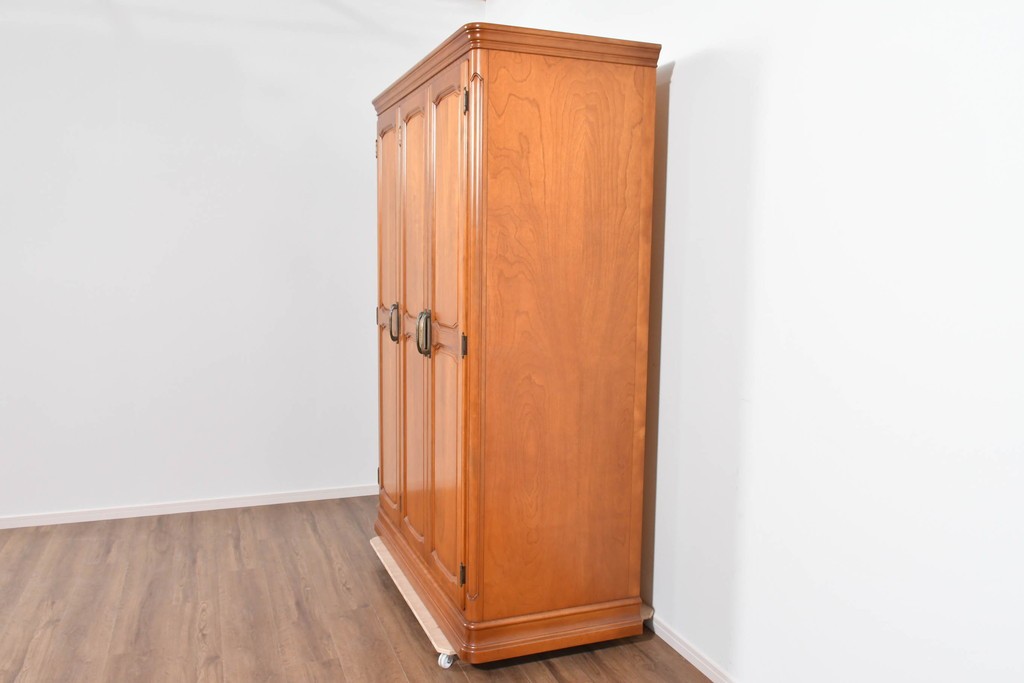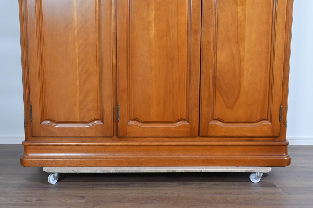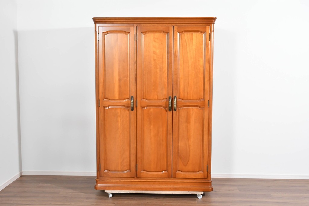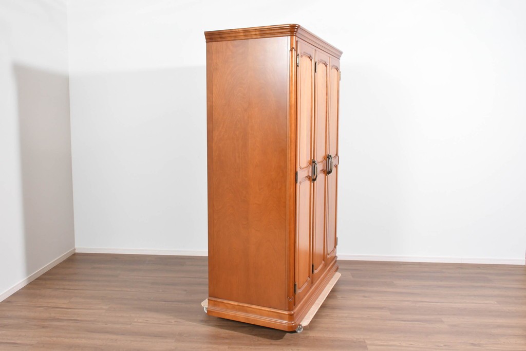 横浜クラシック家具 ダニエル(Daniel)が展開する「Etranger(エトランジェ)」シリーズのワードローブです。優美な曲面使いのフレームや柔らかな木肌の仕上げに、同社らしい端正なクラシックデザインが息づいています。丁寧な木工技術が品よく表れ、空間を引き締めてくれる存在感があります。