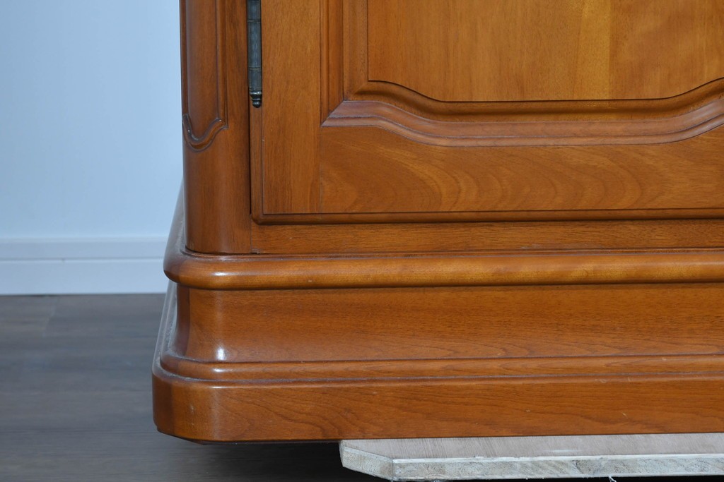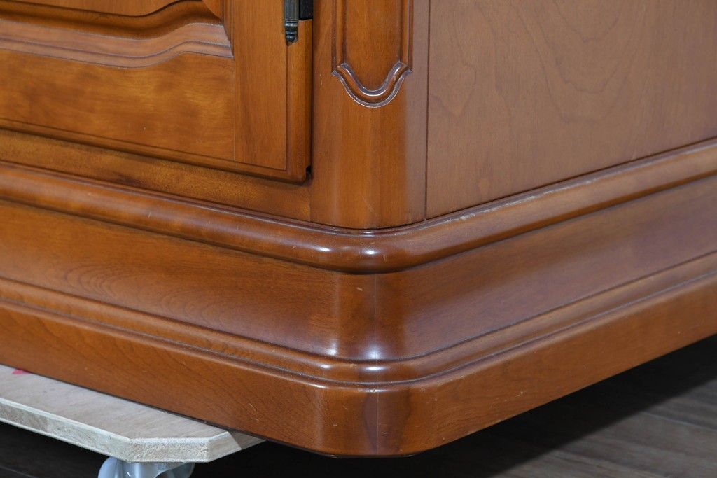 落ち着いた木色と、丁寧に施されたモールディング装飾が調和した、時代を問わず取り入れやすいデザインが魅力です。クラシックインテリアはもちろん、落ち着いたモダン空間にも自然と馴染み、永くお使いいただける良質なワードローブとして暮らしを支えてくれます。