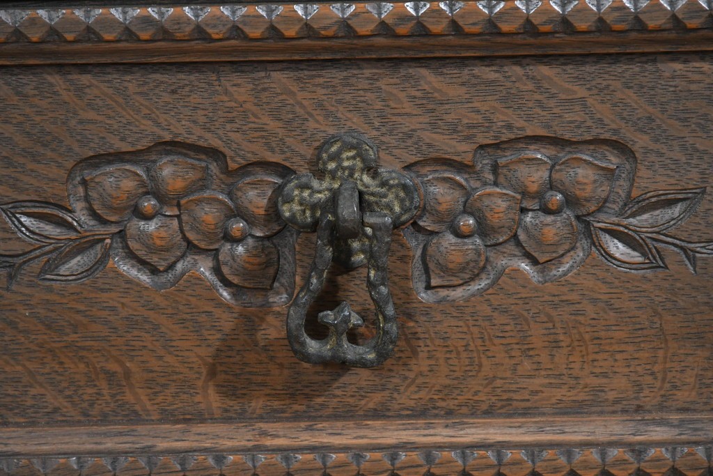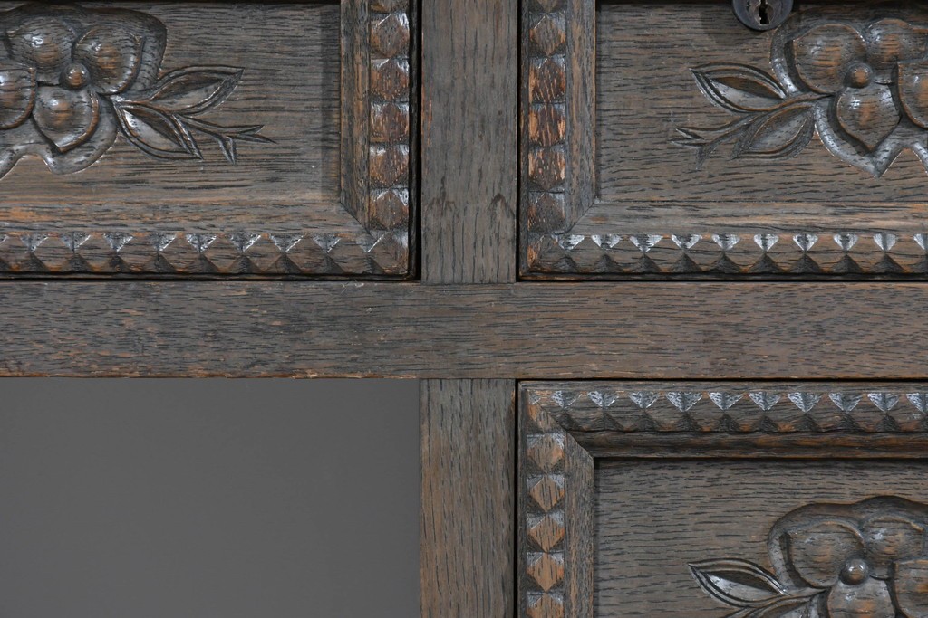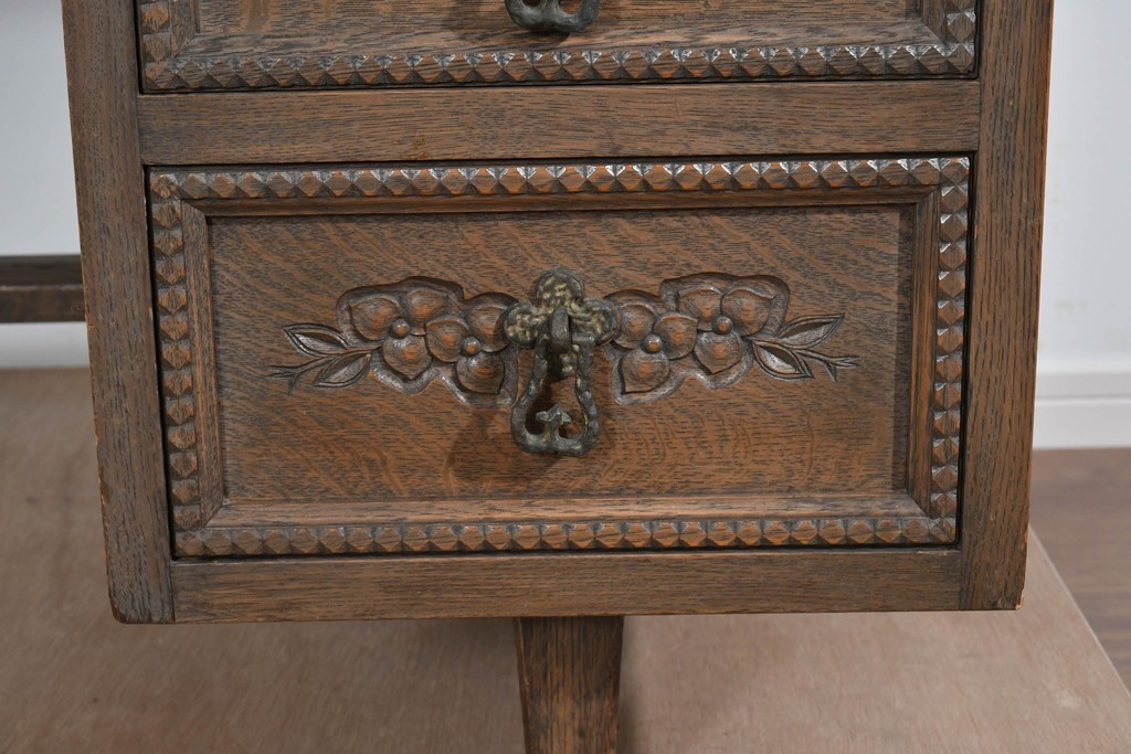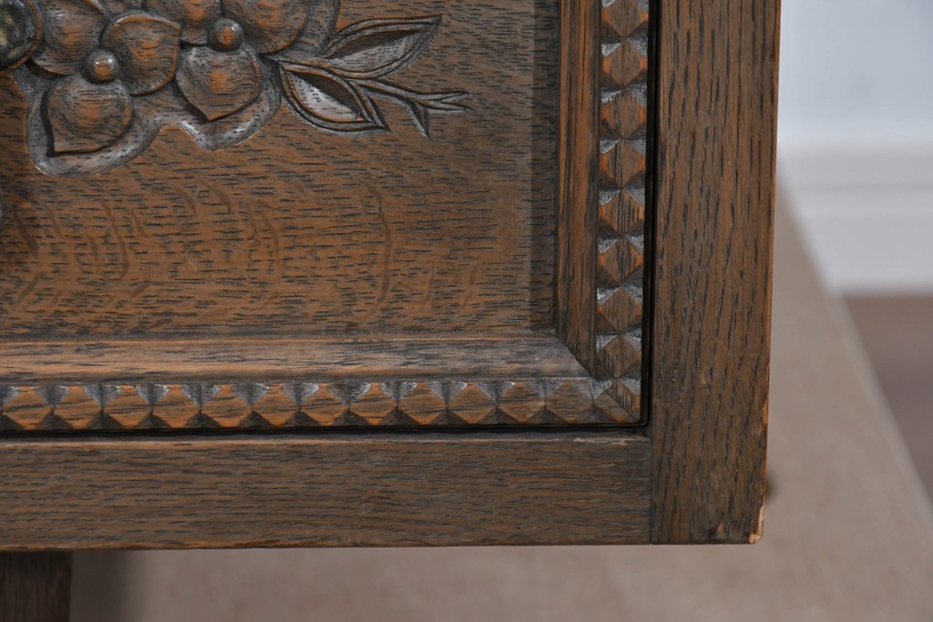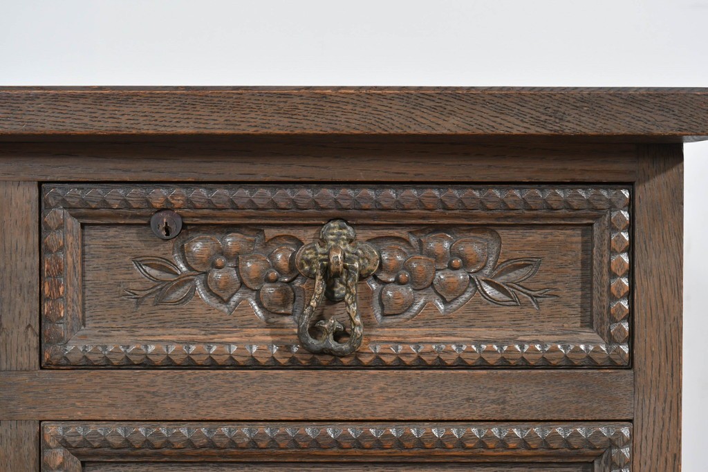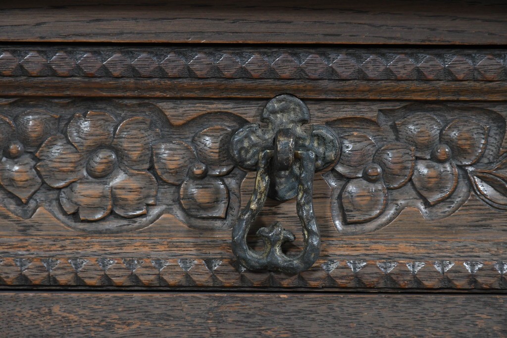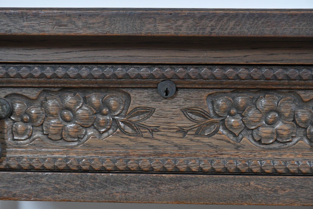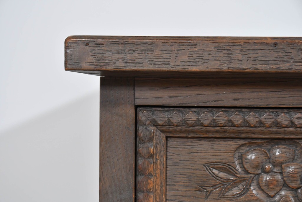 前面には花をモチーフにした彫刻が施され、手仕事の温かみが上品に表れています。