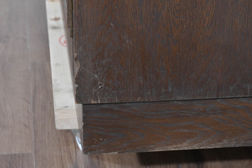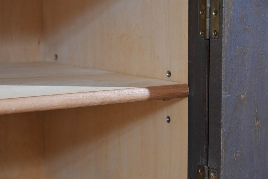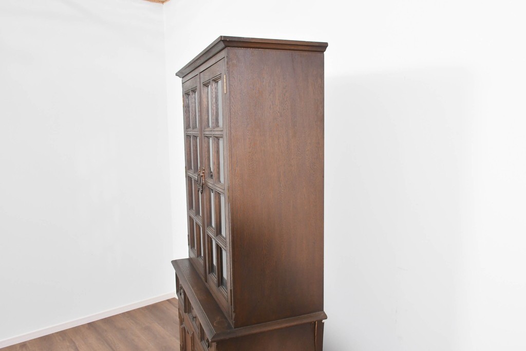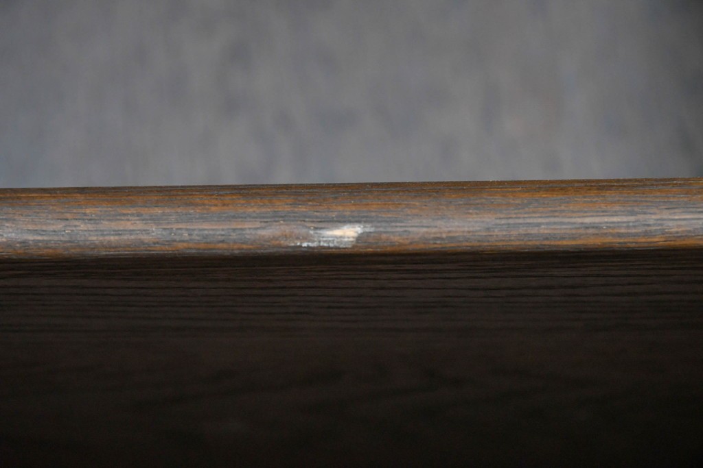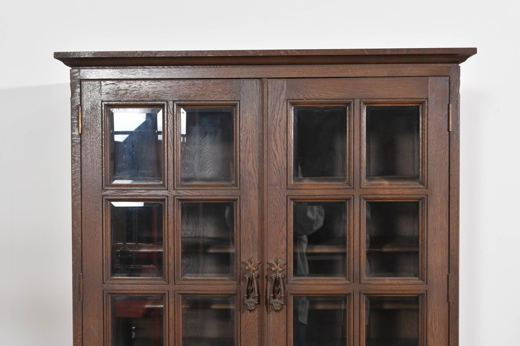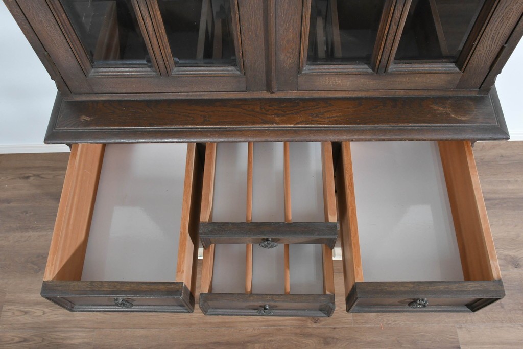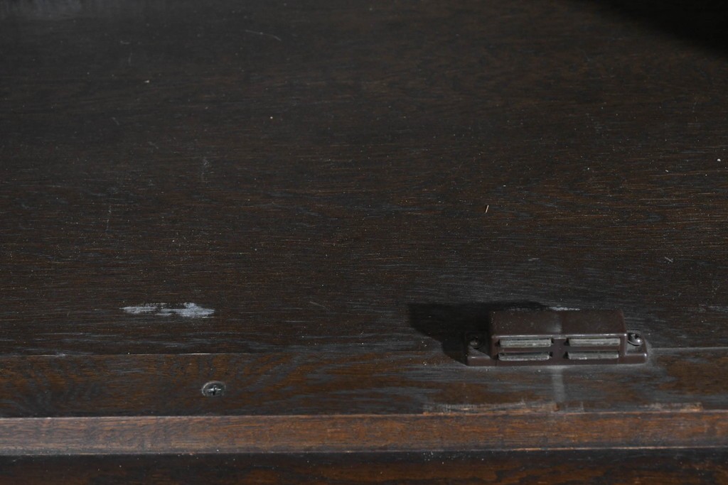 扉や引き出しには、立体的に彫り込まれた装飾や趣ある金具が用いられており、家具全体に深みのある表情を与えています。細部の仕上げが丁寧で、長く使われてきた家具がもつ落ち着いた雰囲気を感じさせてくれるつくりです。