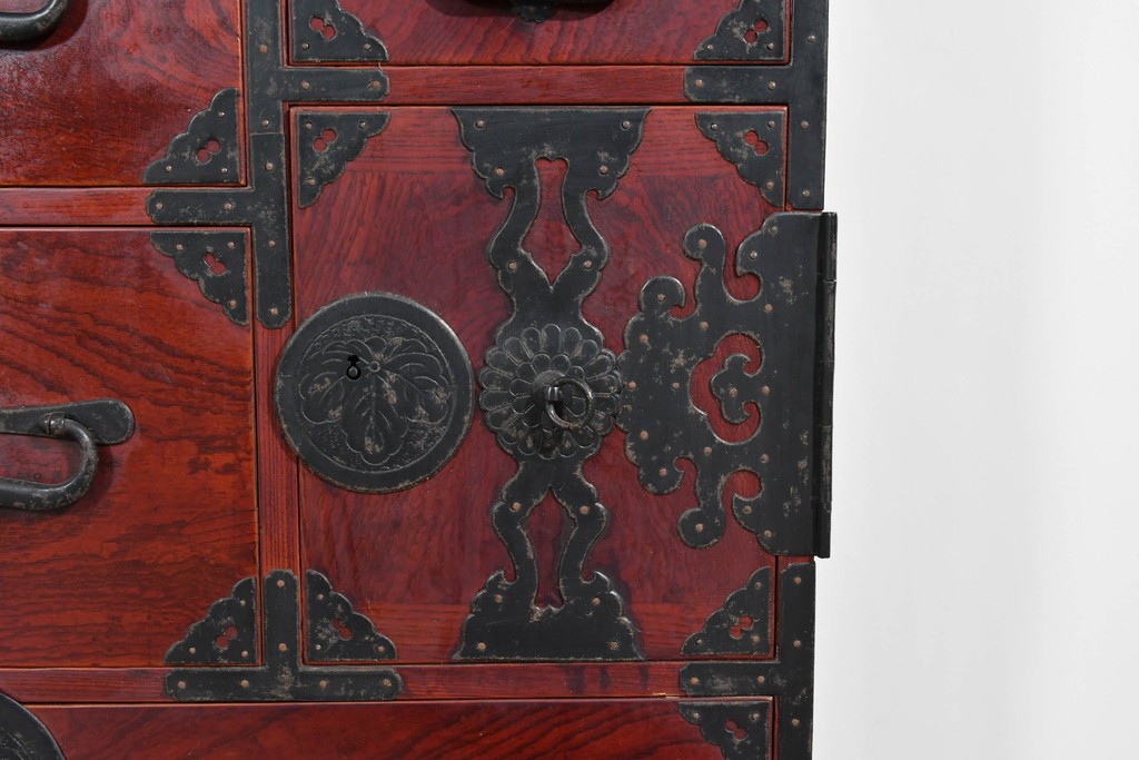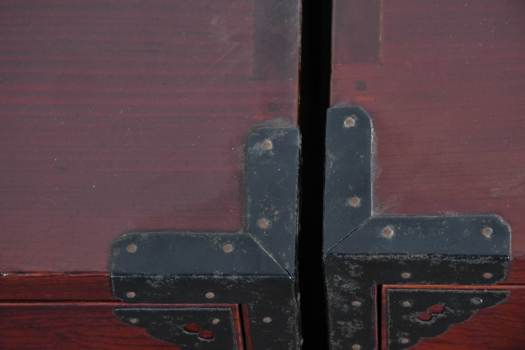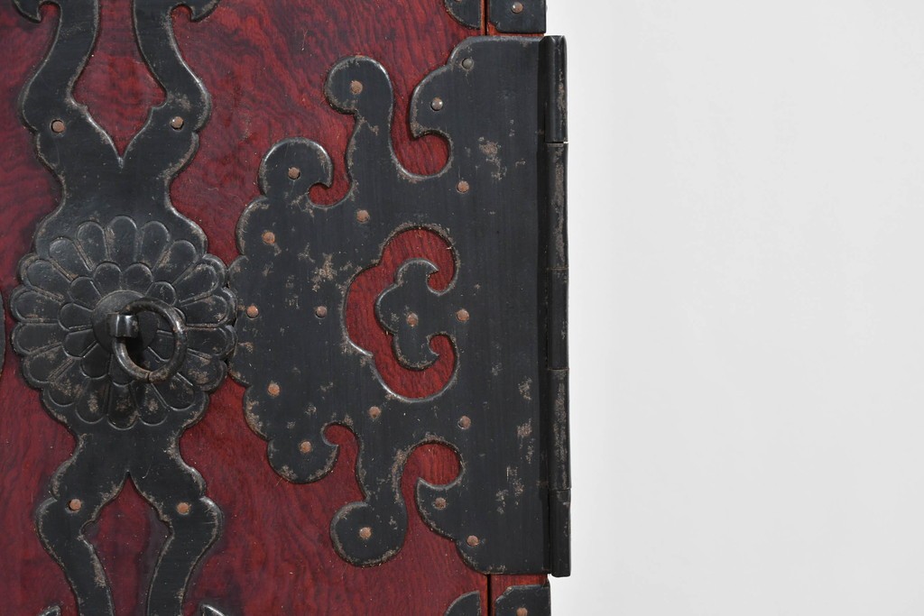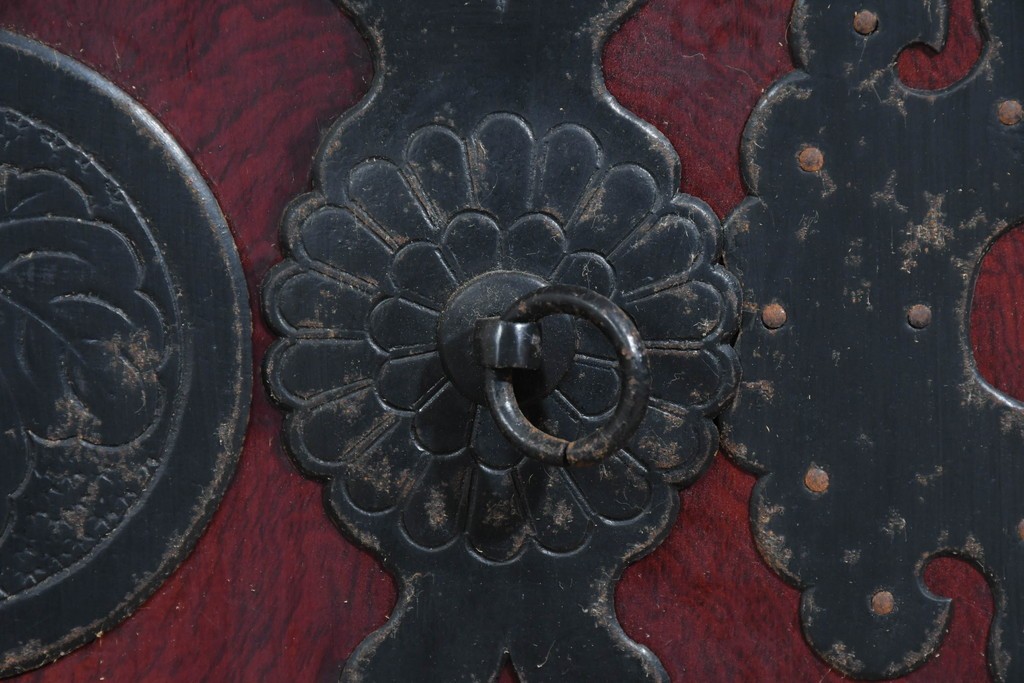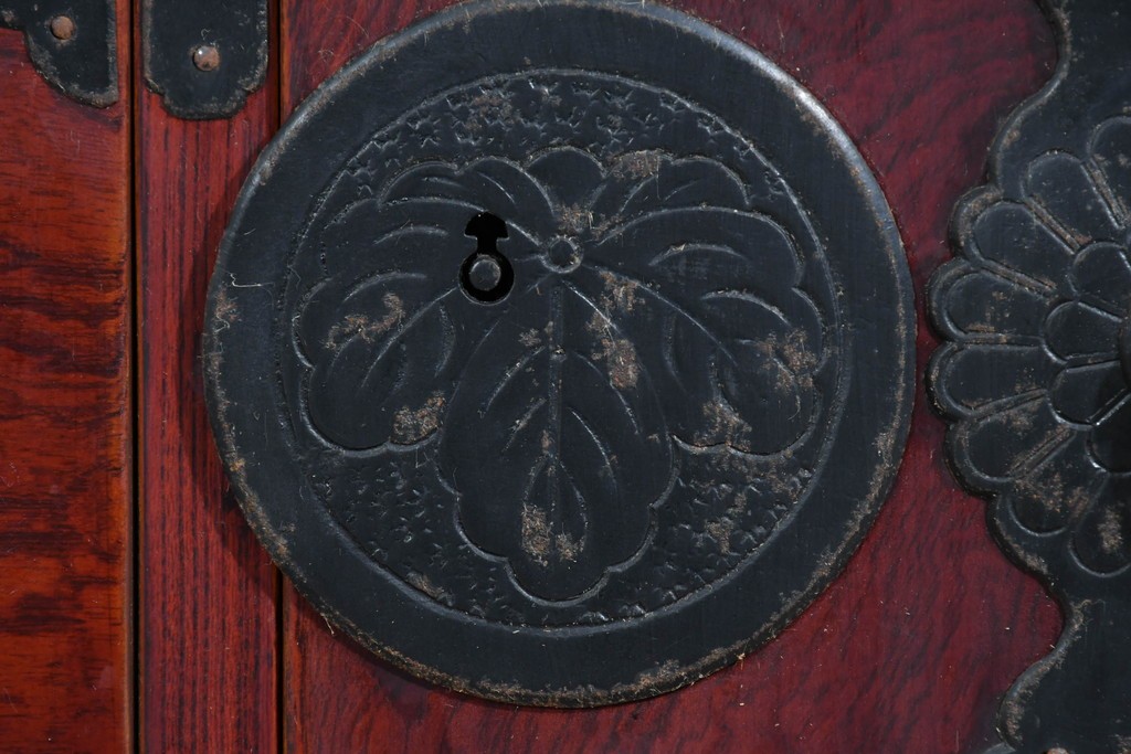 重厚な鉄金具が細部まで施され、意匠としての美しさと堅牢さを兼ね備えています。