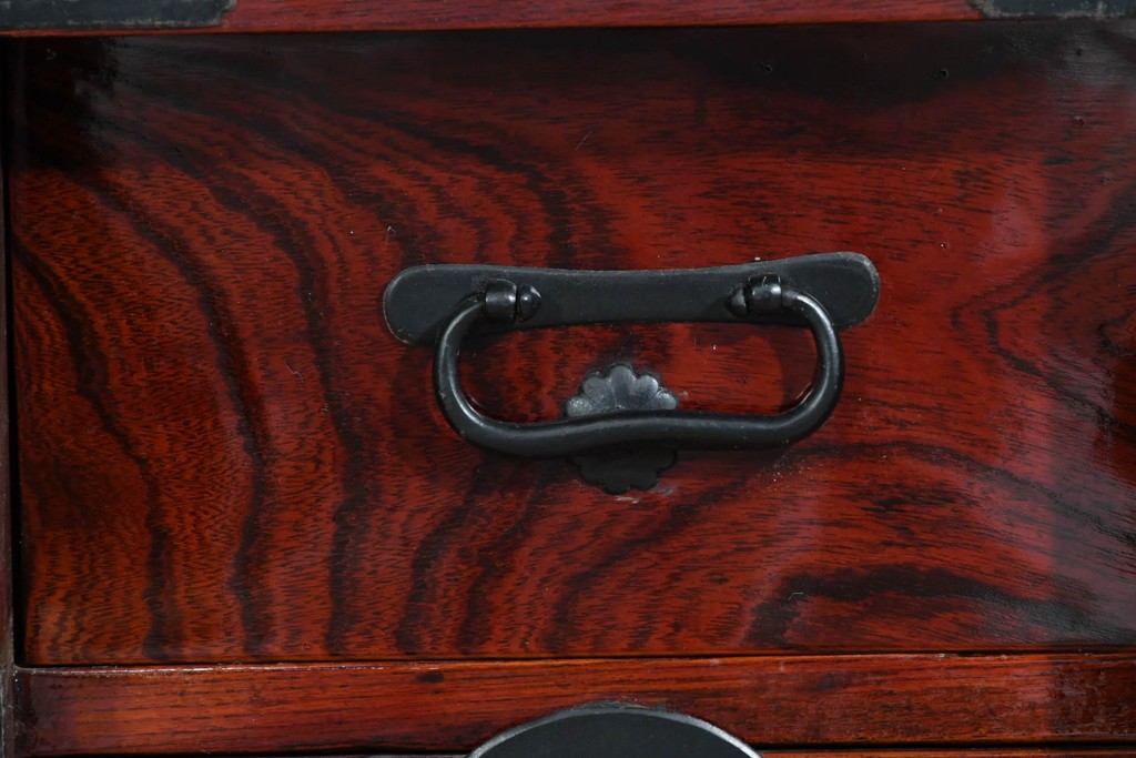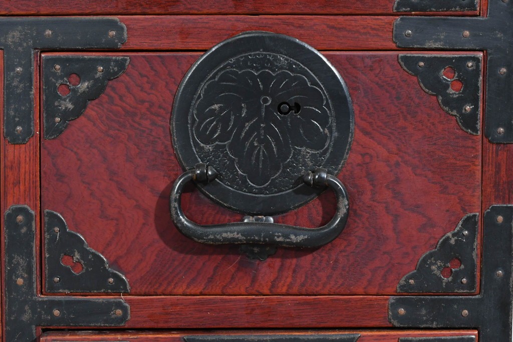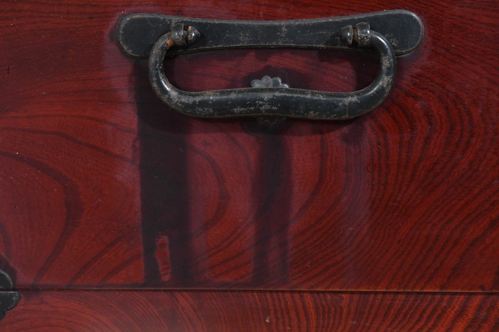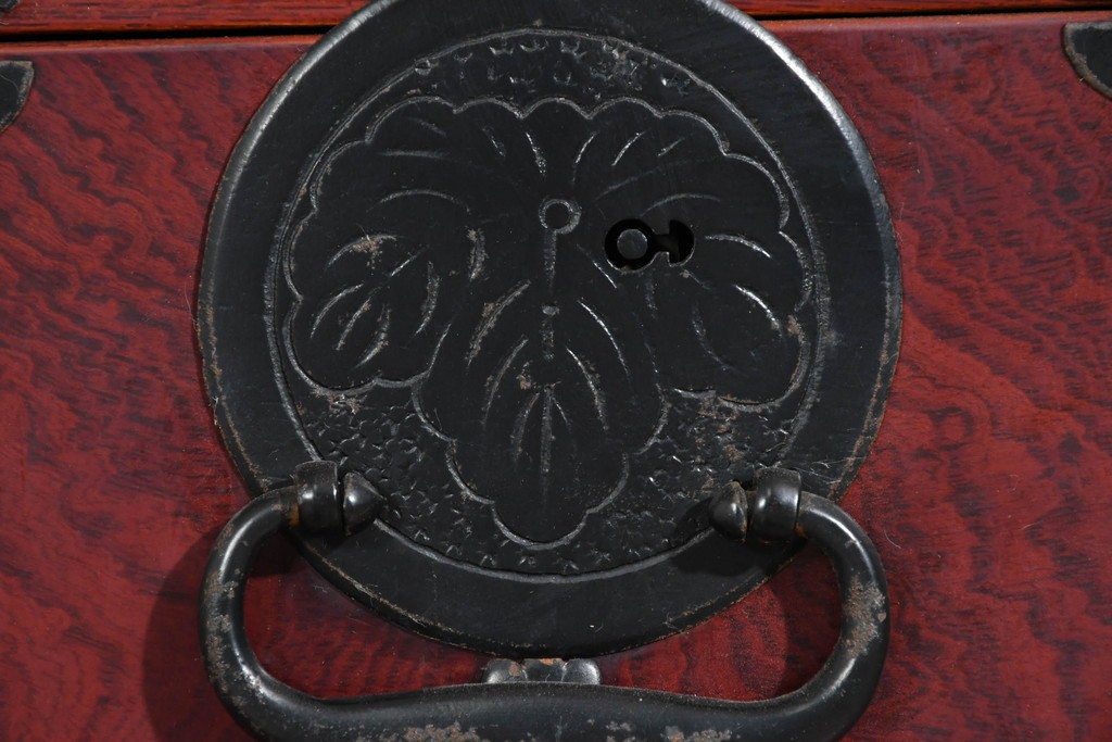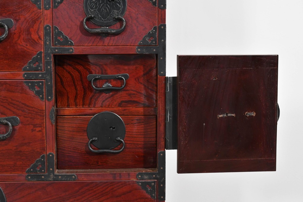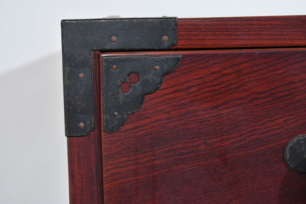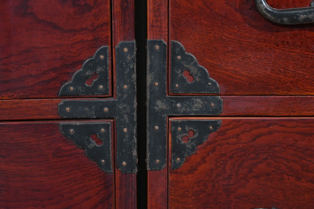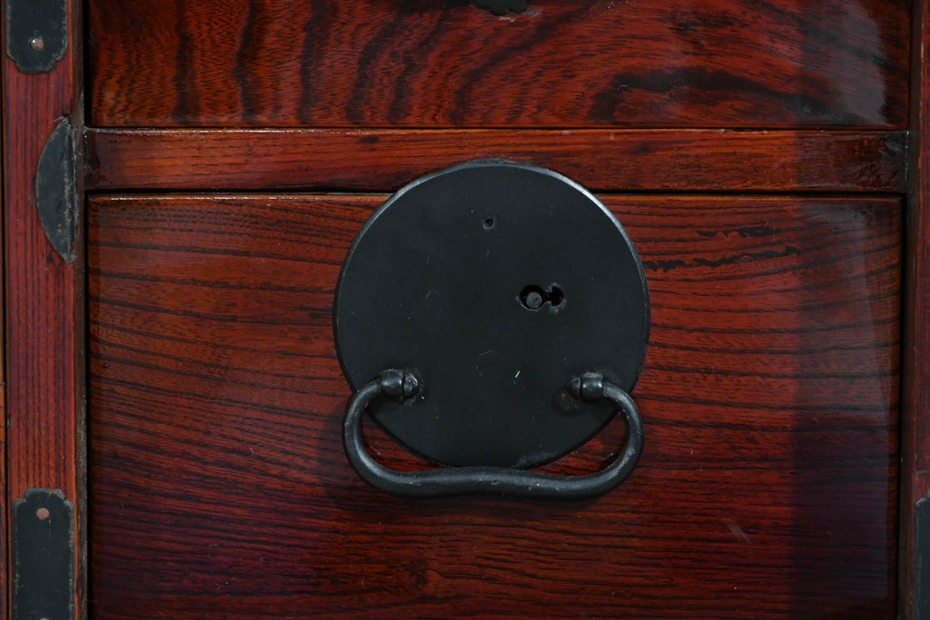 前面には欅材が用いられ、力強い木目と艶のある色調が時代家具ならではの風格を感じさせます。