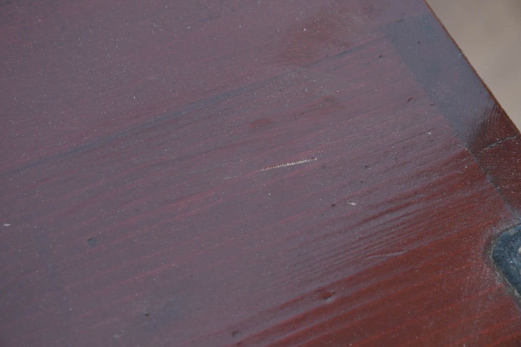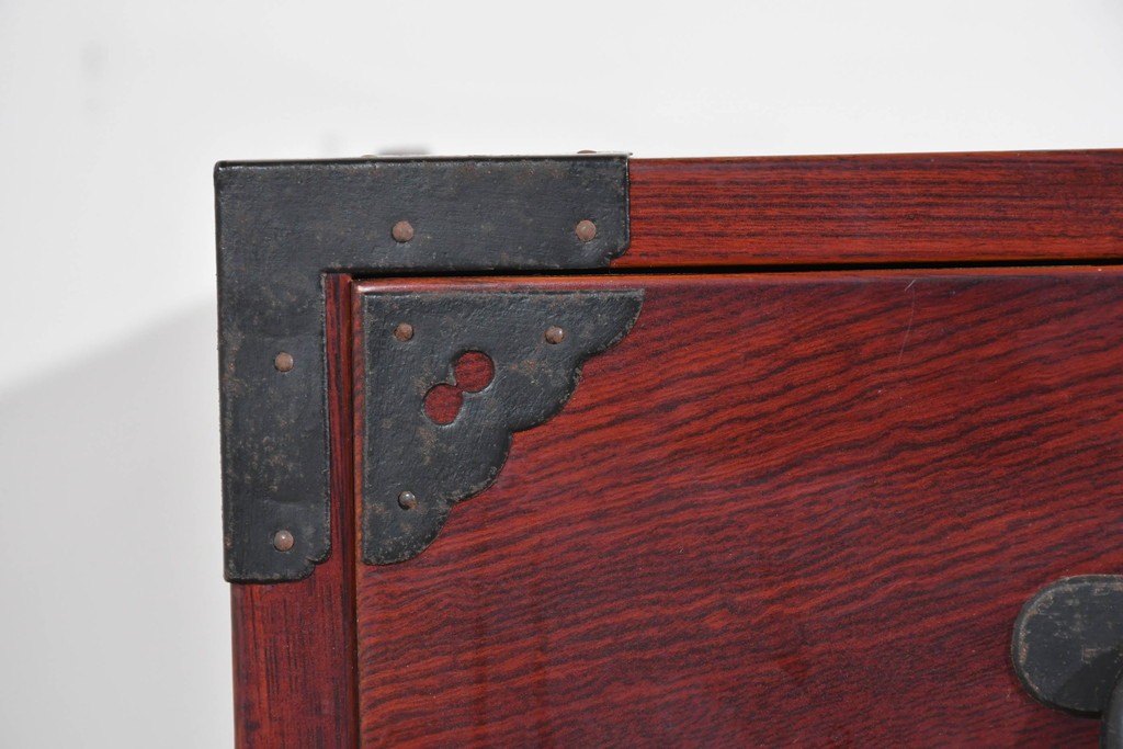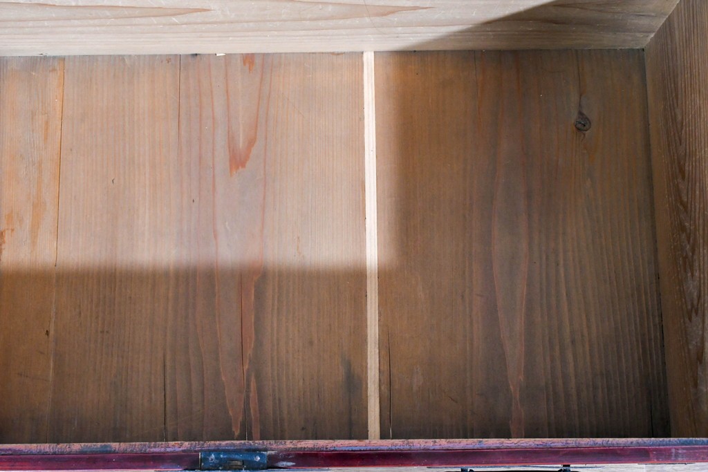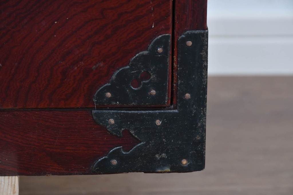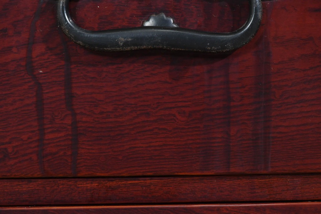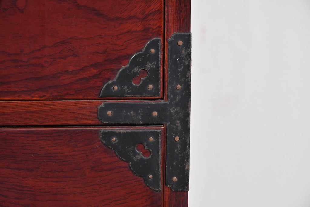 前面には欅材が用いられ、力強く流れるような木目と深みのある色調が時代家具ならではの趣を伝えます。