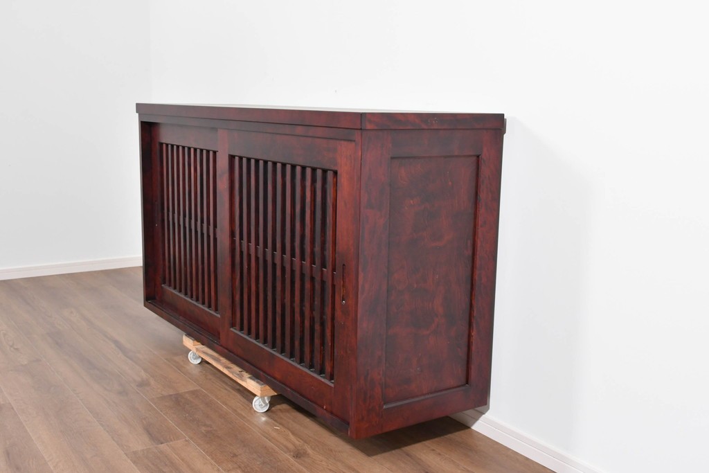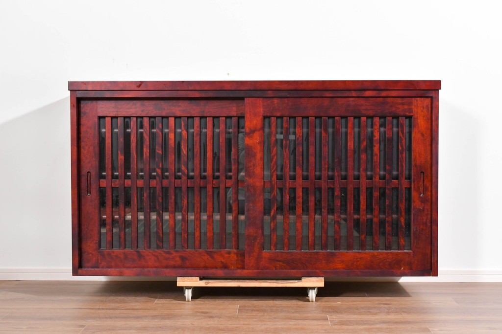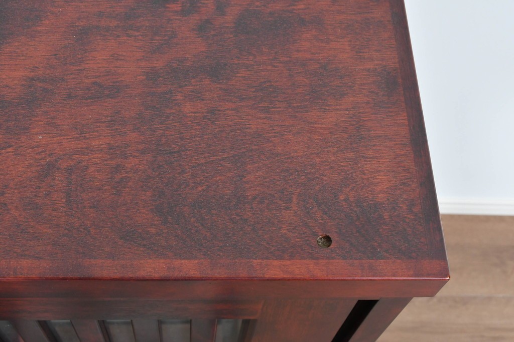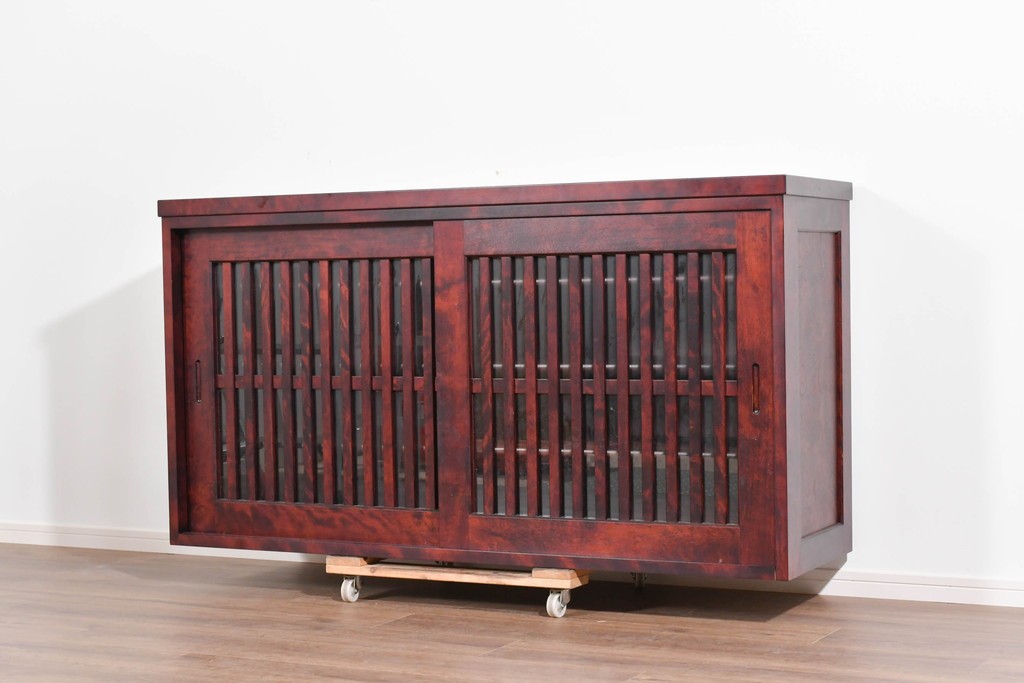 「松本民芸家具」の九州地区販売店が独立したことで誕生したのが、「九州民芸家具」です。松本民芸家具と同様、和家具の伝統的な技術と西洋デザインが織りなすスタイルが特徴ですが、松本民芸家具よりも和のテイストが強く出ており、一層の重厚感を感じさせます。また格子を使った意匠もよく見られ、どこかモダンな雰囲気を醸し出しています。残念ながら2009年に工房は閉鎖されましたが、今もその人気は衰えることなく多くのファンに愛されています。